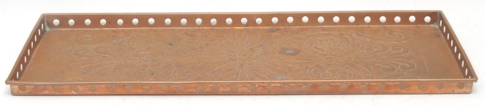 Arts and Crafts Copper Tray with Repoussé Floral Motif attributed to Keswick School, 1900
