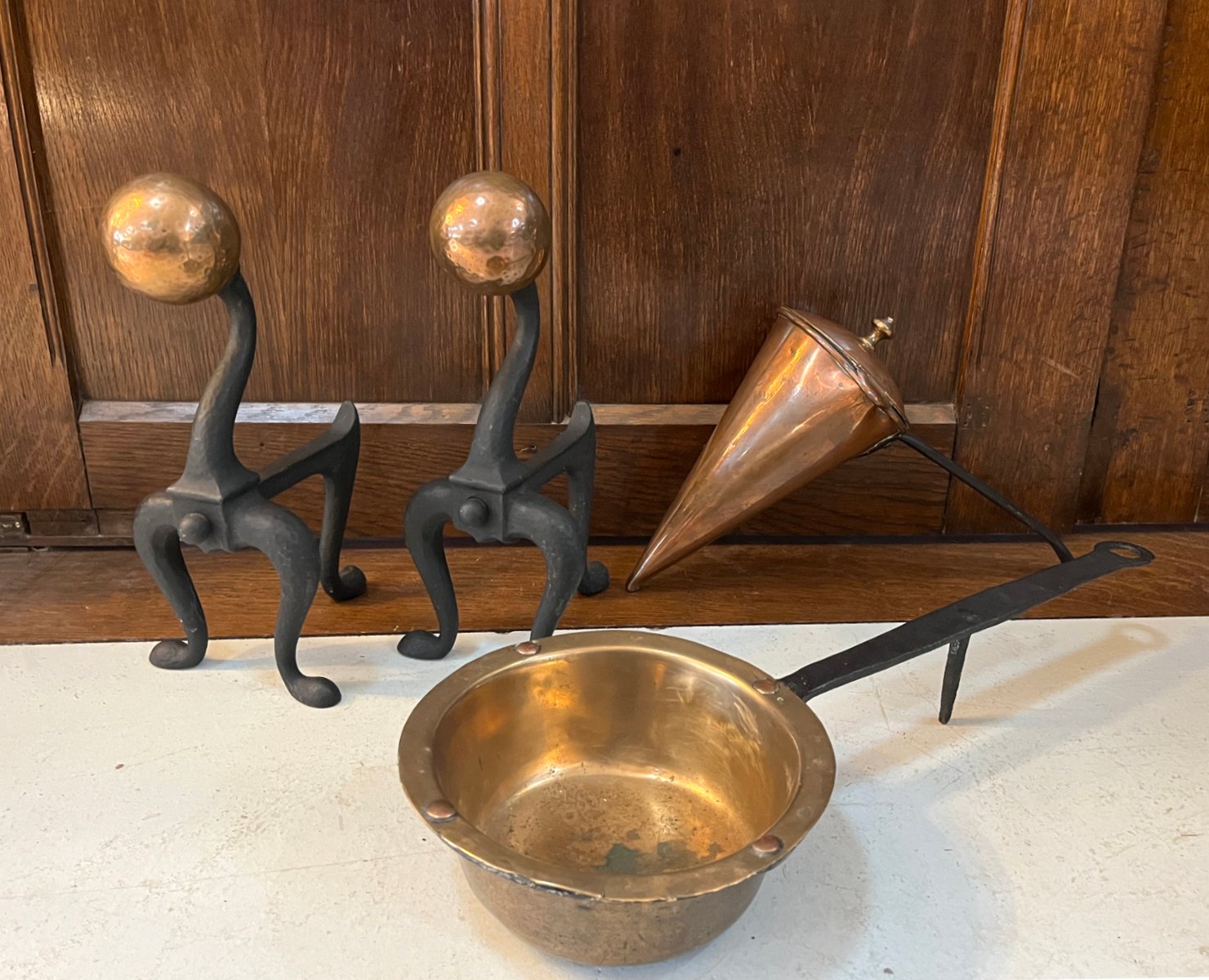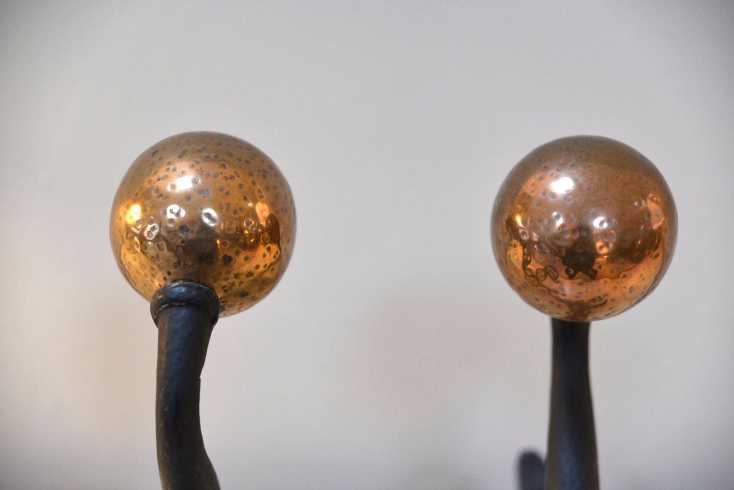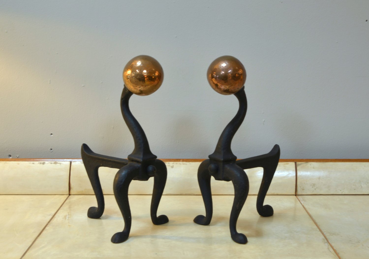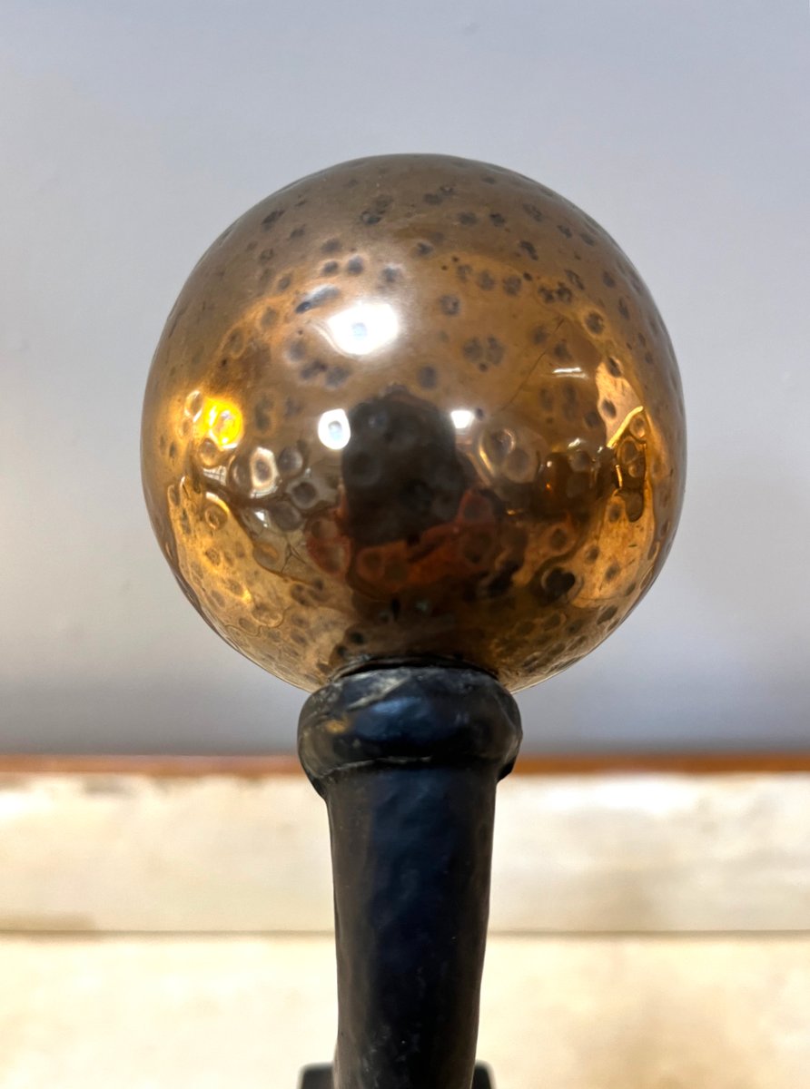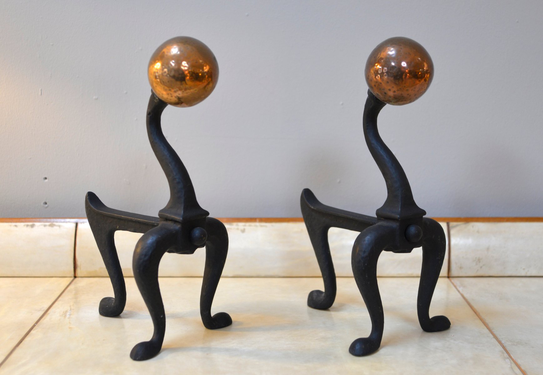 Arts & Crafts Firedog Andirons in Brass, Copper and Cast Iron, 1920s, Set of 2