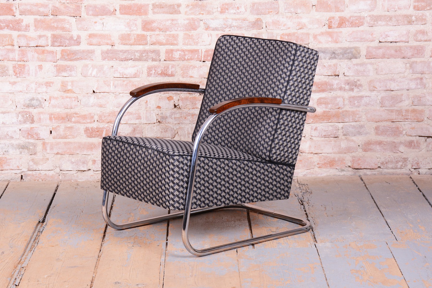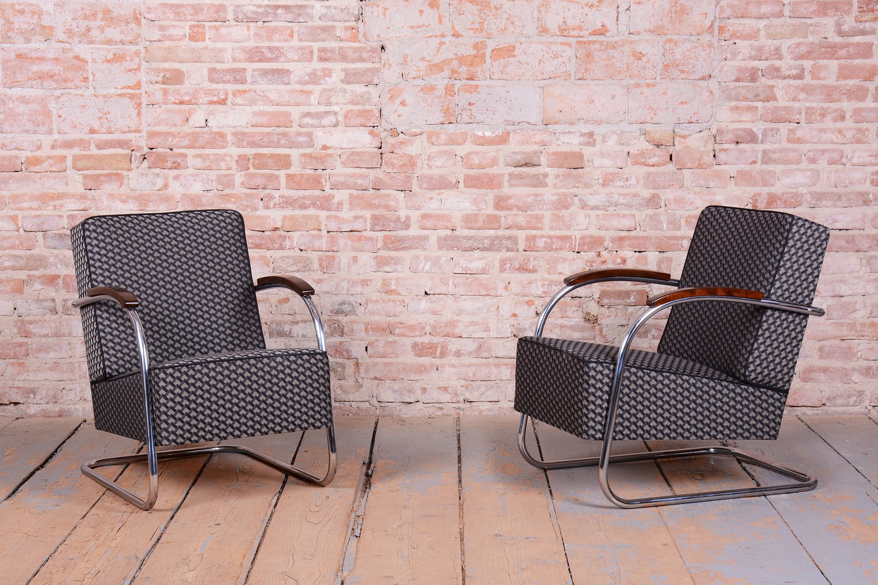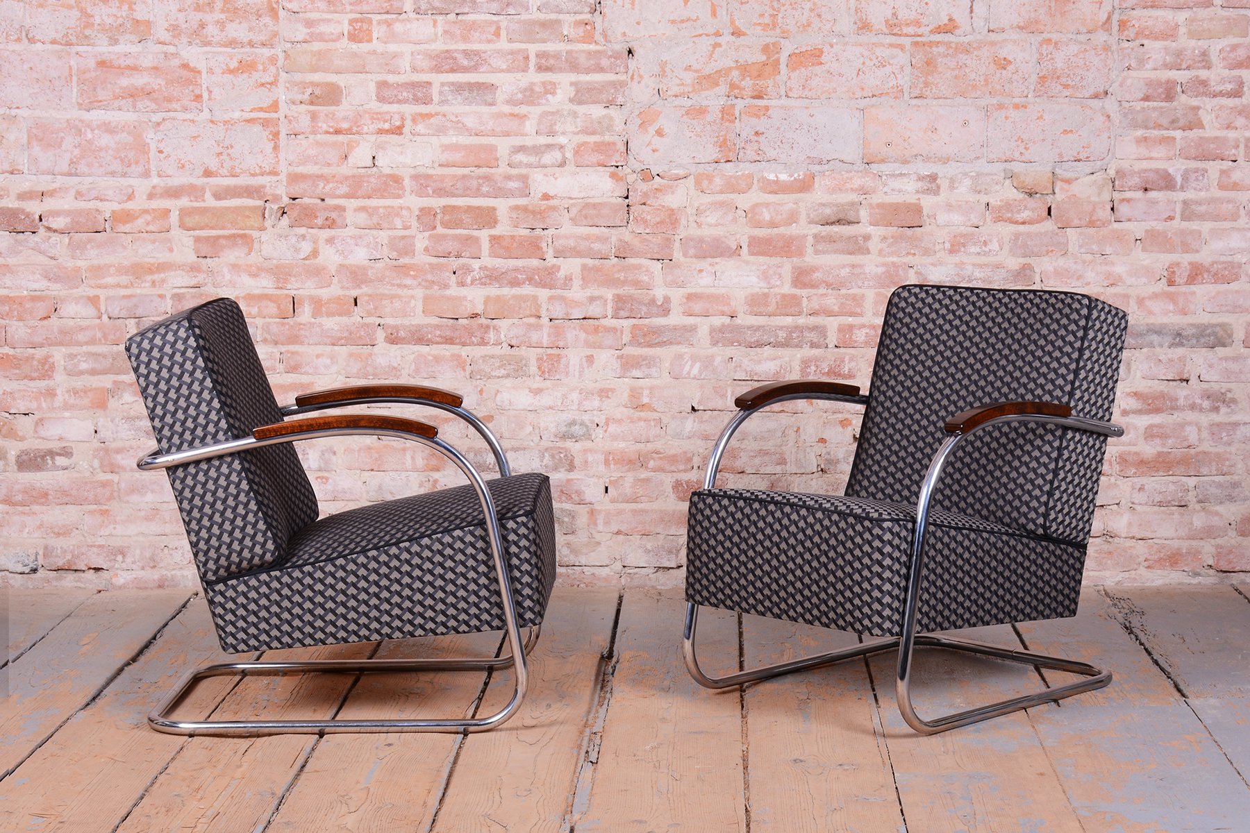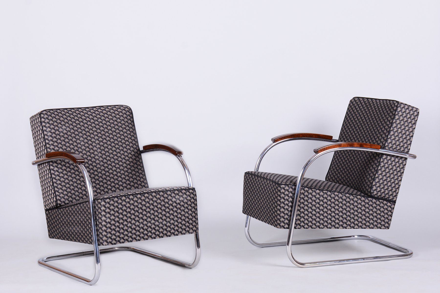 Bauhaus Armchairs in Beech and Chrome from Mücke-Melder, Czech, 1930s, Set of 2