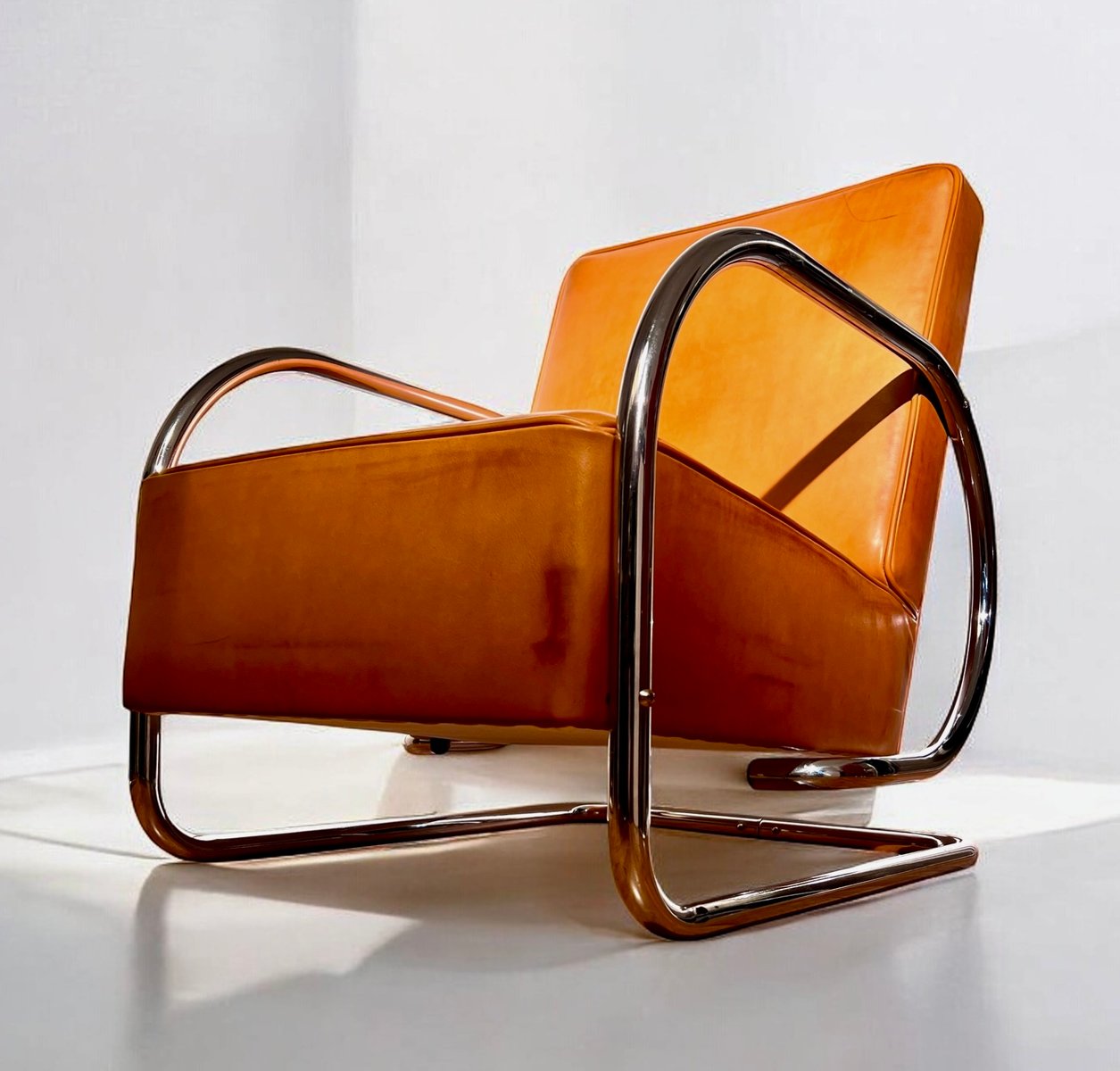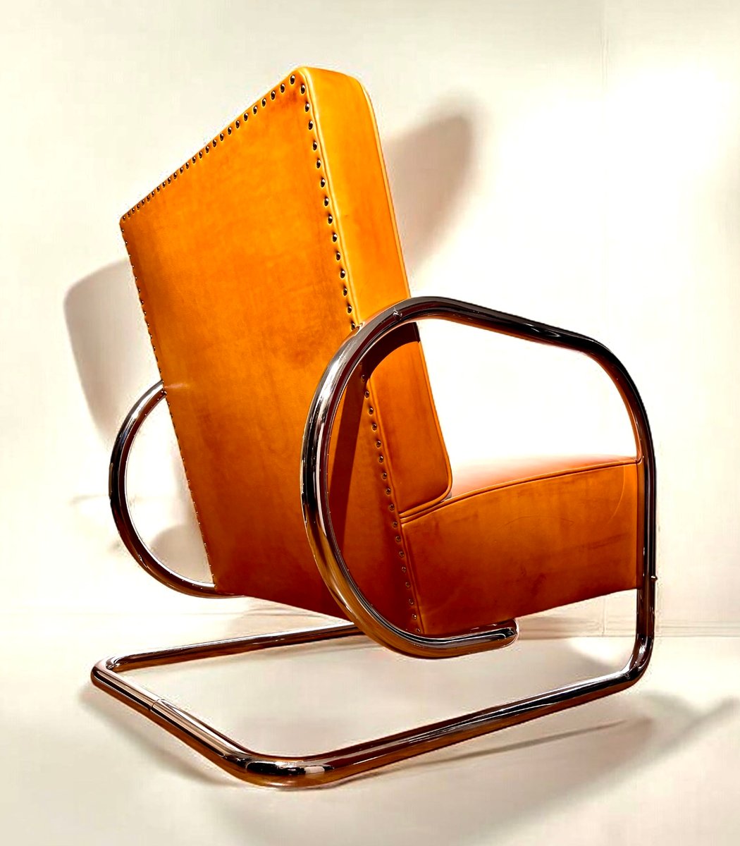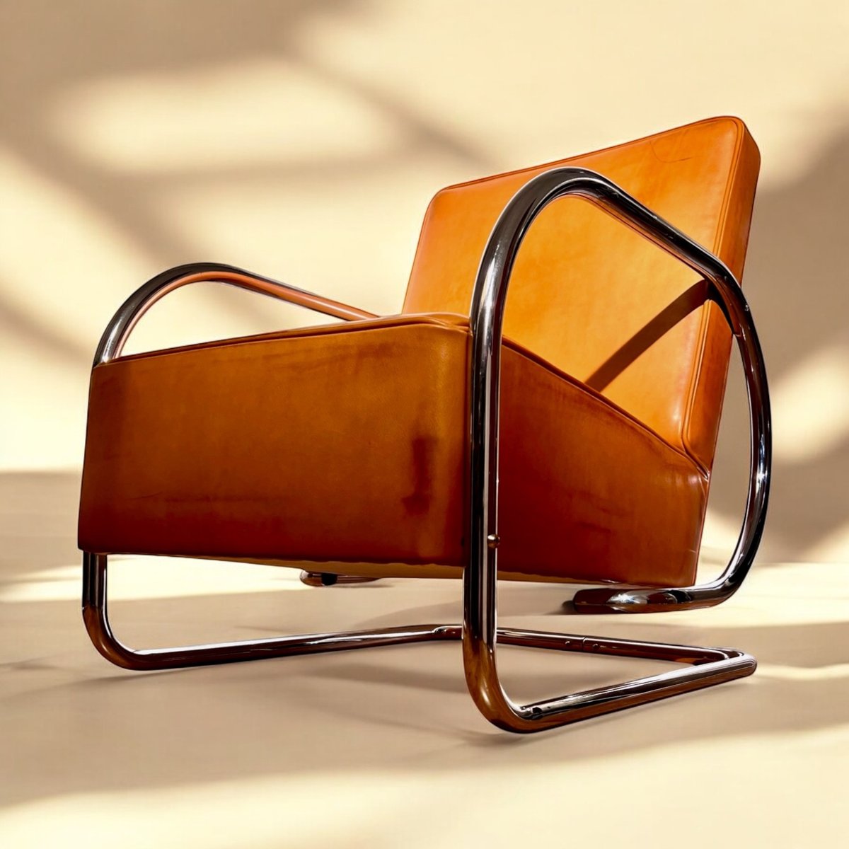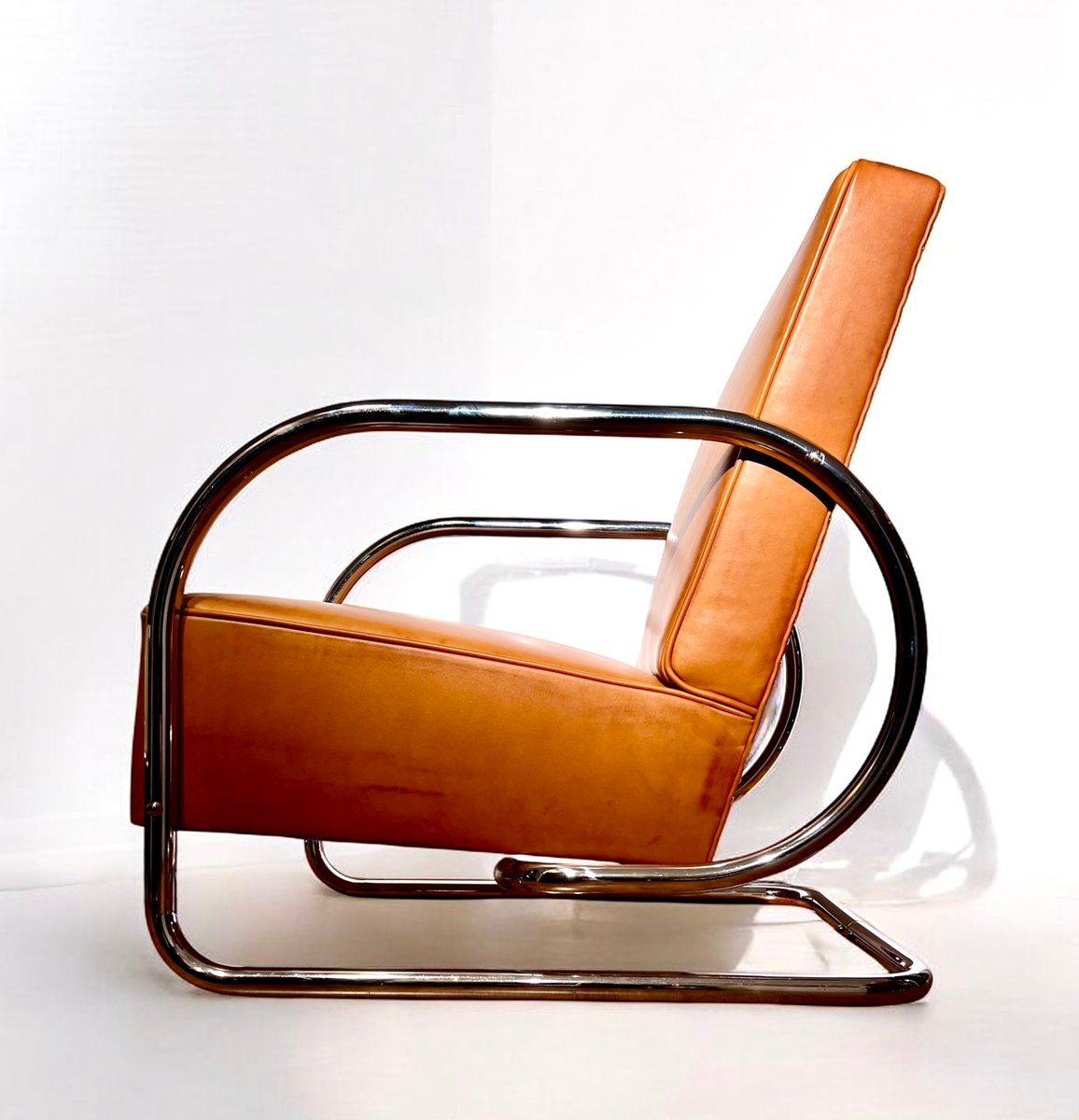 Bauhaus Tubular Steel Cantilever Chair Cognac Leather Club Chair Mod. F74 by Frits Kuyken, Belgium, 1935 Armchair Design Icon