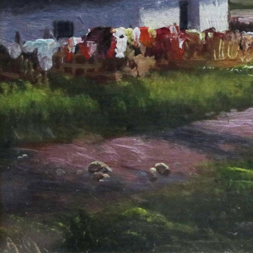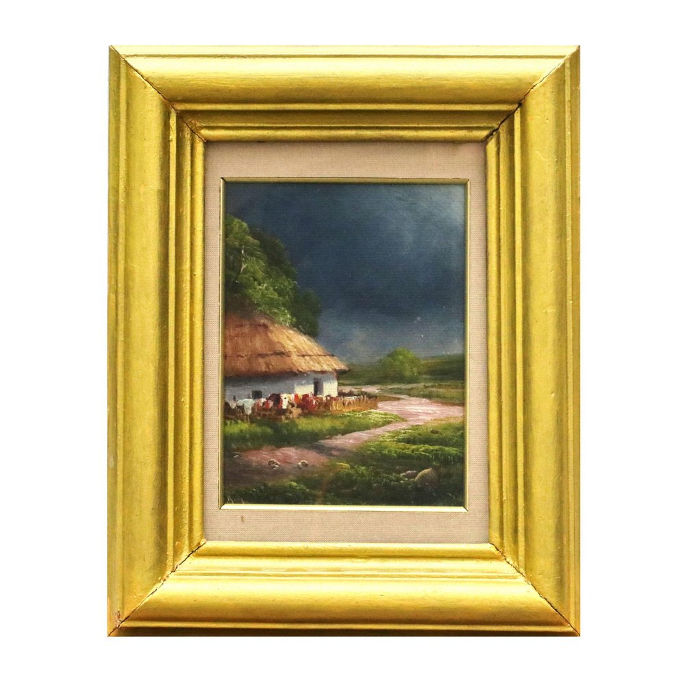 Before the Rain: View of Ukrainian Country Road and Hut, 20th Century, Oil on Board, Framed