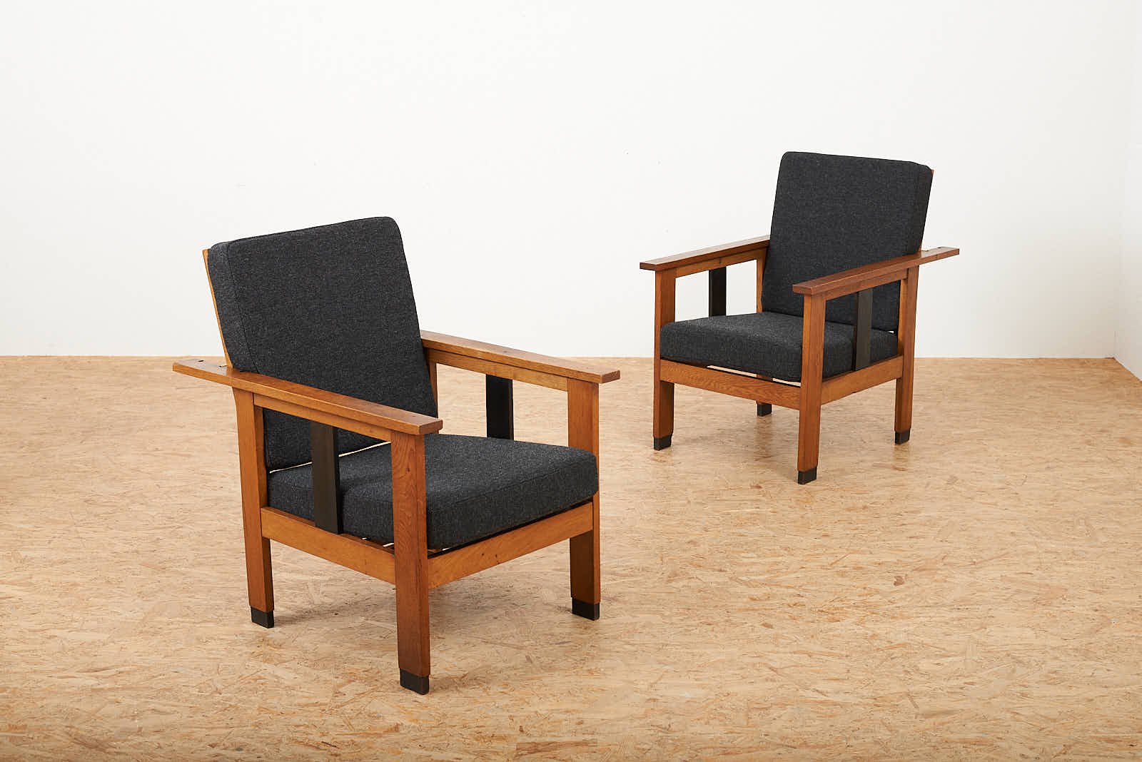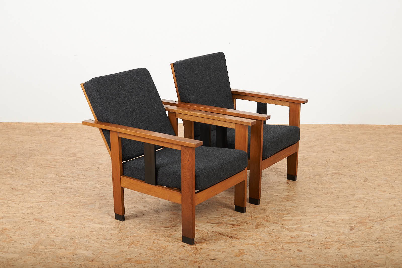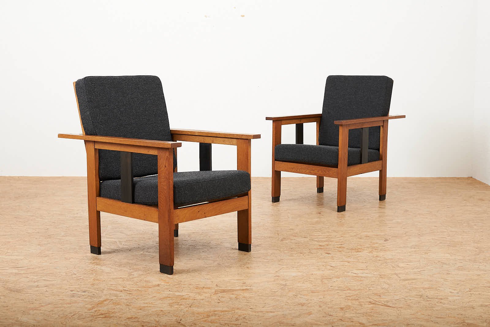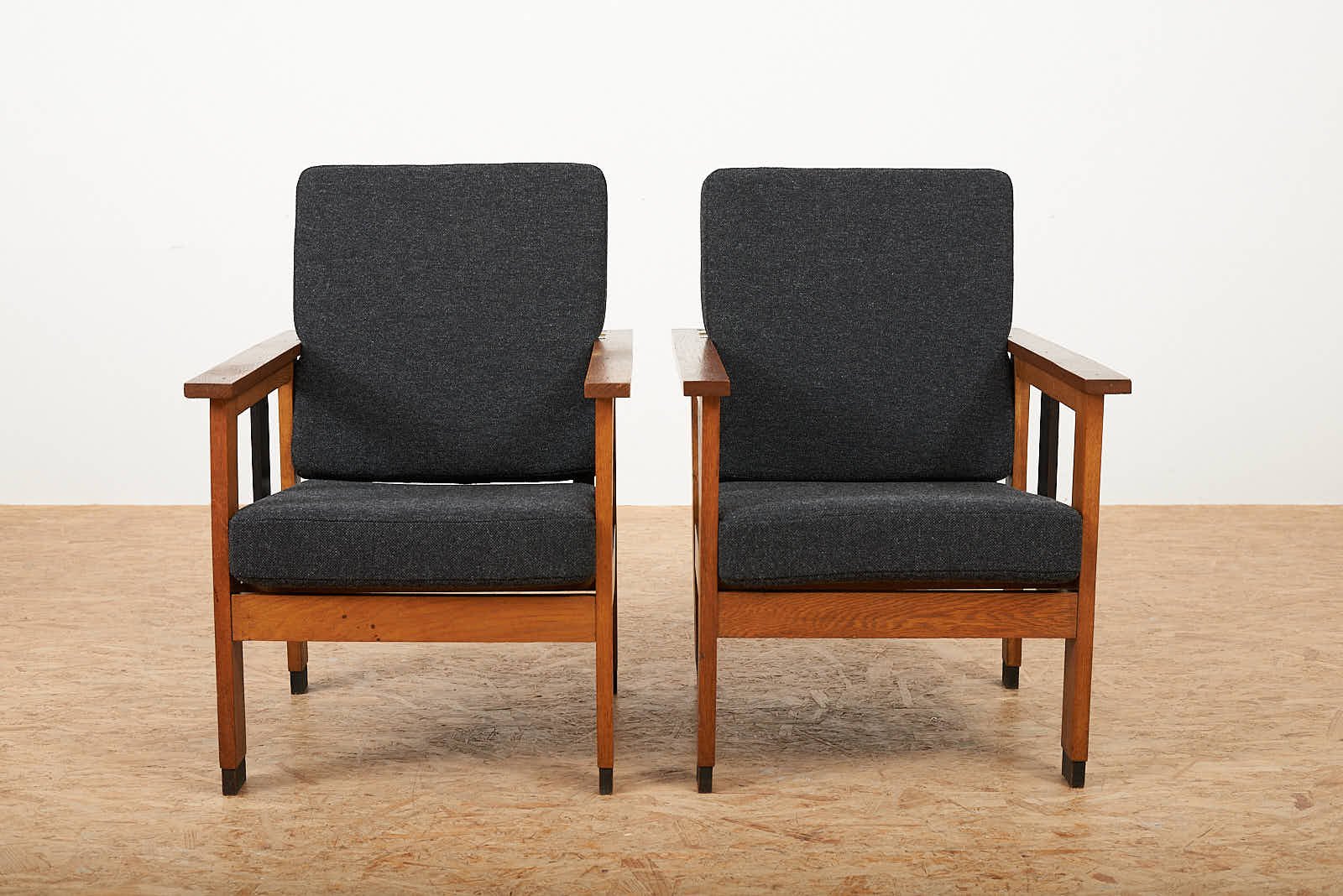 Black Upholstered Lacquered Wood Armchairs, Set of 2