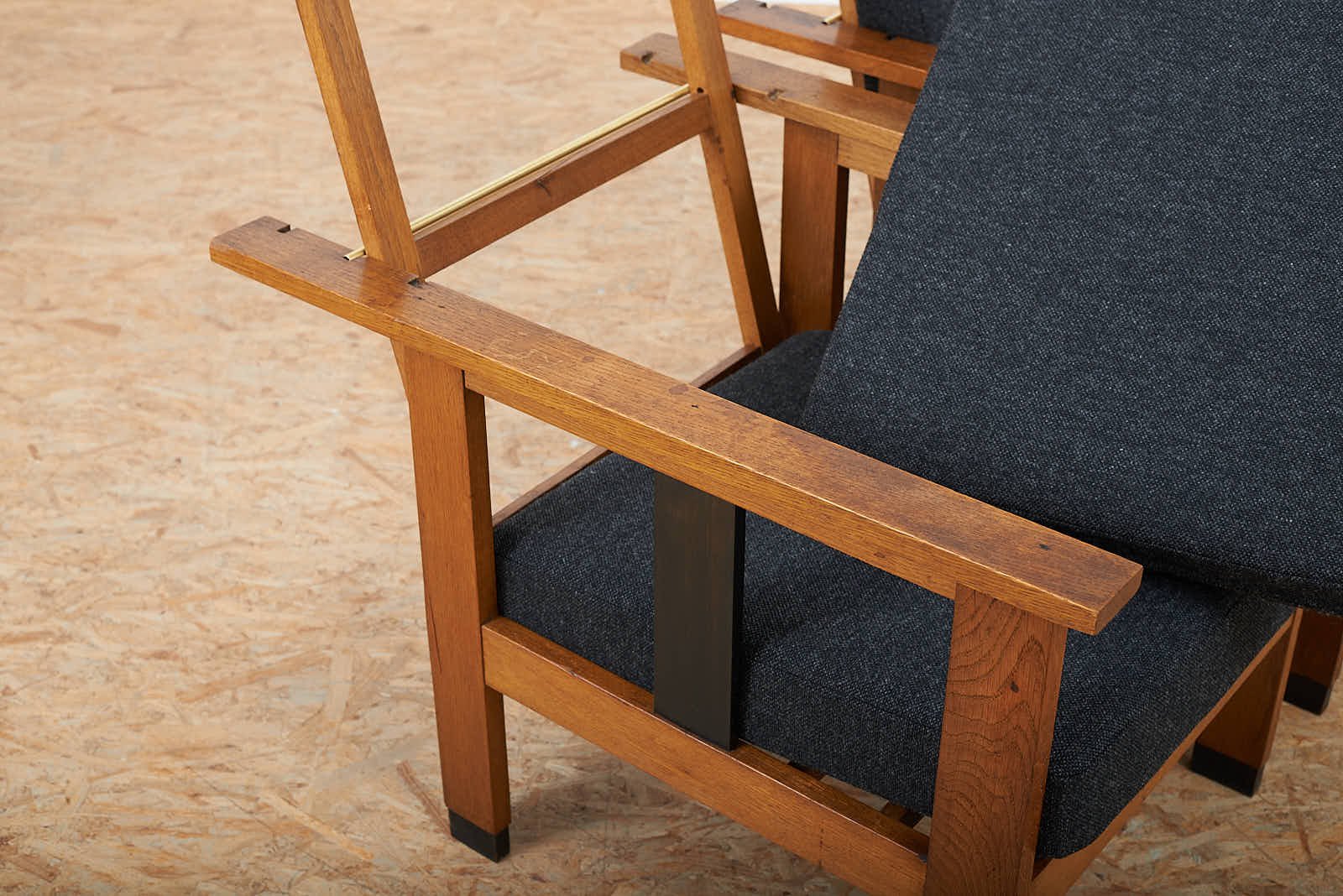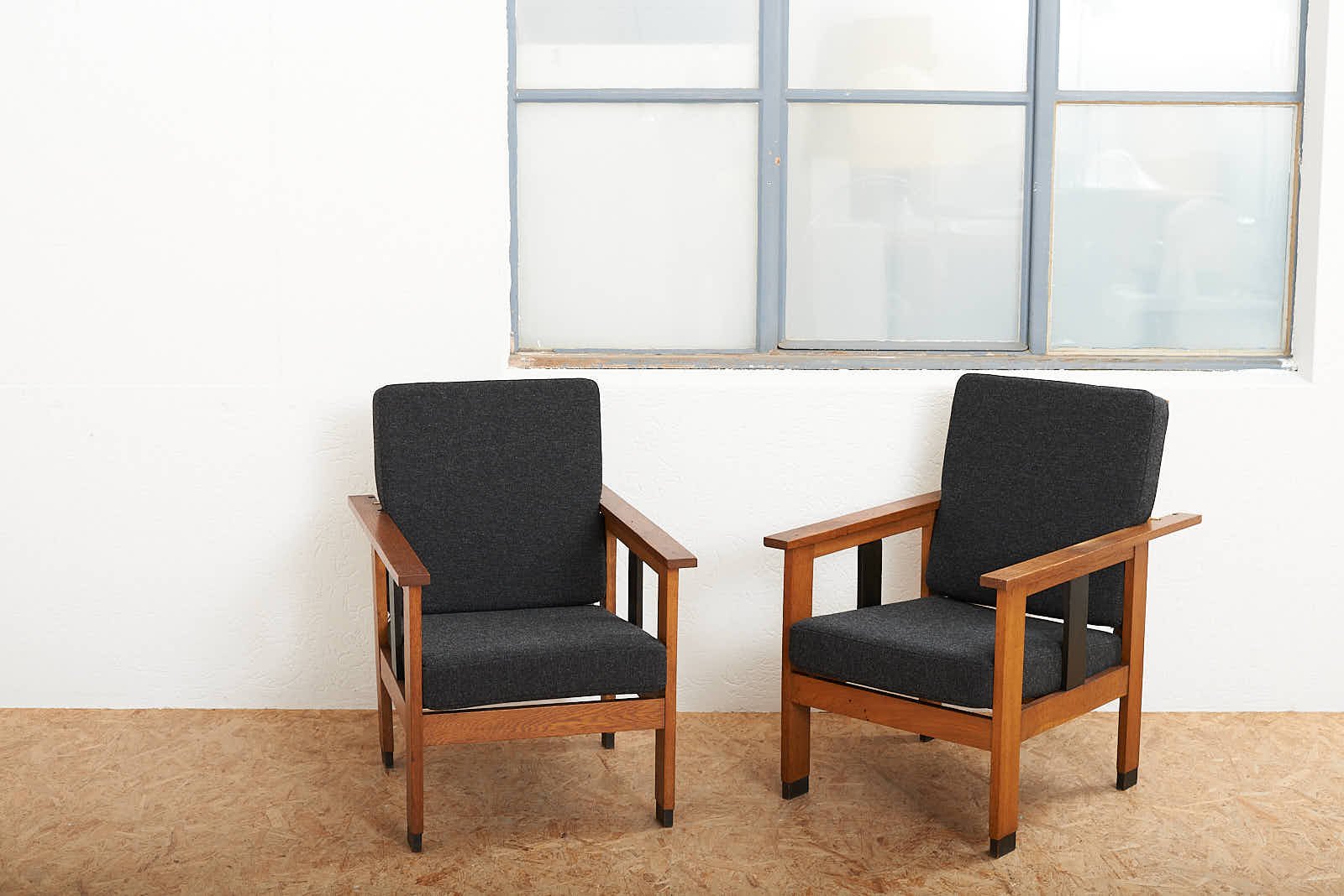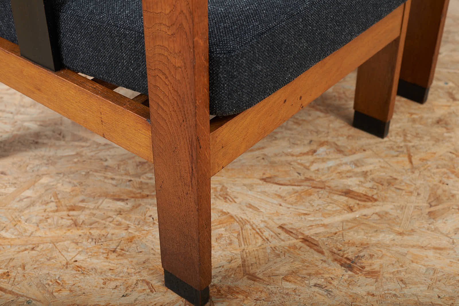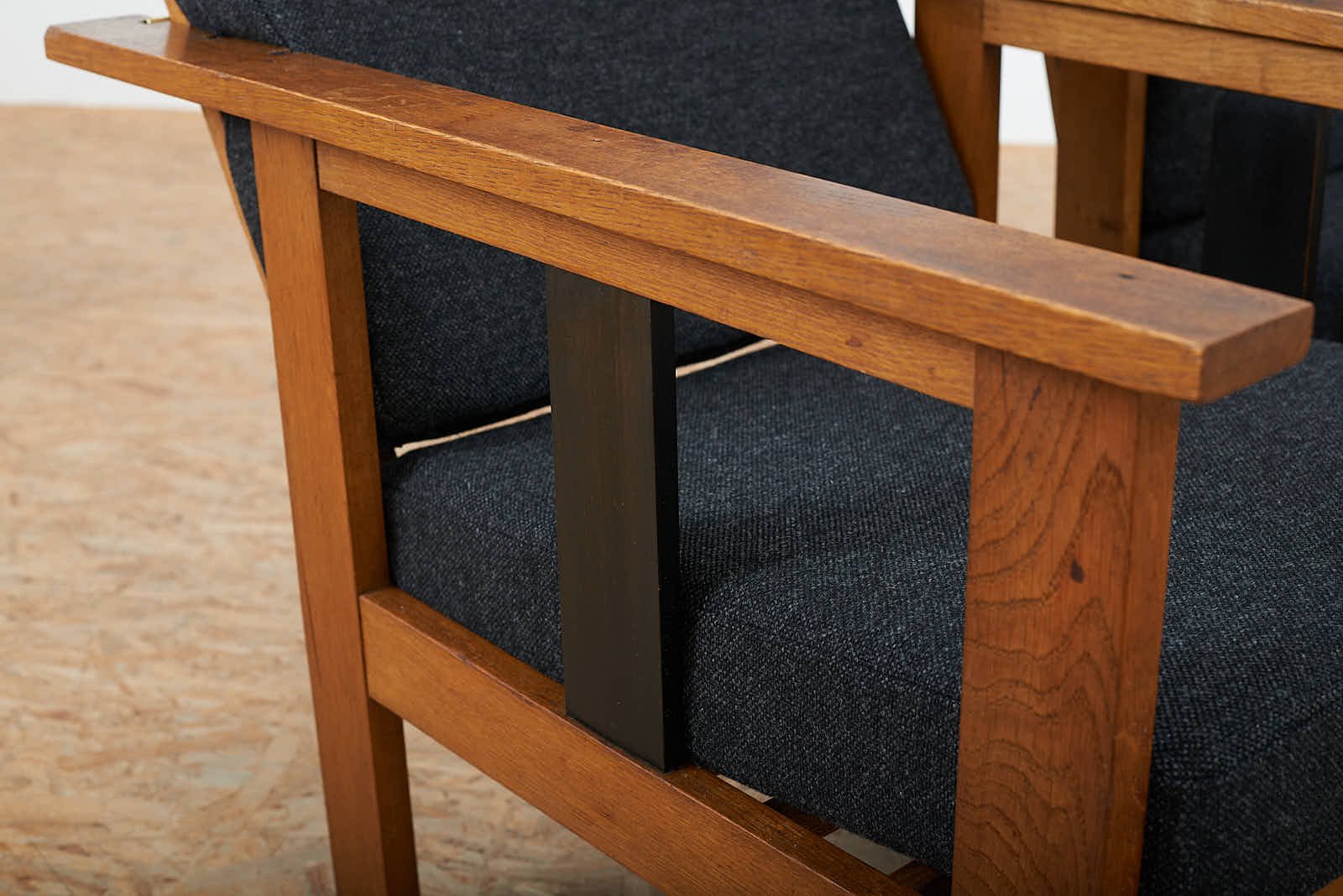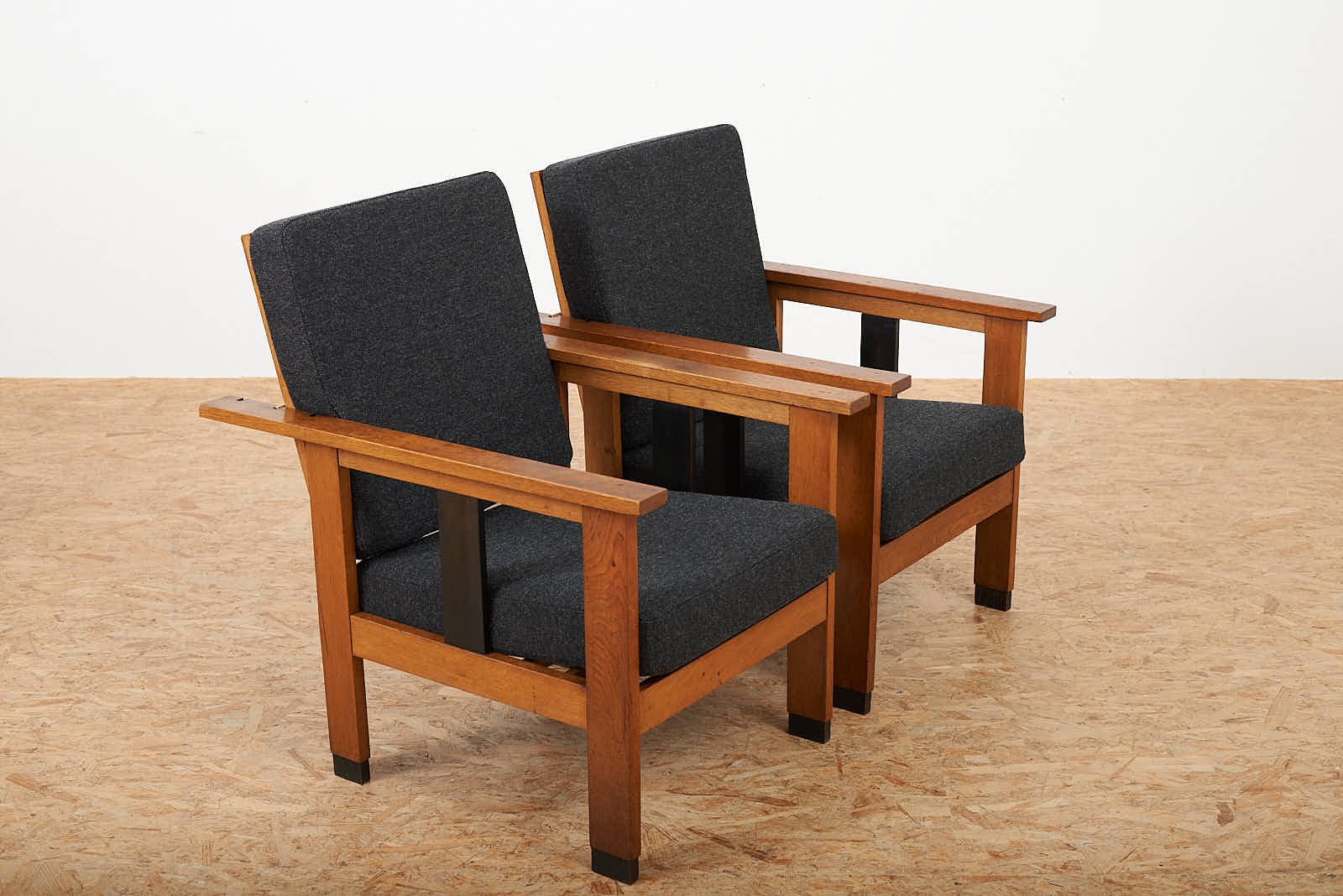 Black Upholstered Lacquered Wood Armchairs, Set of 2