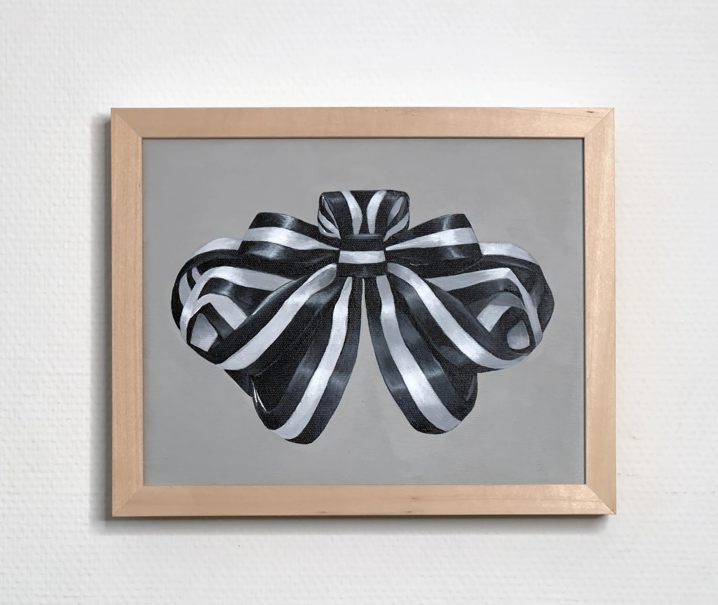 Black & White Framed Painting, a Curvy Organic Striped Ribbon