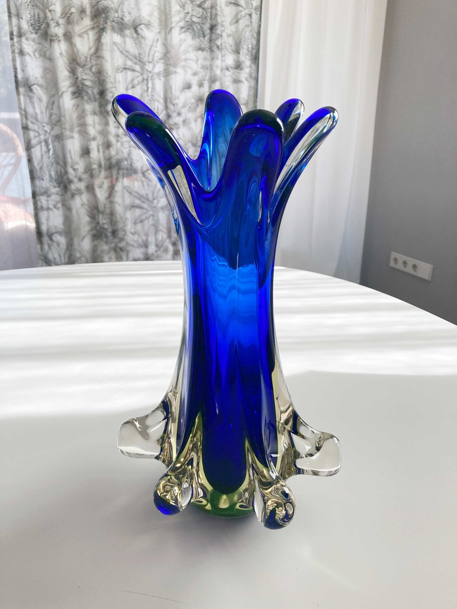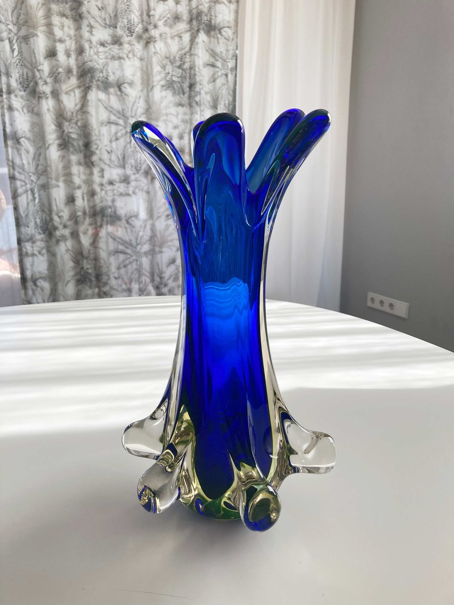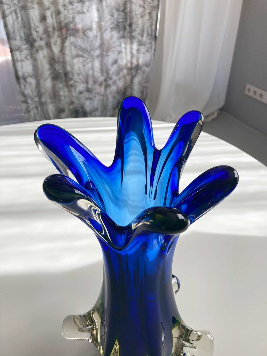 Blau Murano Glass Vase from Fratelli Toso, 1970s
