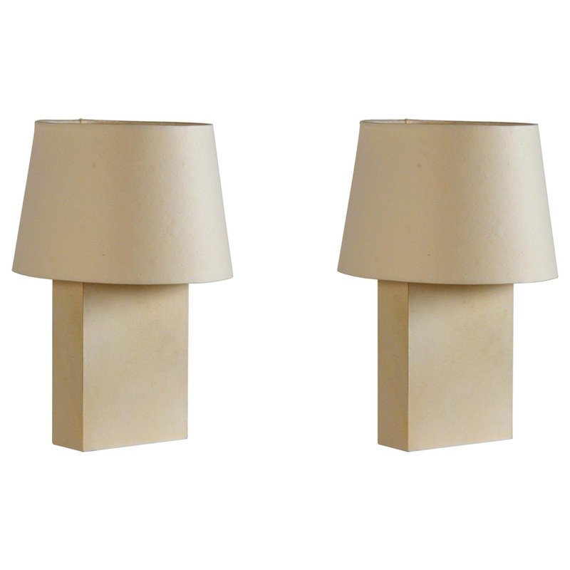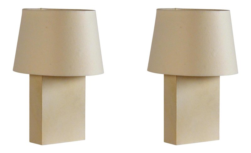 Bloc Parchment Lamps with Parchment Paper Shades by Atelier Cabanel, Set of 2
