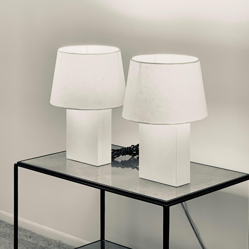 Octogone Walnut Table Lamps with Parchment Shades by Atelier Cabanel, Set of 2