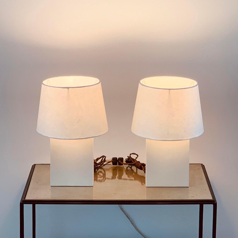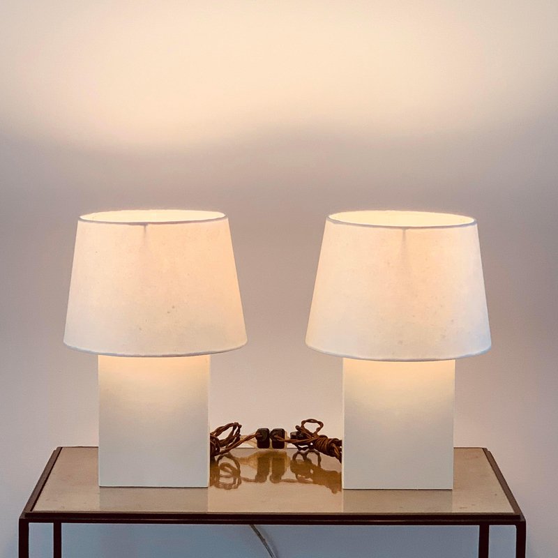 Chic Polished Brass and Parchment Paper Table Lamps by Atelier Cabanel, Set of 2