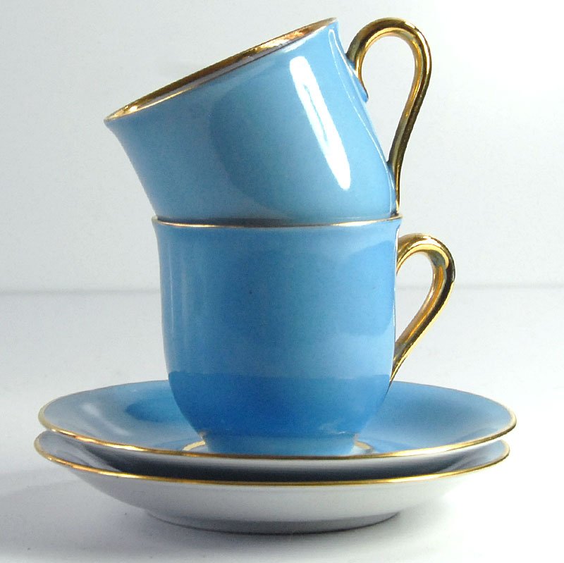 Blue & Gold Coffee Cups from Oskar Schaller Bavaria, Germany, 1950s, Set of 4