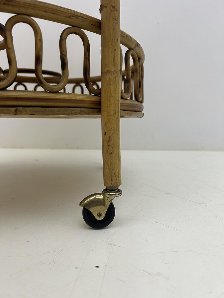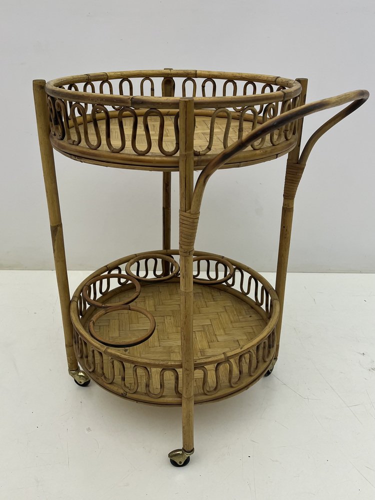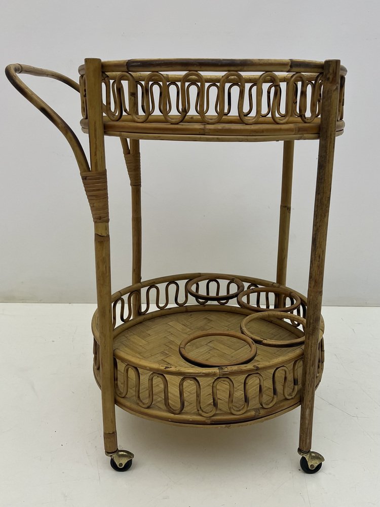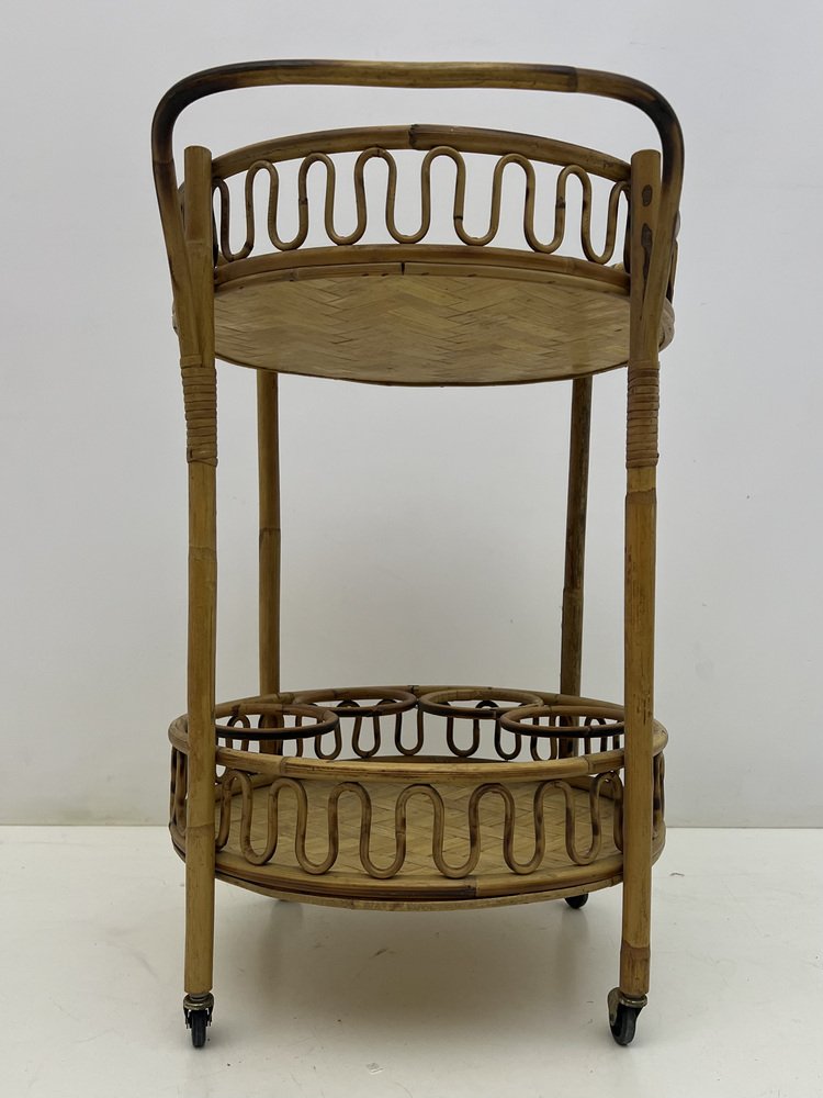 Bohemian Round Bar Trolley in Bamboo and Wicker attributed to Franco Albini, 1960s