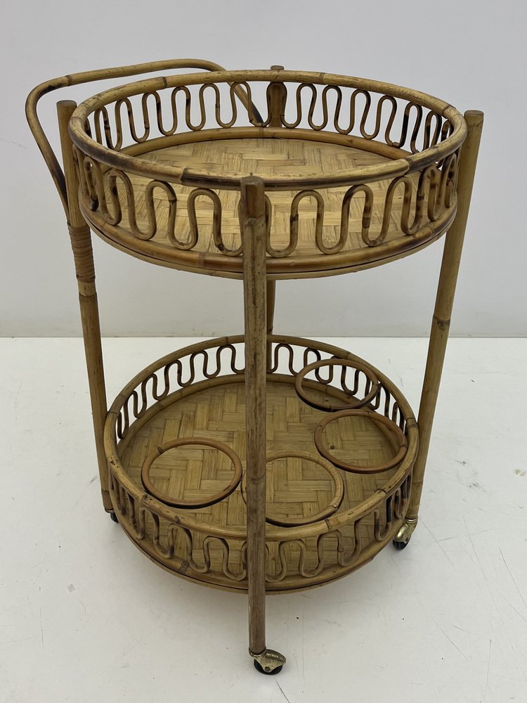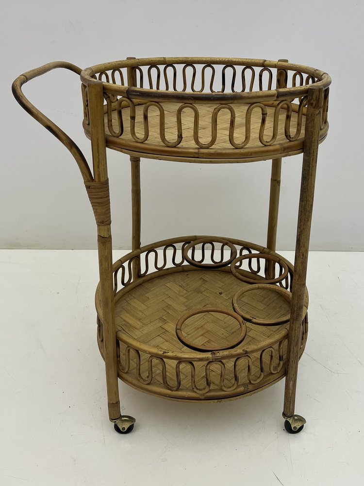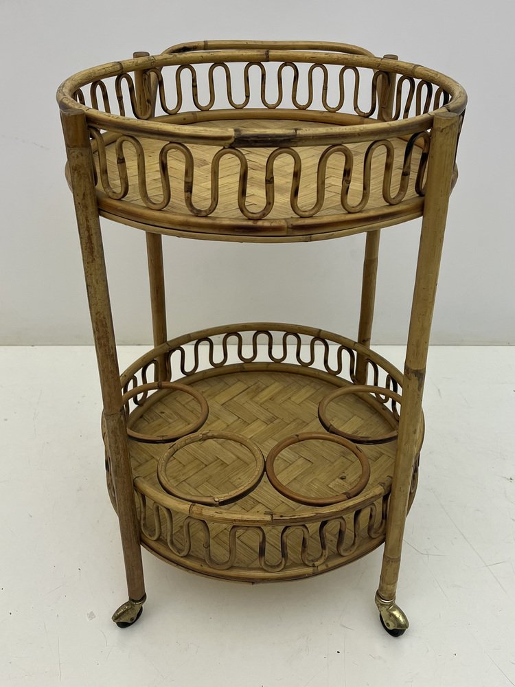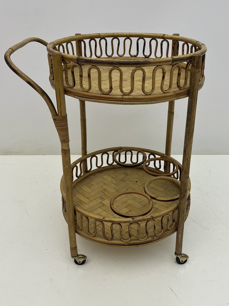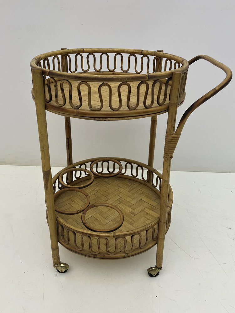 Bohemian Round Bar Trolley in Bamboo and Wicker attributed to Franco Albini, 1960s
