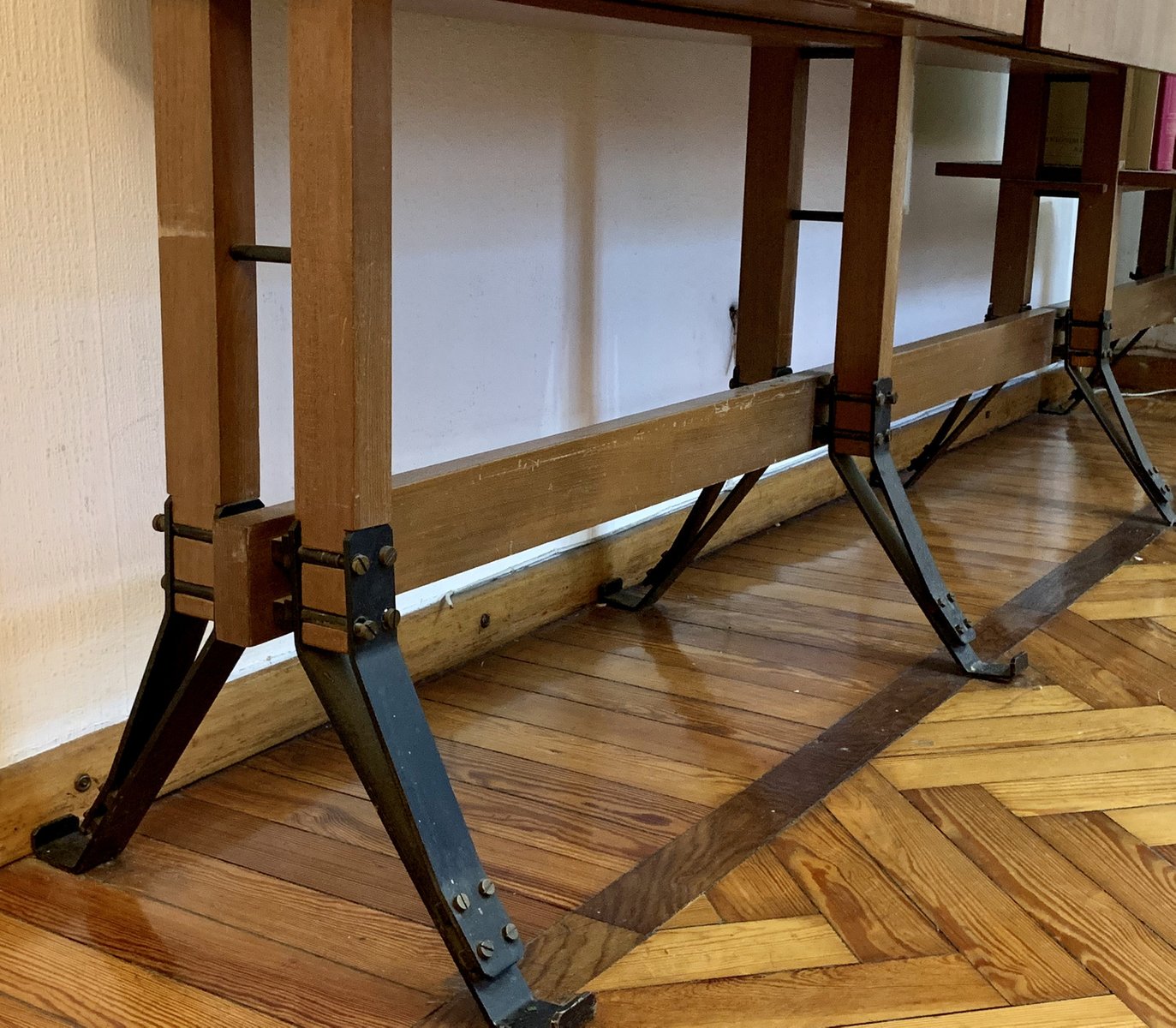 Bookcase in Wood and Iron in the Style of Gianfranco Frattini, Italy, 1950s