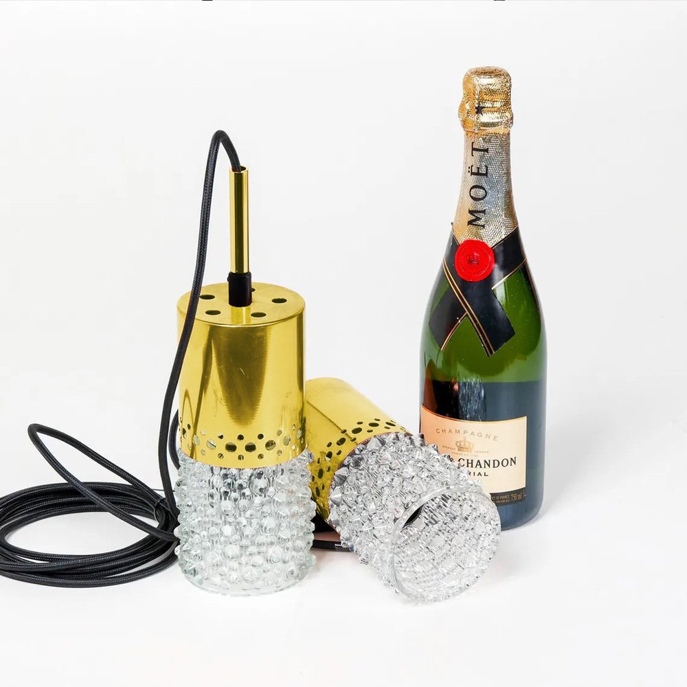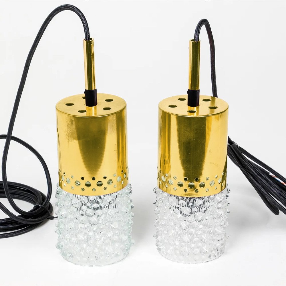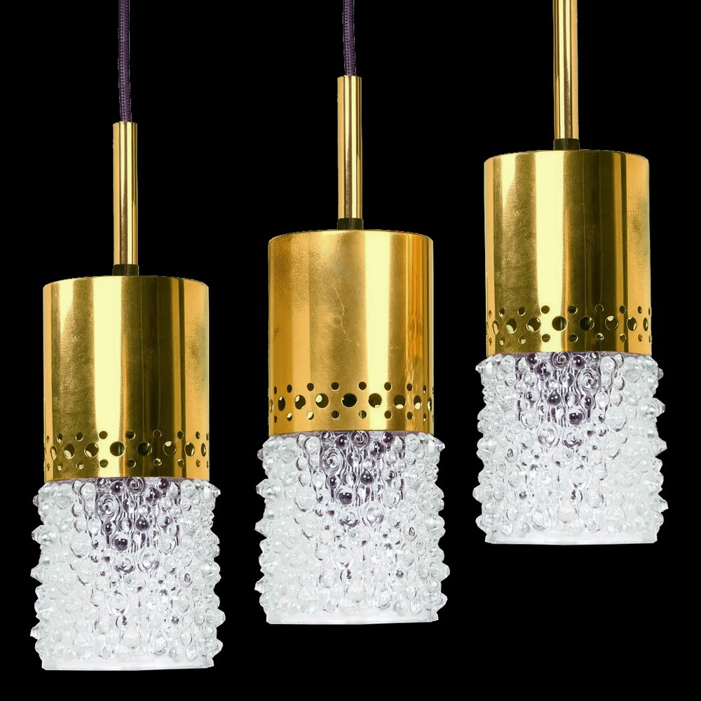 Brass and Bubble Glass Pendant Lights attributed to VEB Narva Leuchten, Germany, 1970s, Set of 3