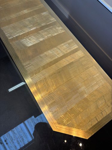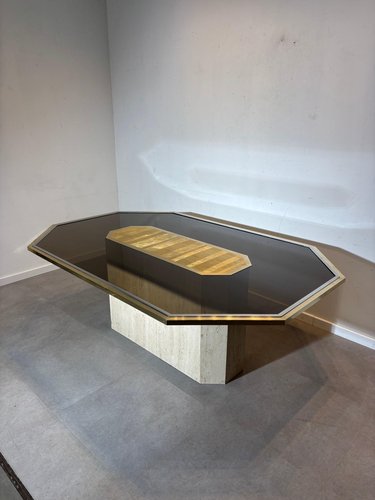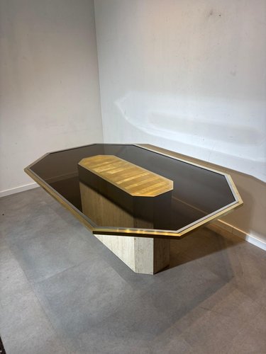 Brass and Etched Travertine Dining Table by Roger Vanhevel