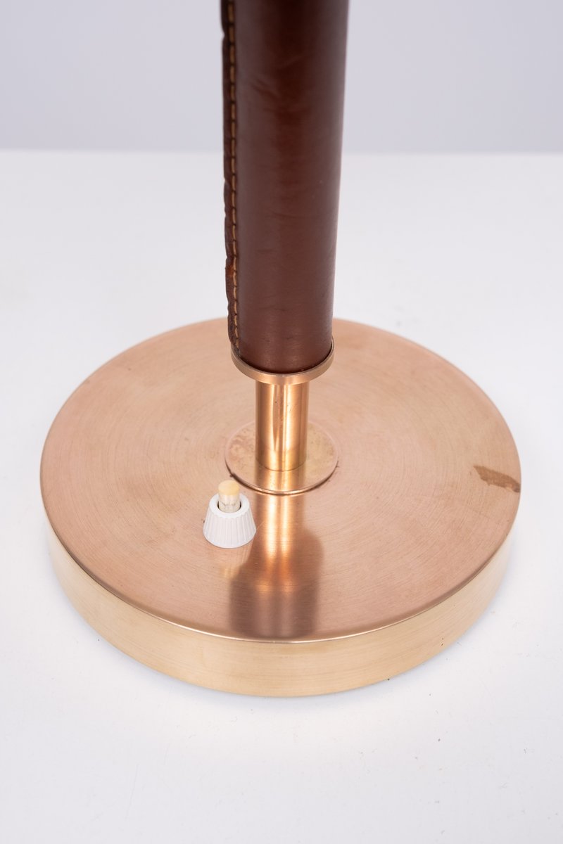 Brass and Leather Table Lamp from Falkenbergs Belysning, Sweden, 1960s