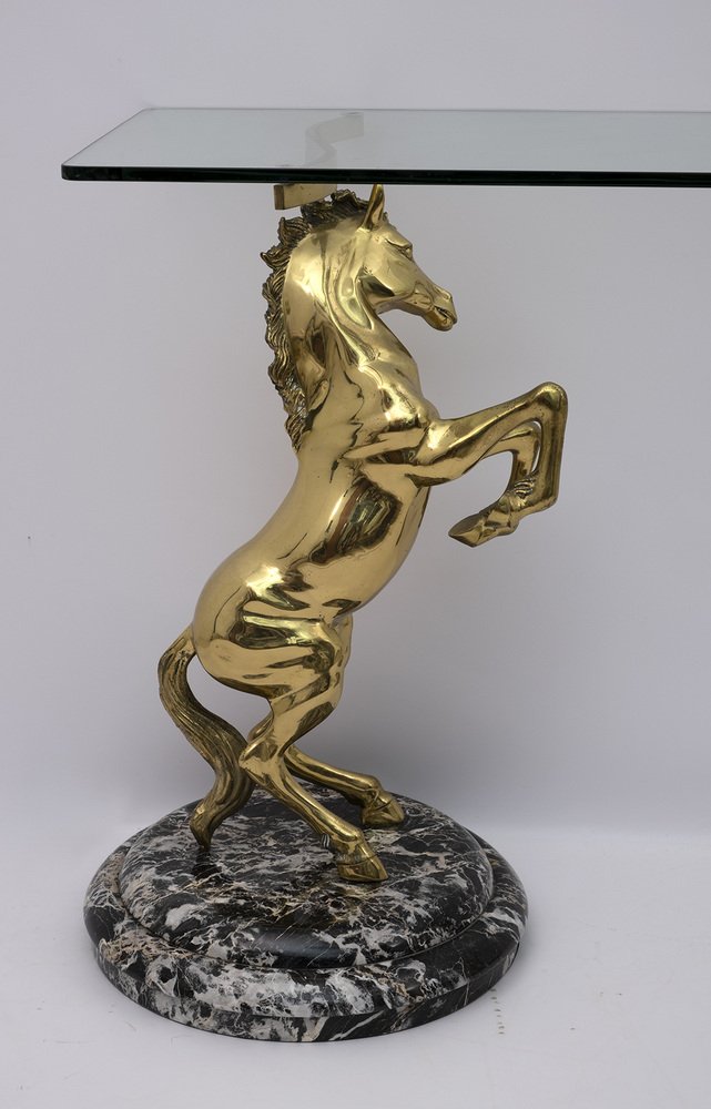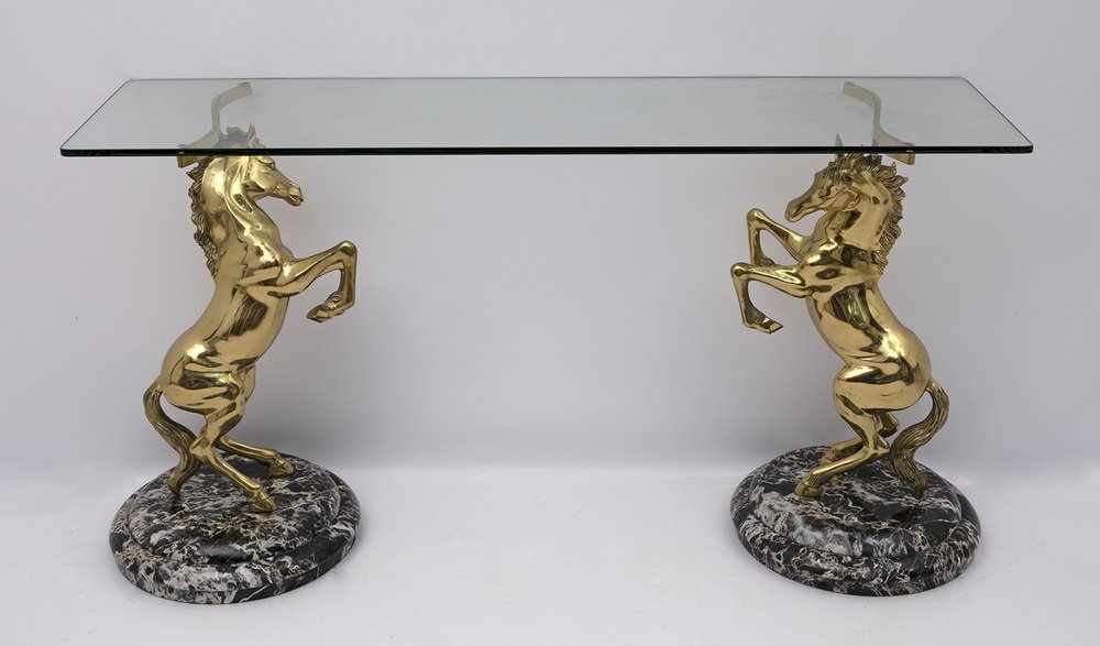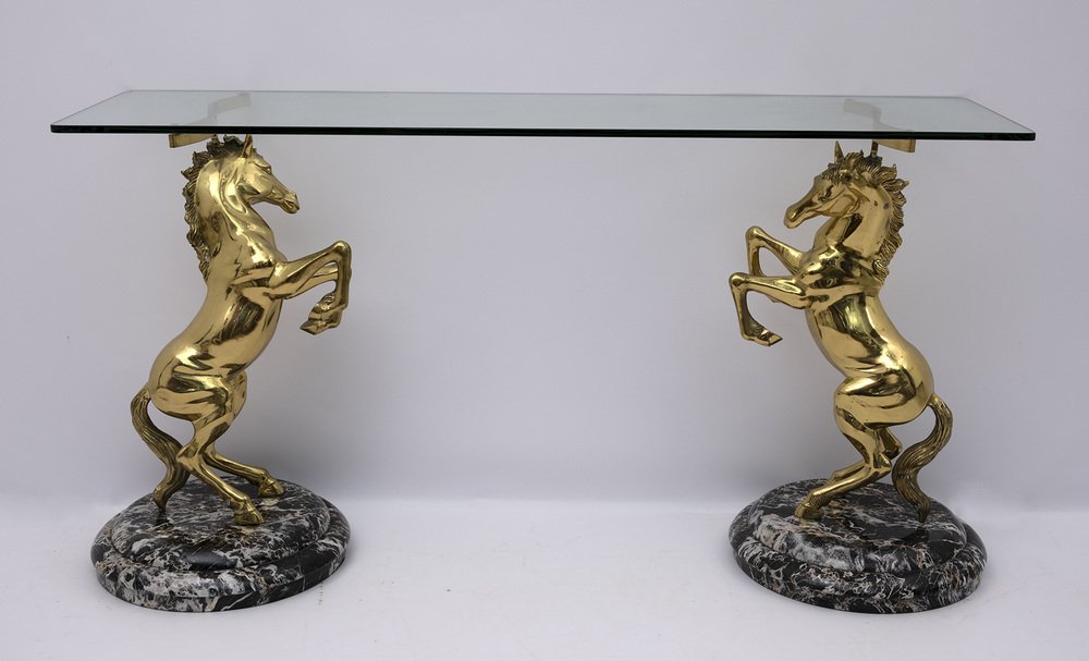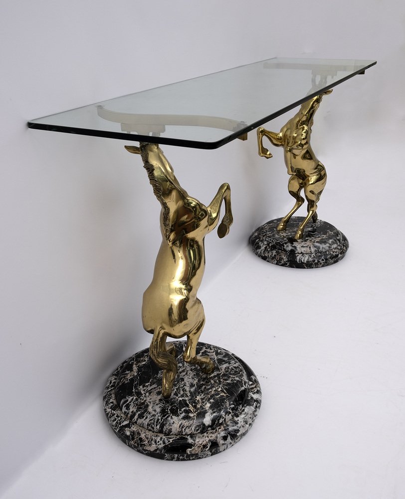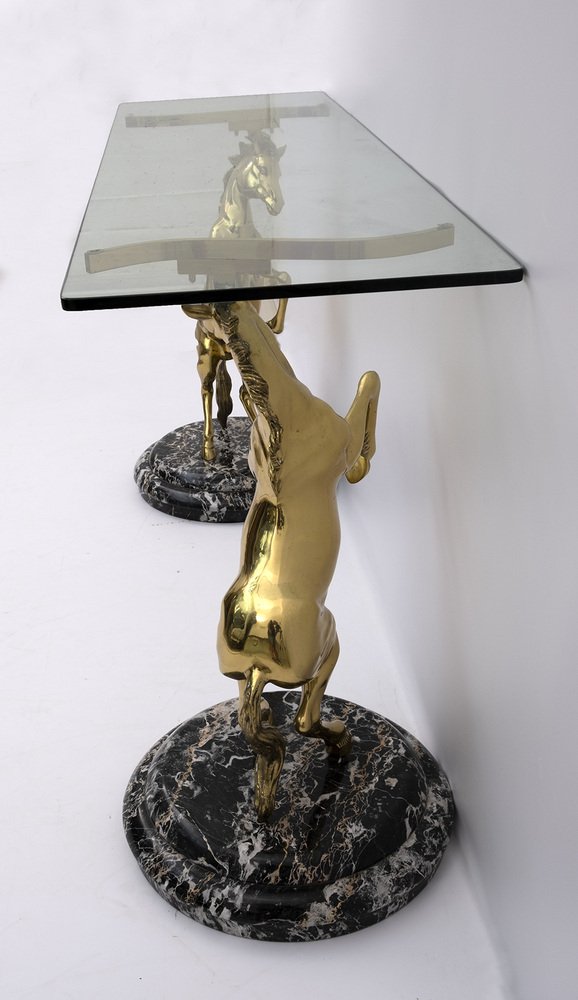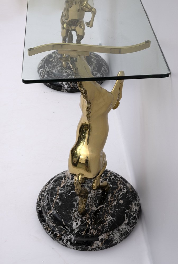 Brass and Marble Base Console Table with Horses, Italy, 1970