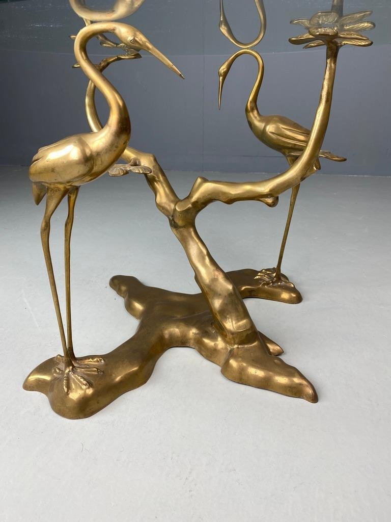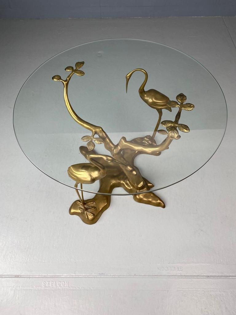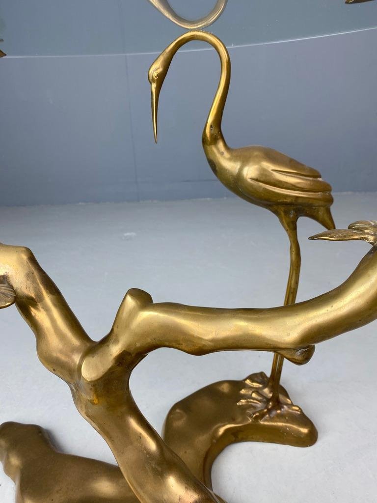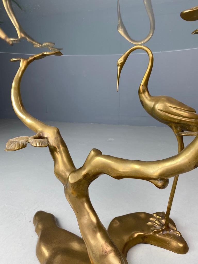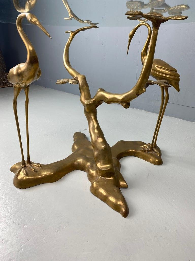 Brass Bonsai Tree & Cane Bird Side Table by Willy Daro, Belgium, 1970s