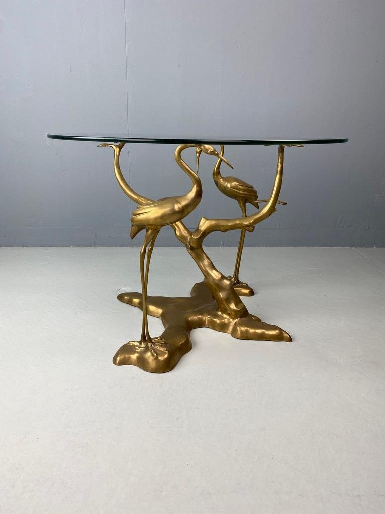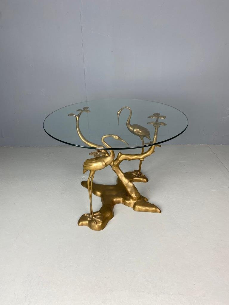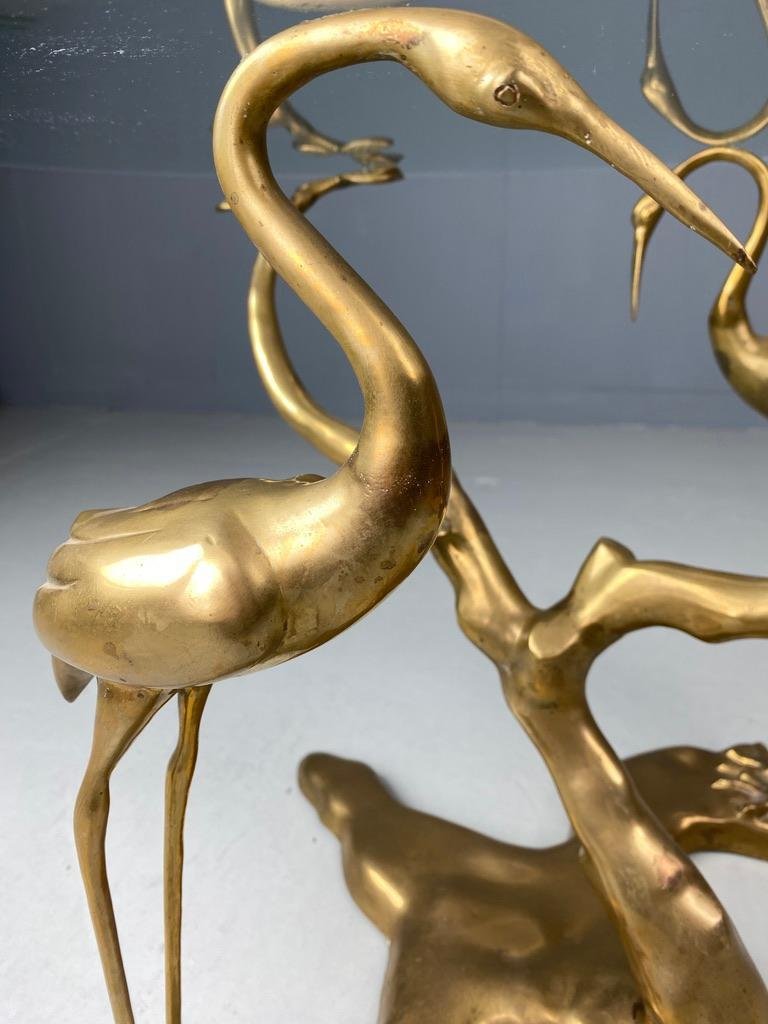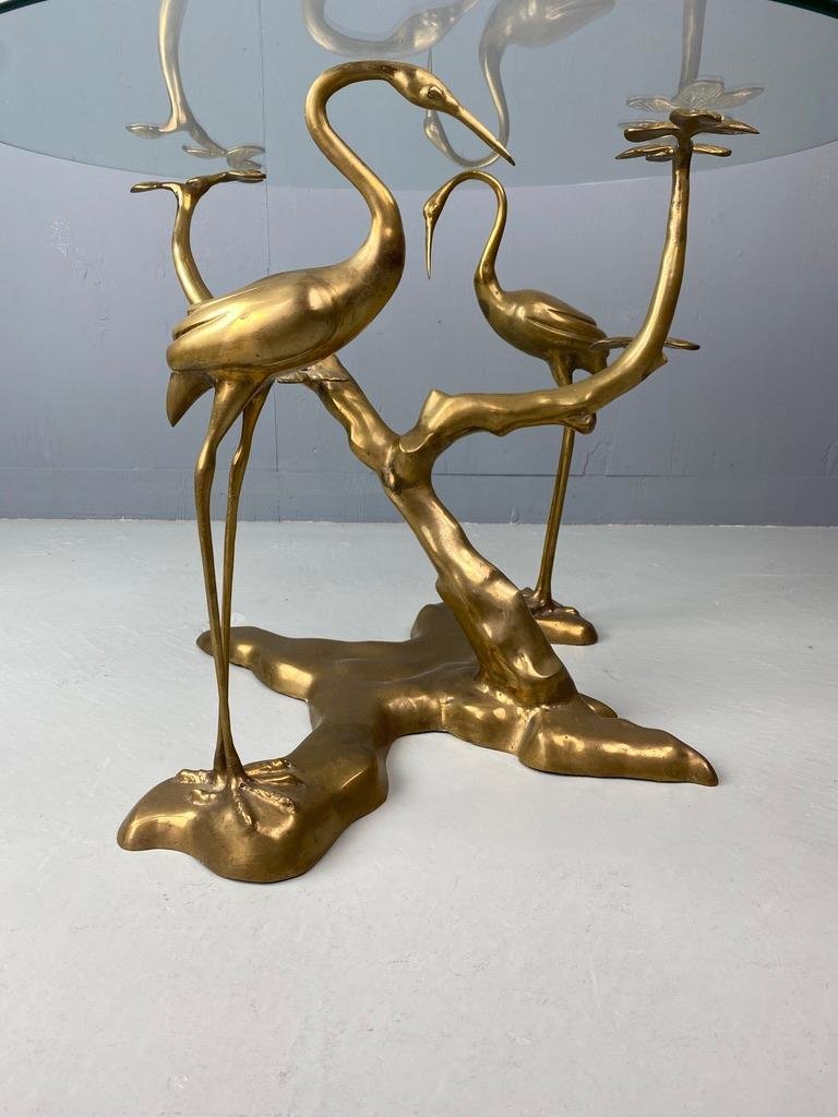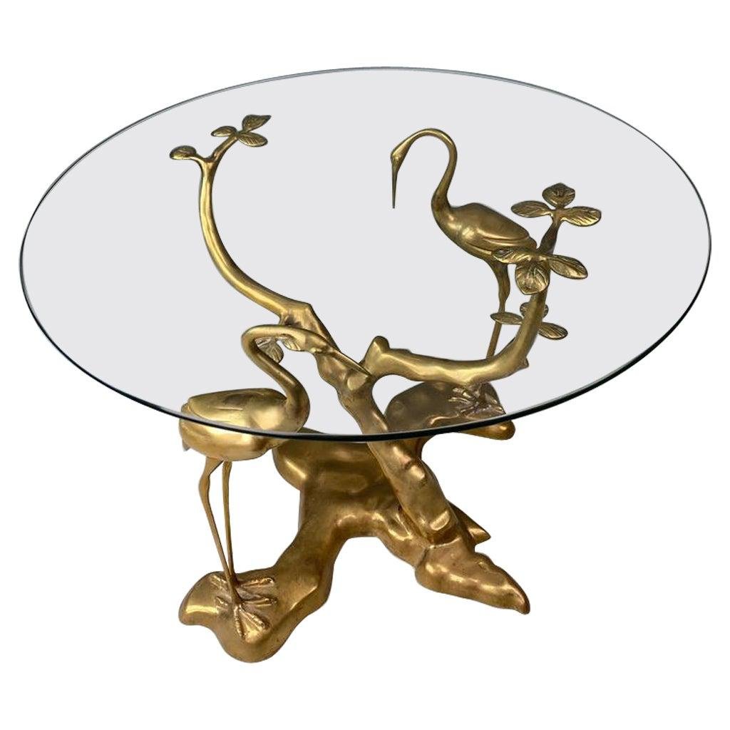 Brass Bonsai Tree & Cane Bird Side Table by Willy Daro, Belgium, 1970s