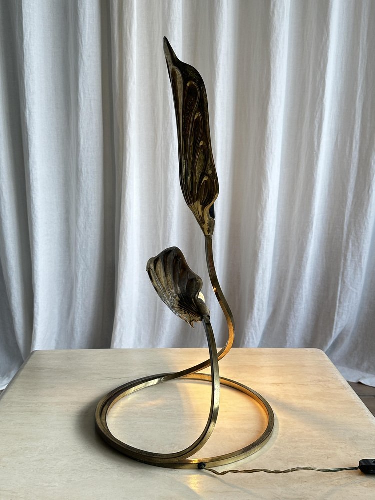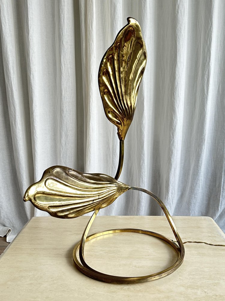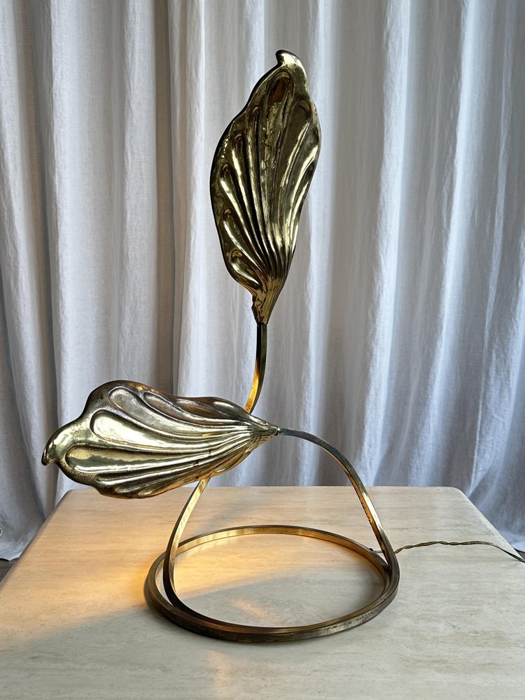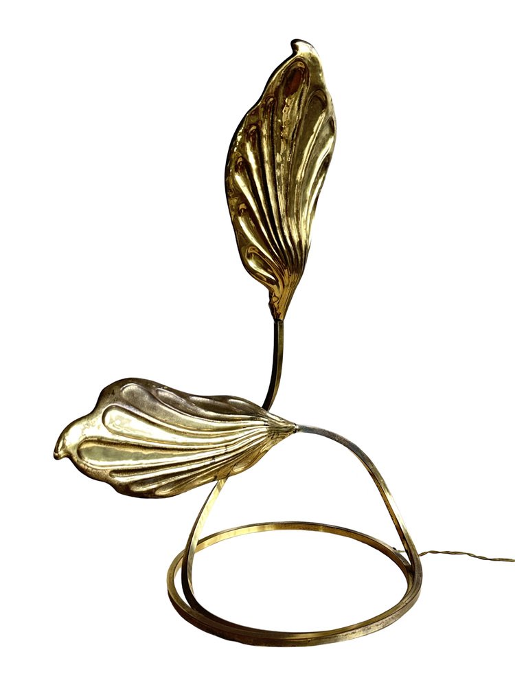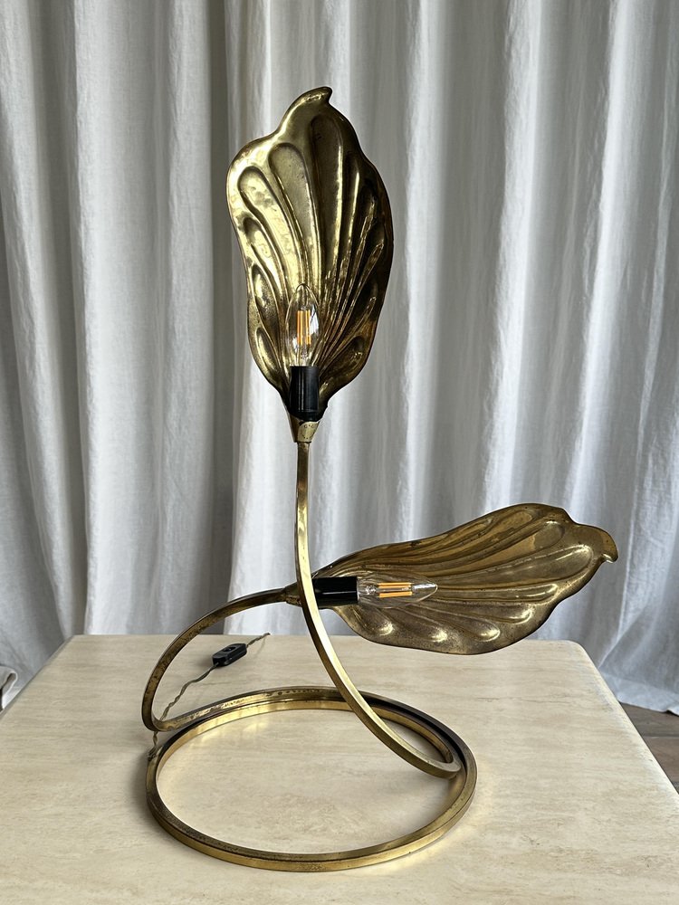 Brass Rhubarb Double Leaves Table Lamp by Tommaso Barbi for G&g Studio E Designo, 1960s