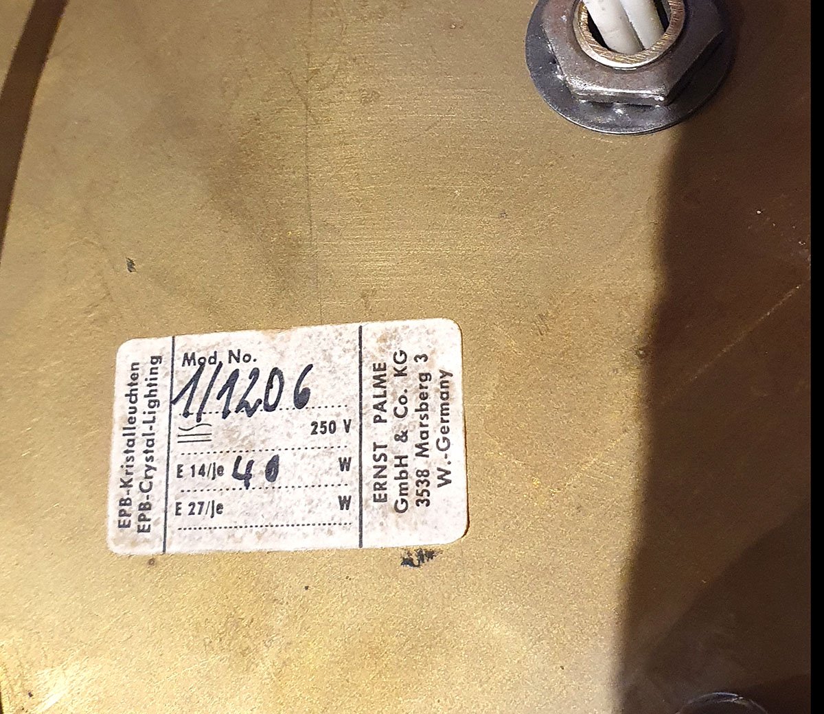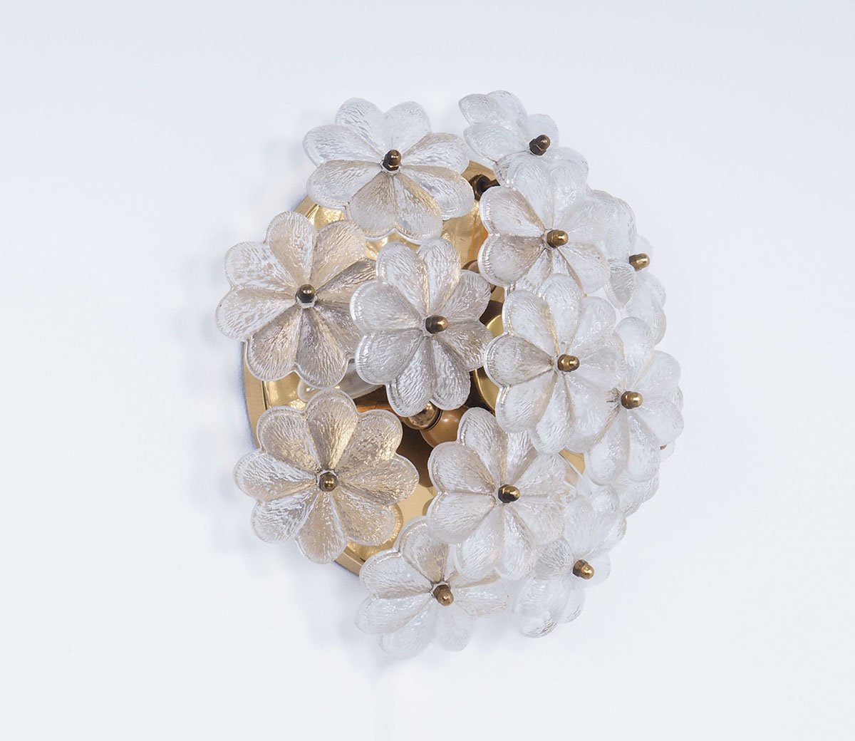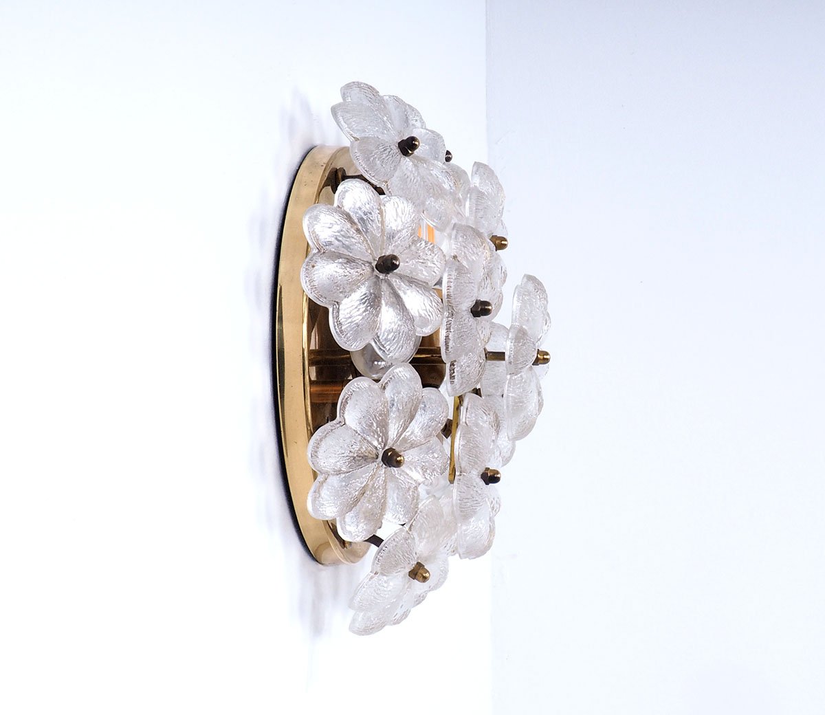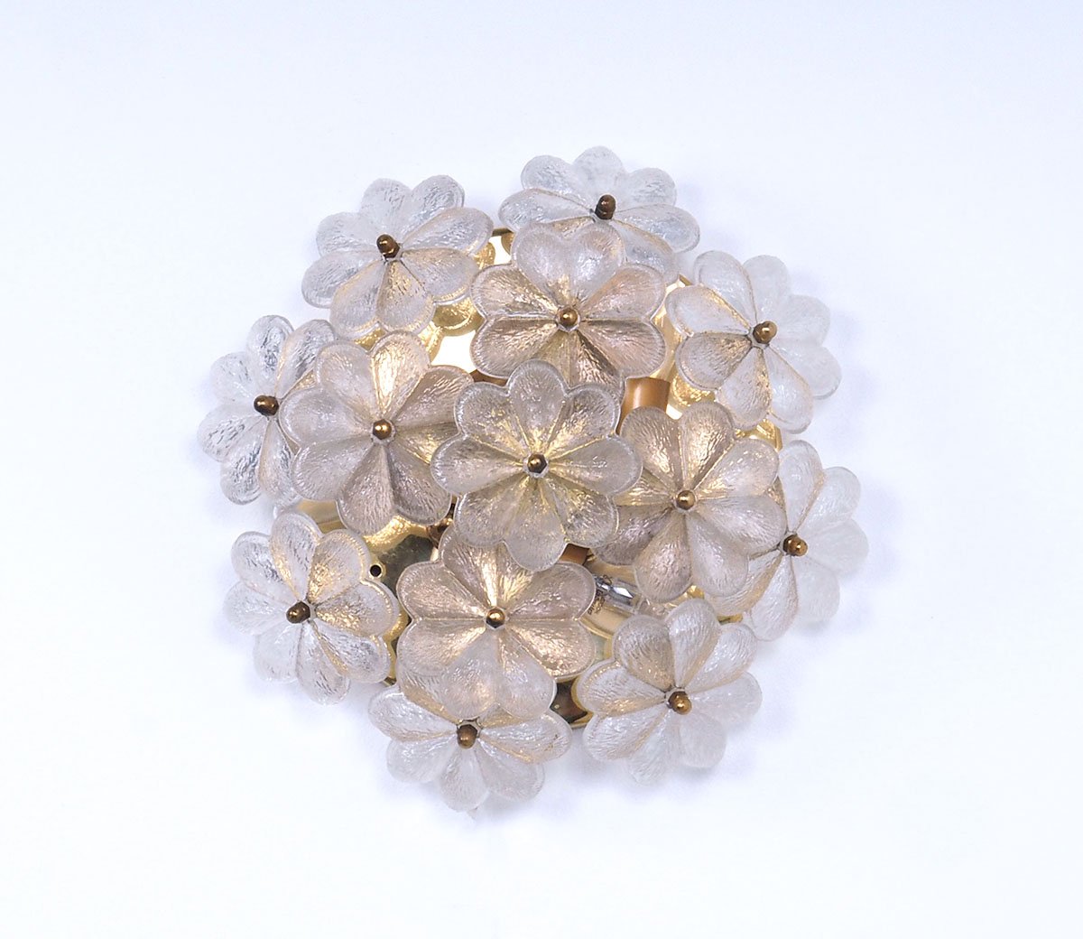 Brass Wall or Ceiling Lamp with Crystal Flowers by Ernst Palme, 1970s