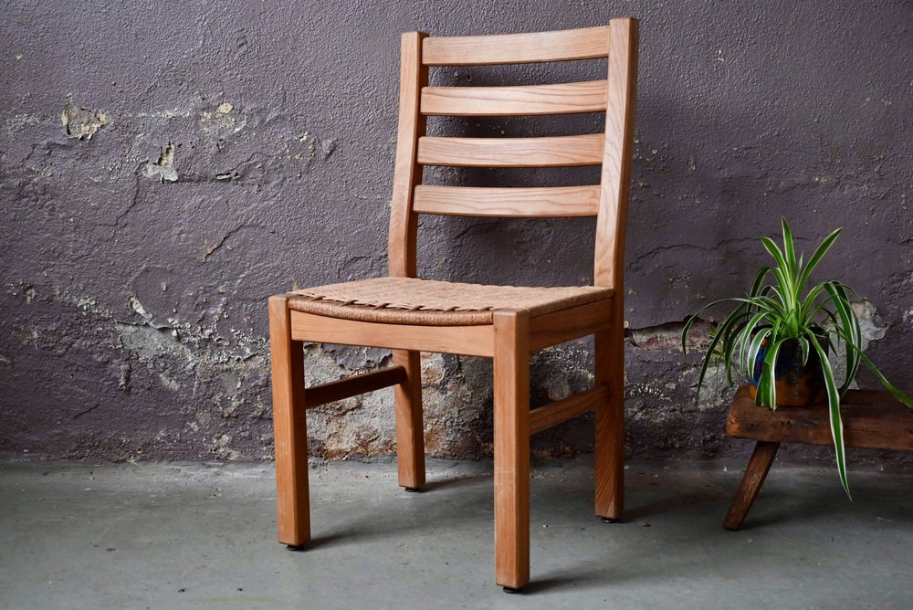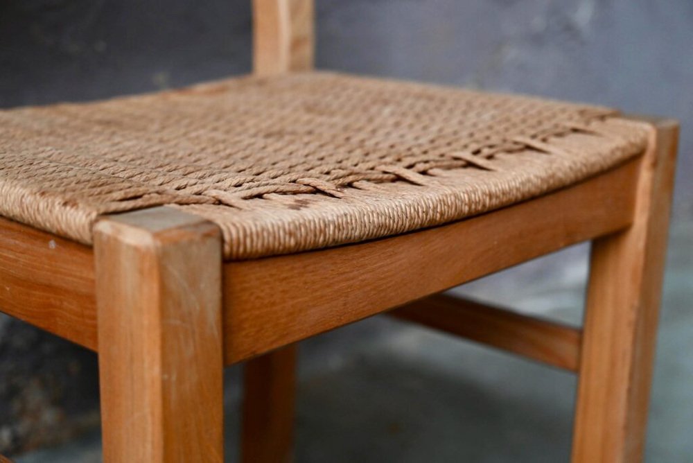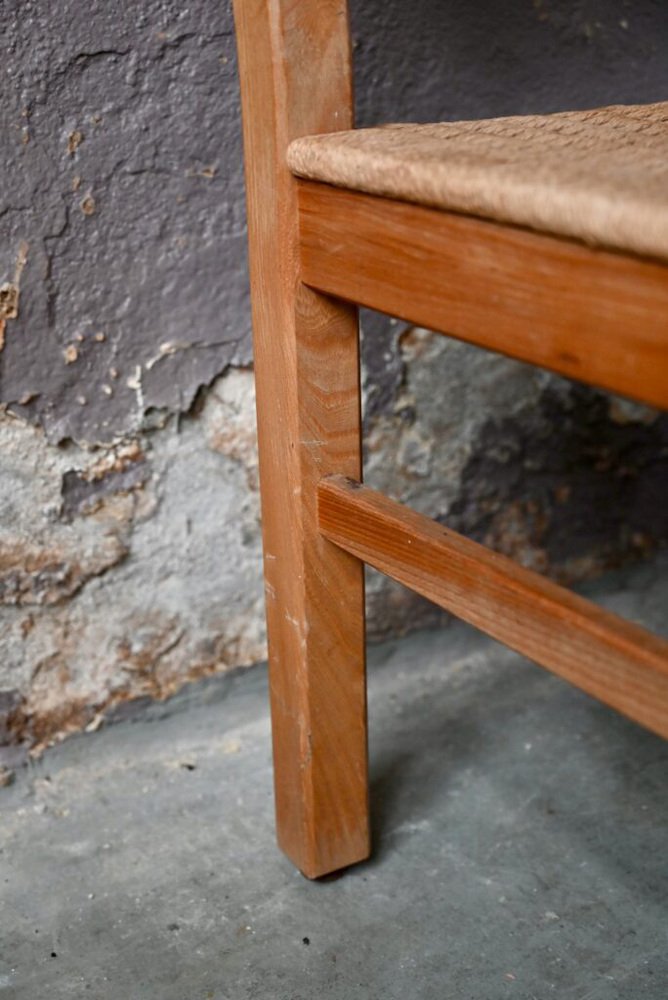 Brutalist Chair in Pine Wood and Rope, 1960s