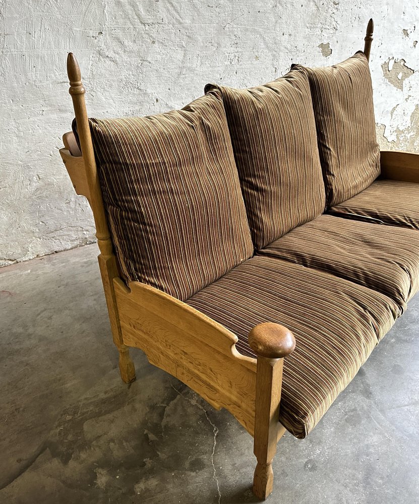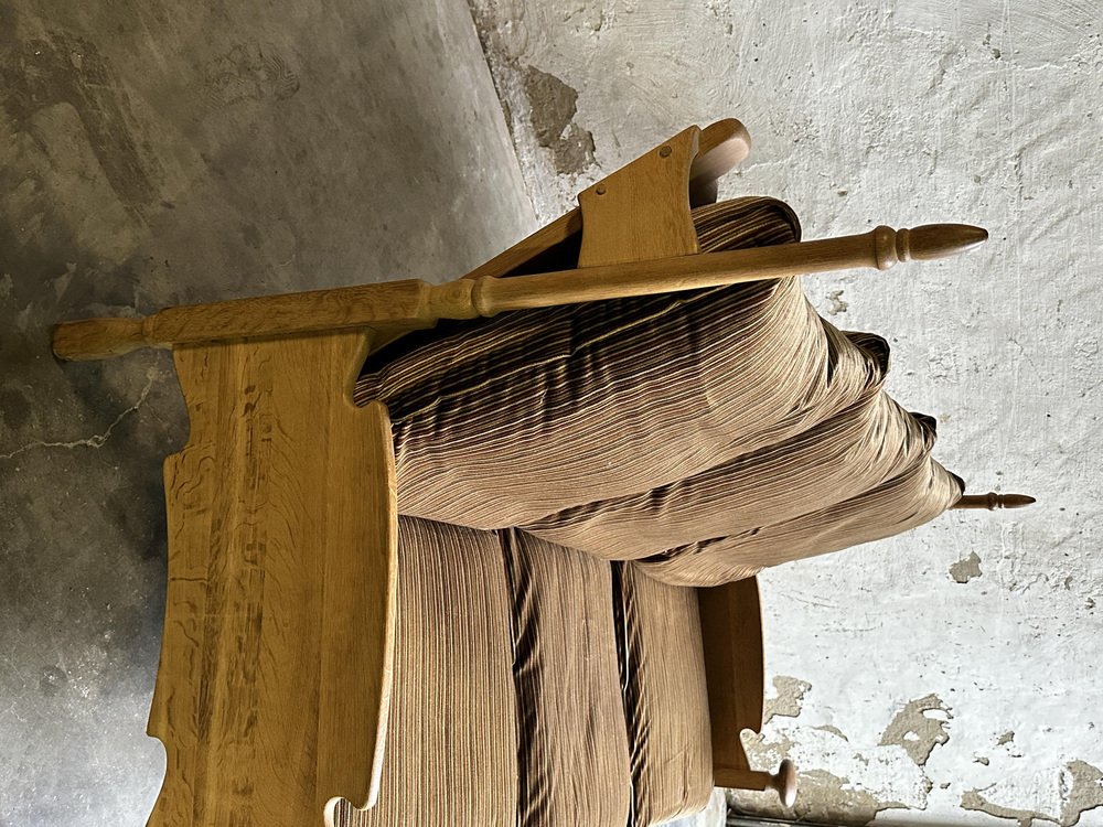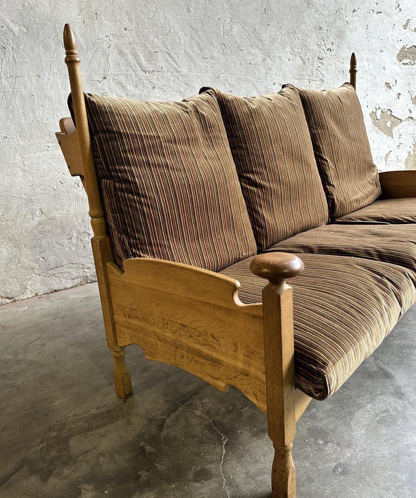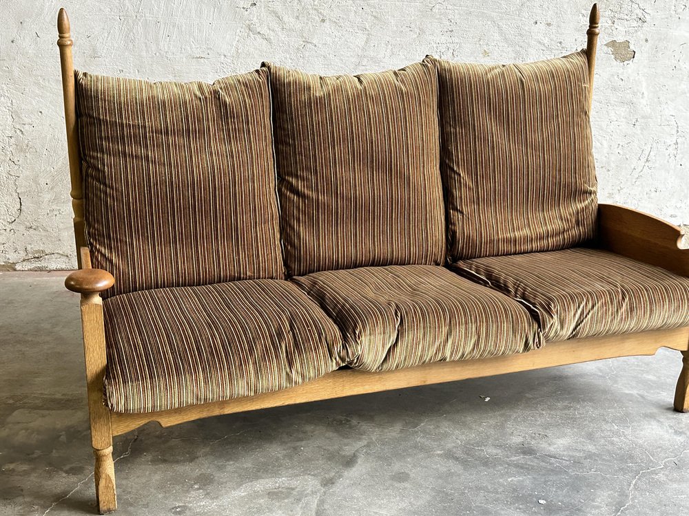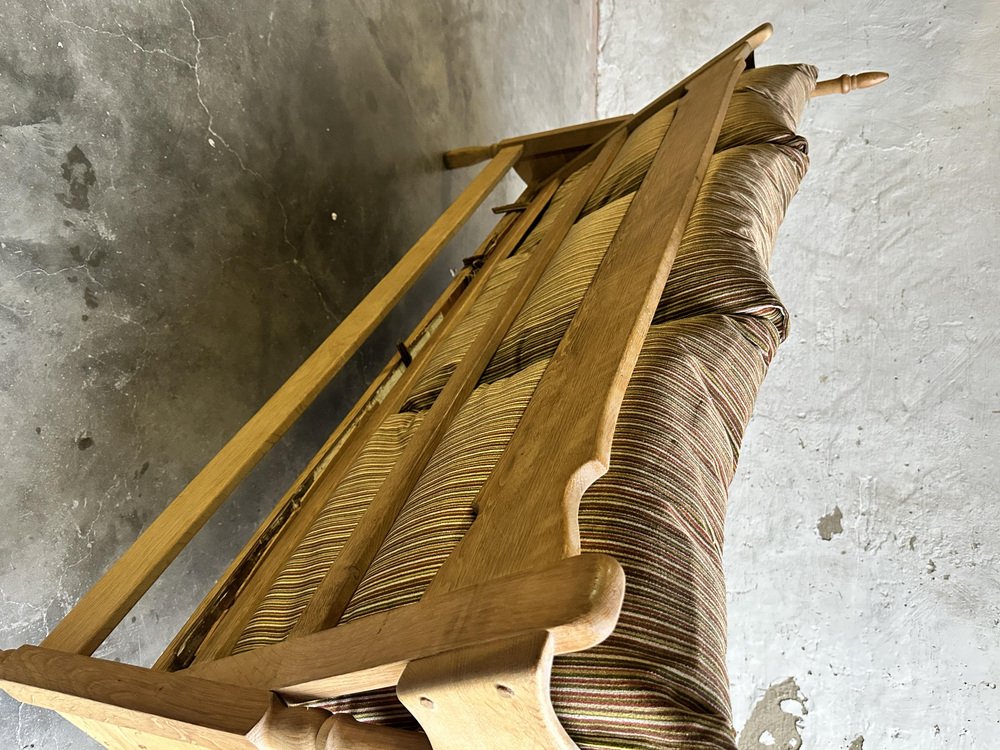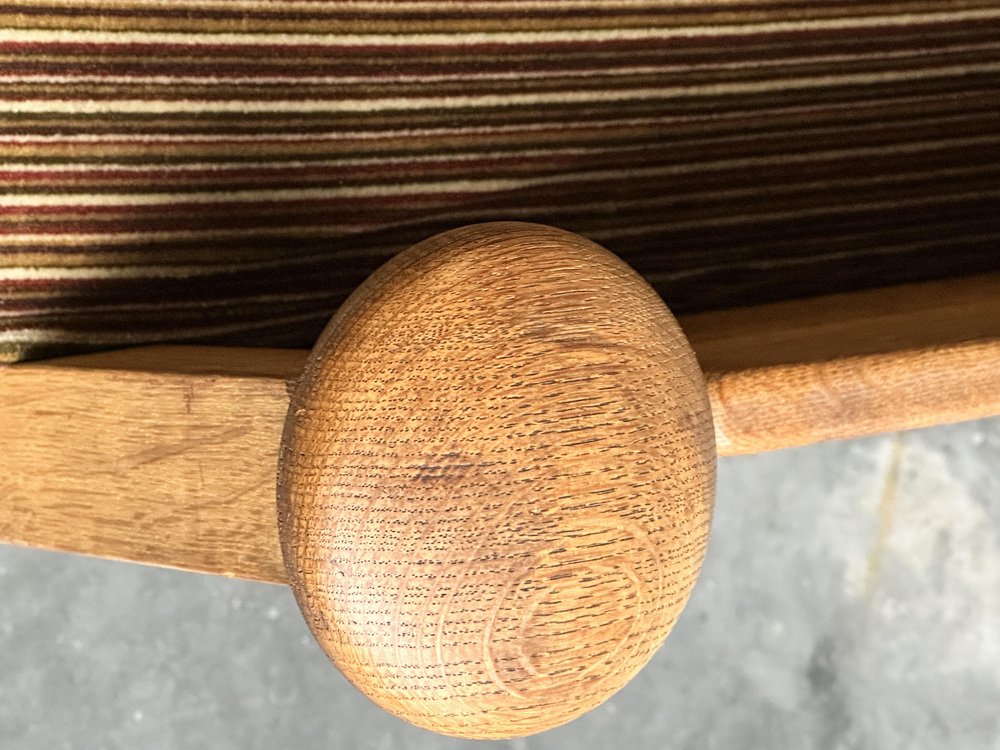 Brutalist Oak and Velvet Throne Sofa in the style of Guillerme Et Chambron, 1950s
