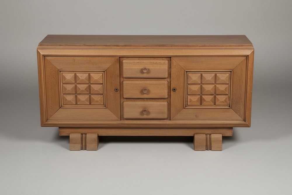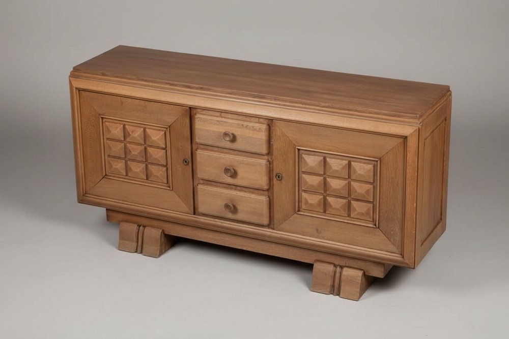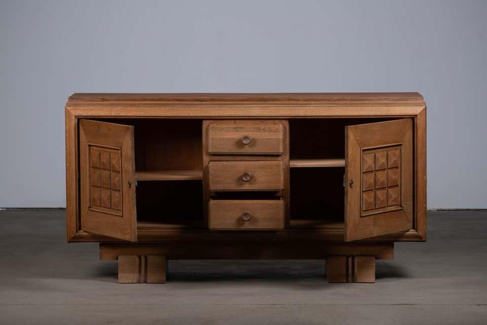 Brutalist Sideboard in Oak attributed to Dudouyt, France, 1940s