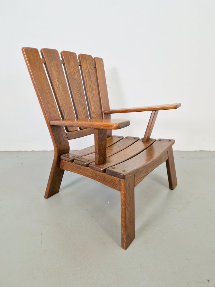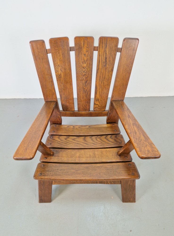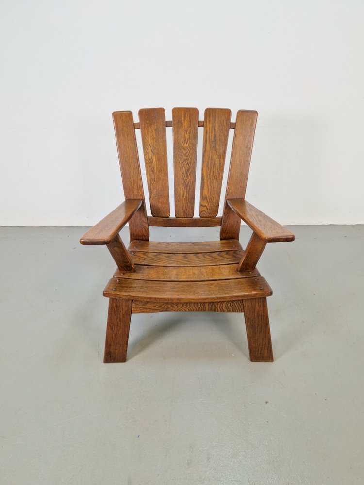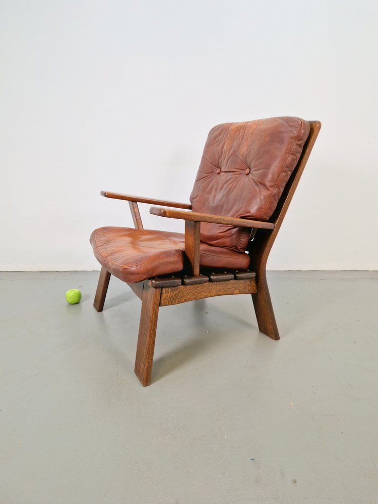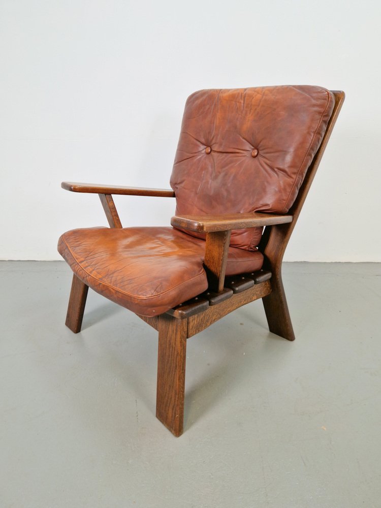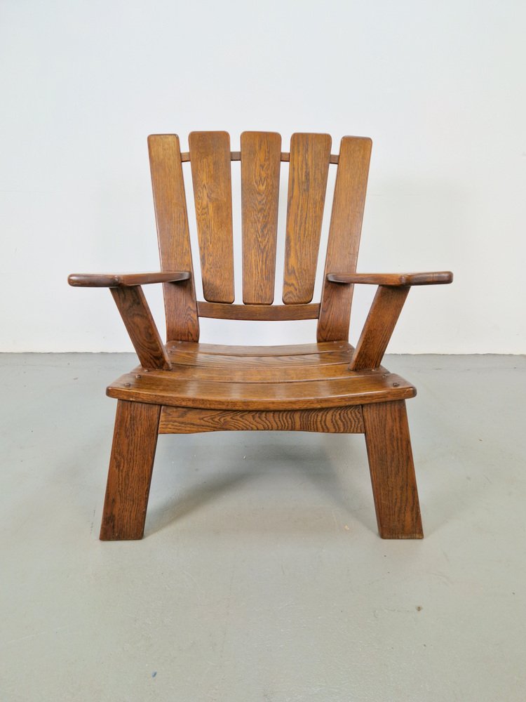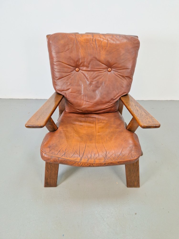 Brutalist Wood Armchair with Brown Leather Upholstery, Germany, 1960s