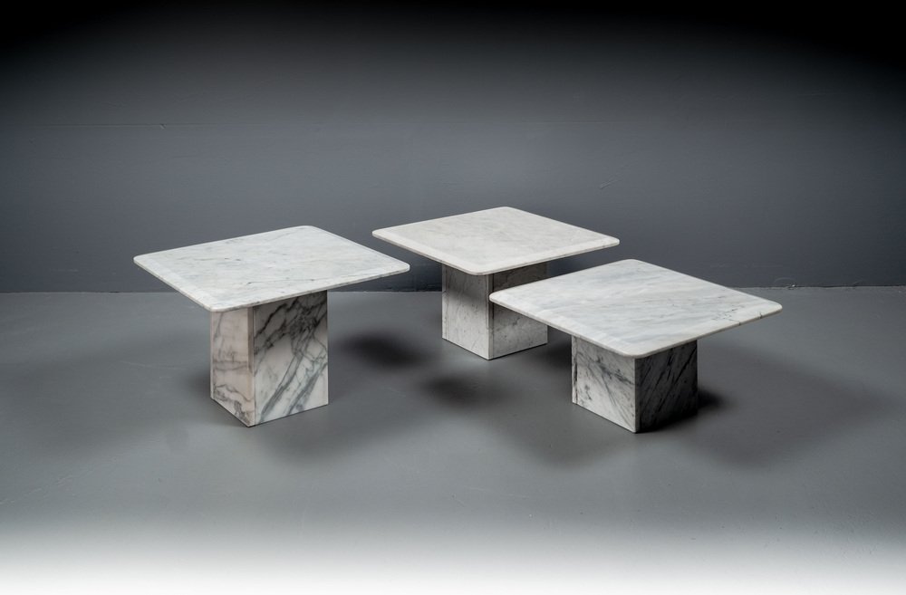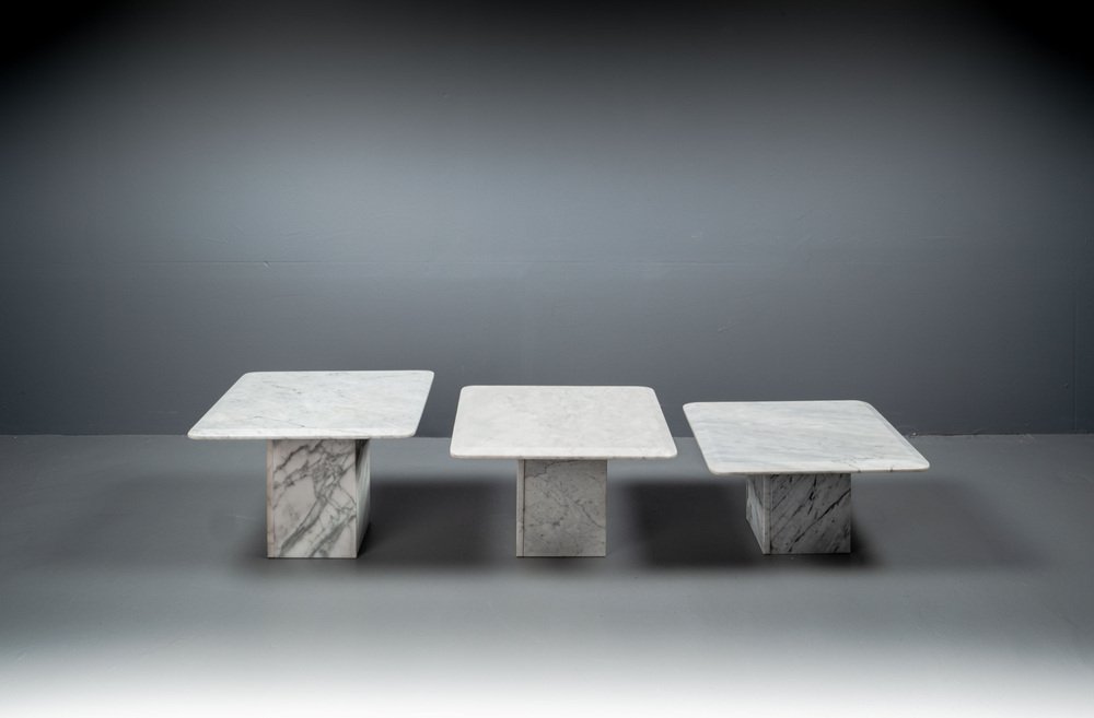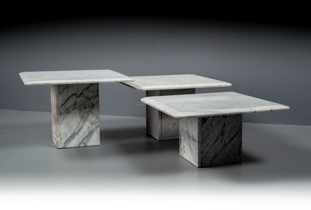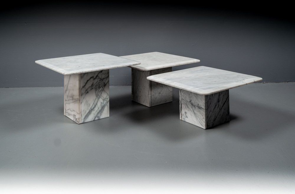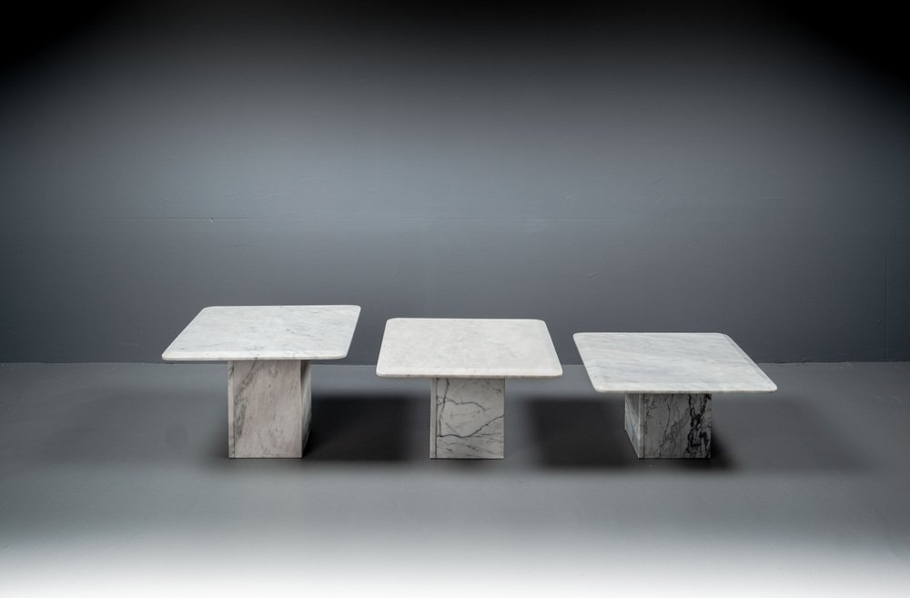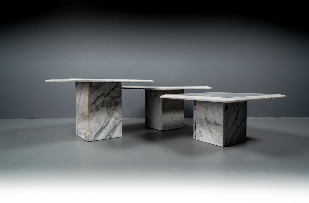 Carrara Marble Nesting Coffee Tables, Italy, 1960s, Set of 3