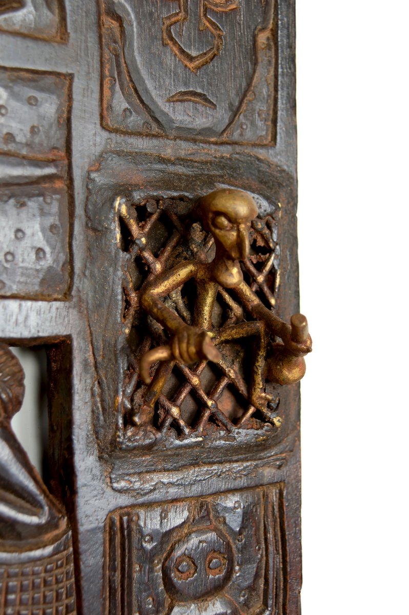 Carved and Bronze Ornamented Monoxyle Bamoun Chief Door, Cameroon, 20th Century