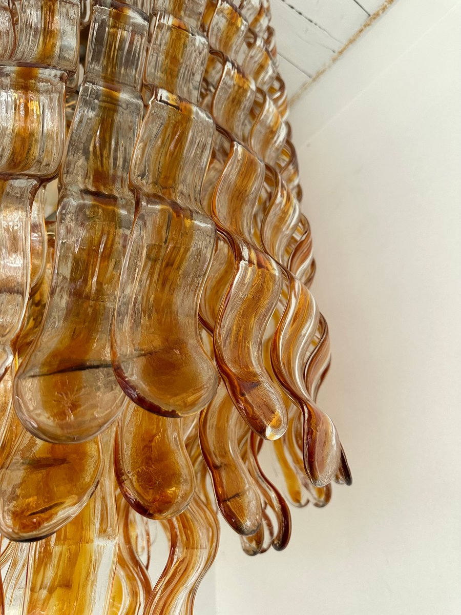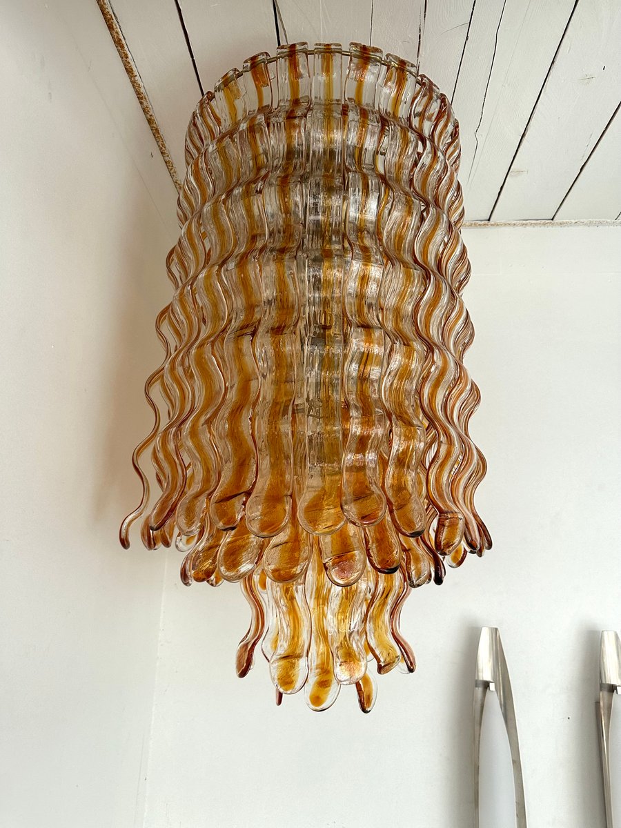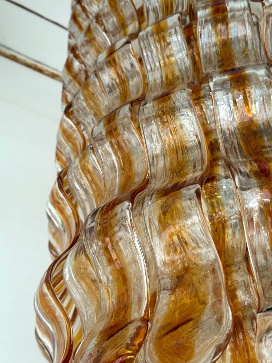 Cascade Wave Chandelier in Amber Murano Glass attributed to Mazzega, Italy, 1970s