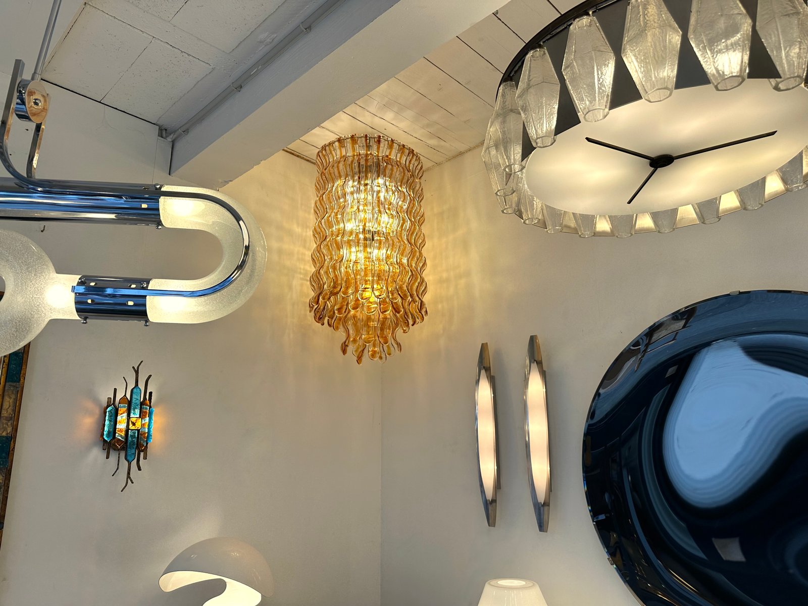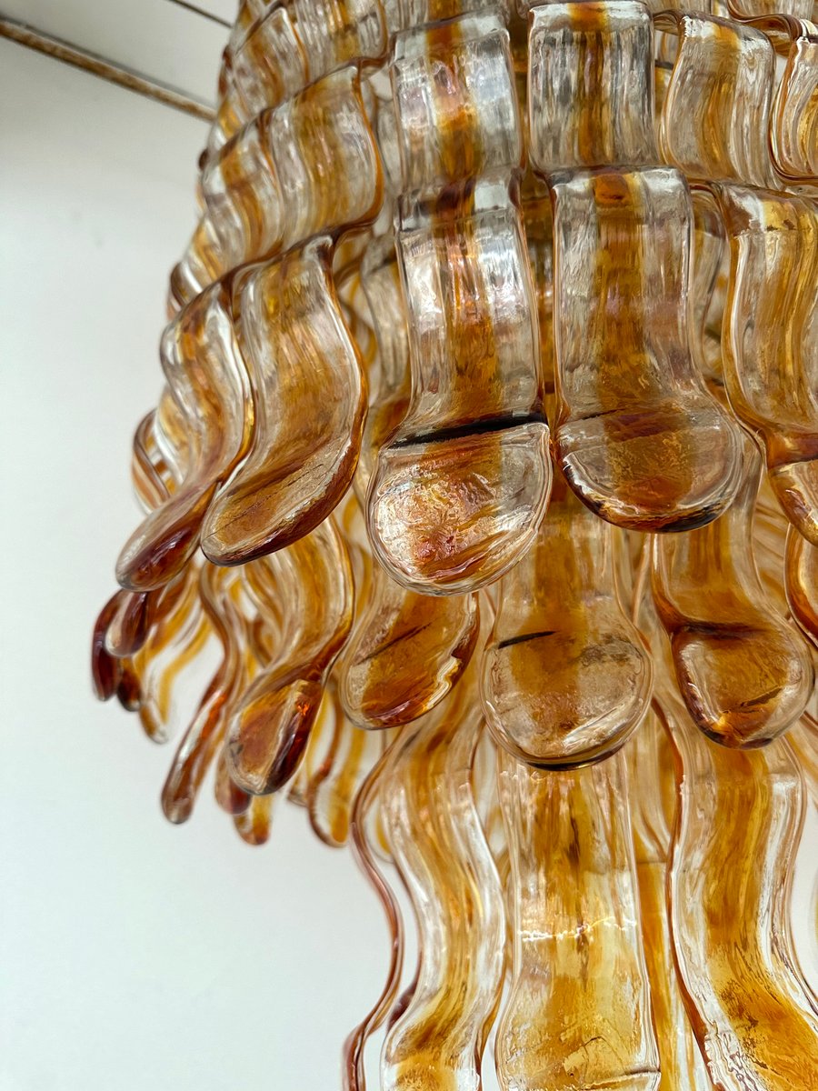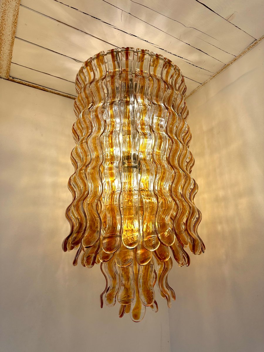 Cascade Wave Chandelier in Amber Murano Glass attributed to Mazzega, Italy, 1970s