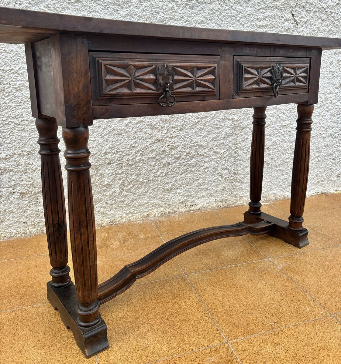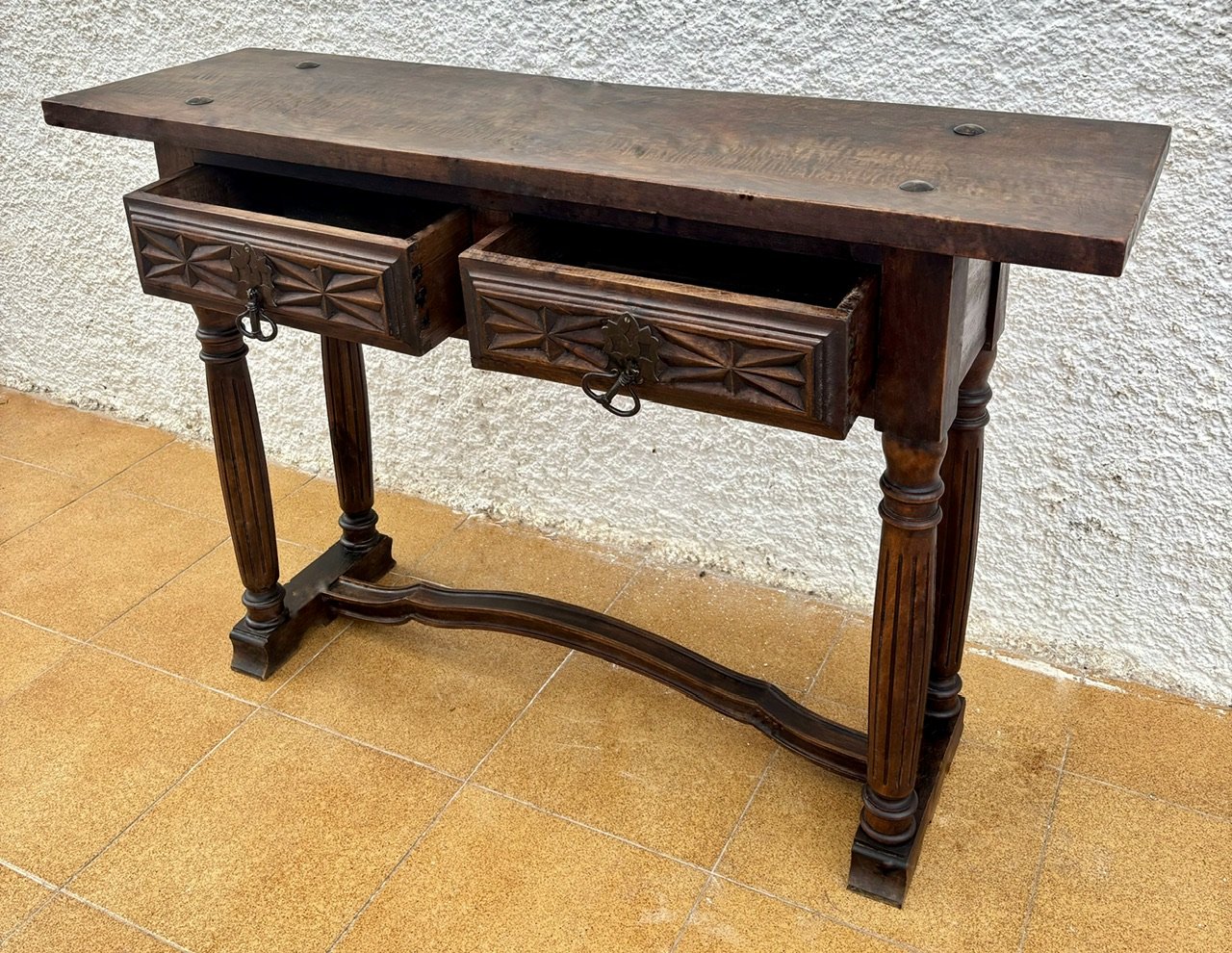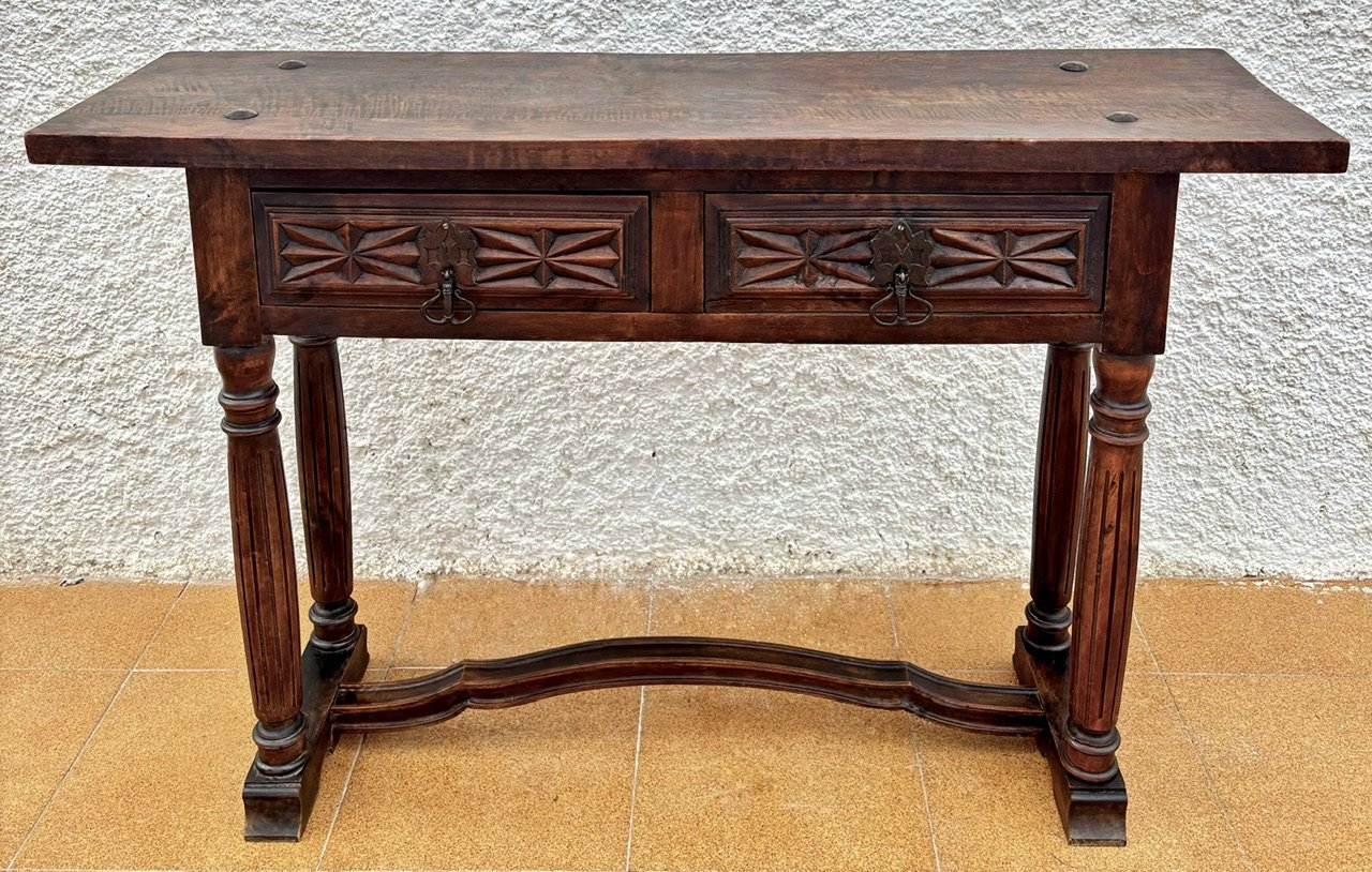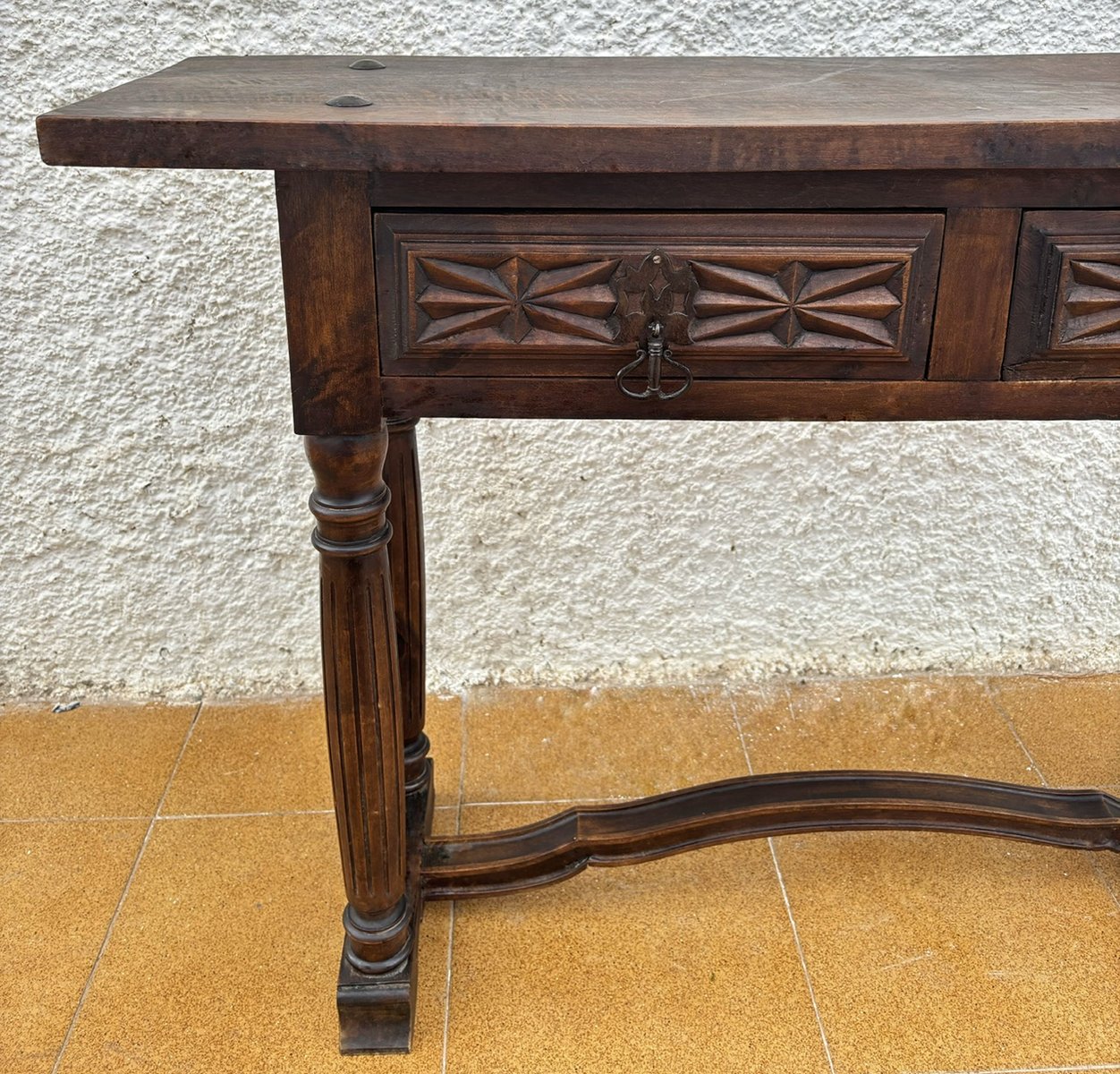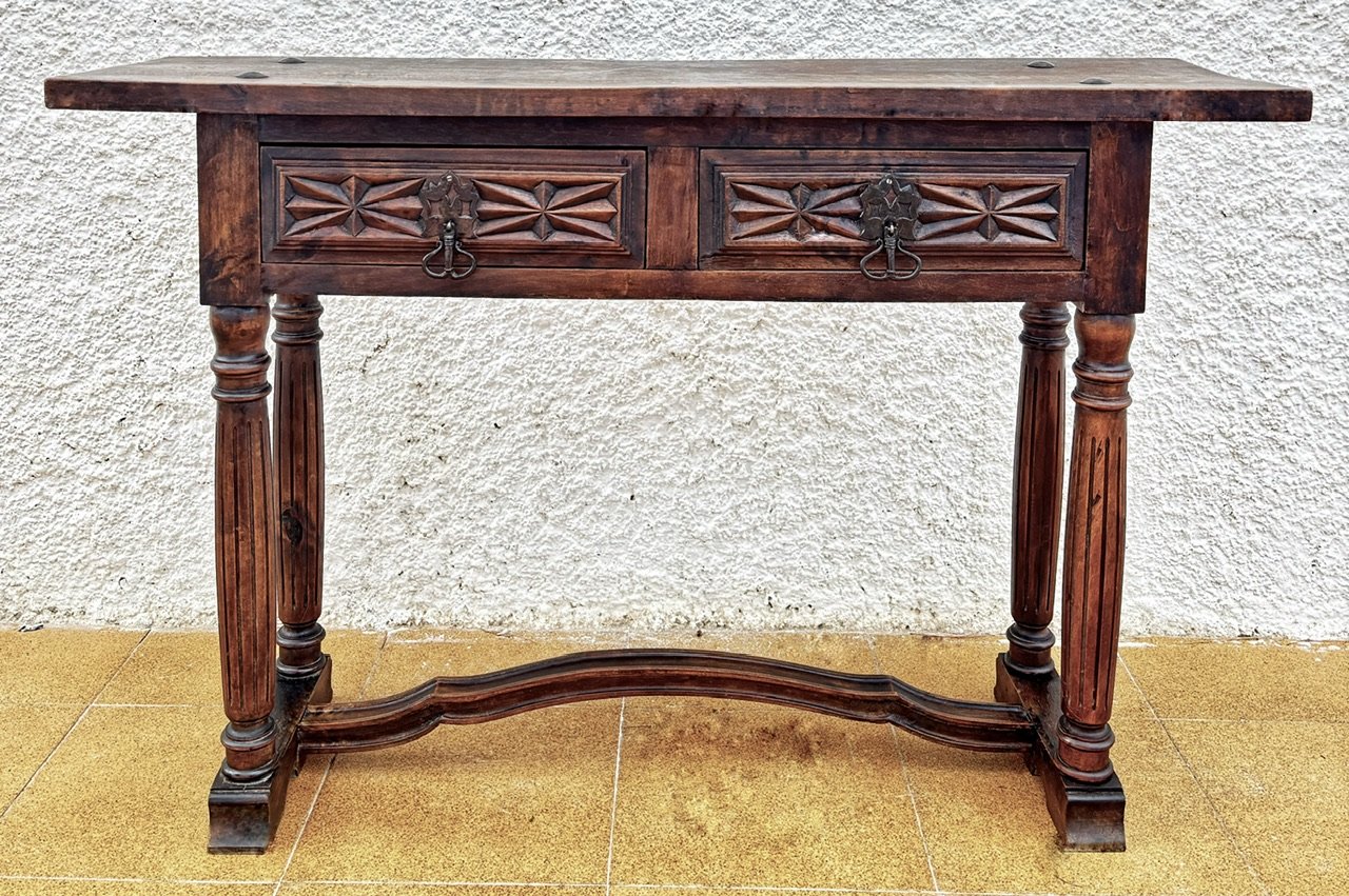 Castilian Console Table with 2 Carved Drawers, 1940s