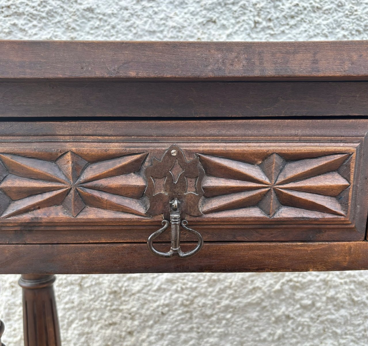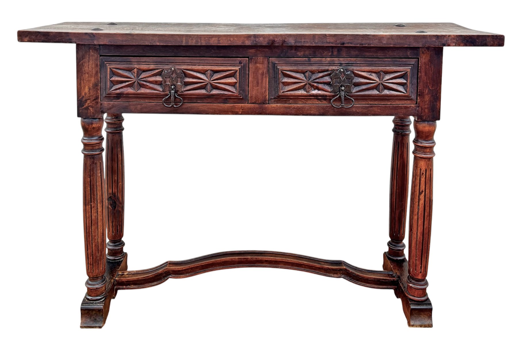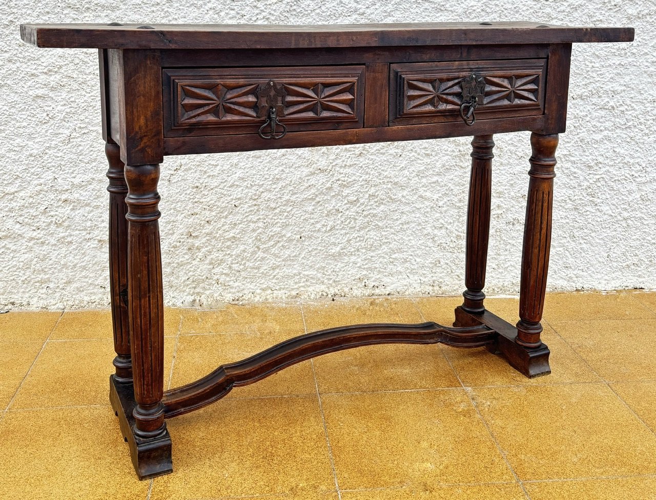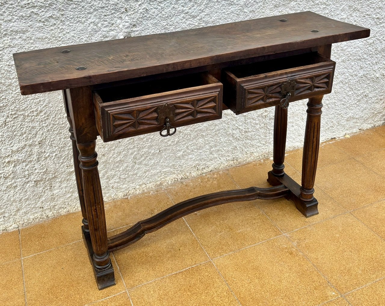 Castilian Console Table with 2 Carved Drawers, 1940s