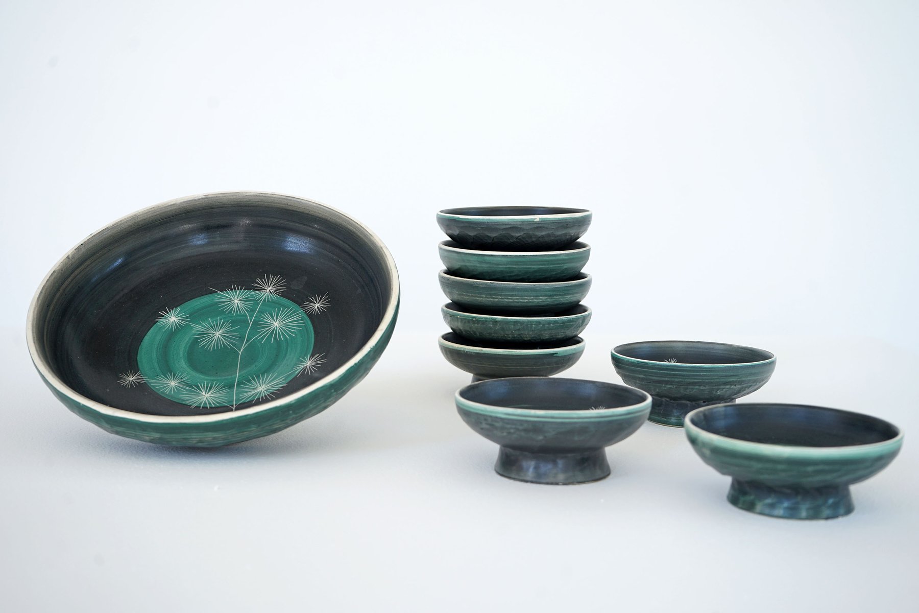 Ceramic Bowl set from Tapis Vert, 1950s, Set of 9