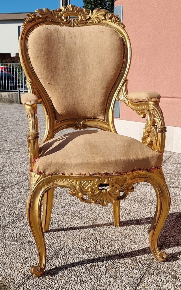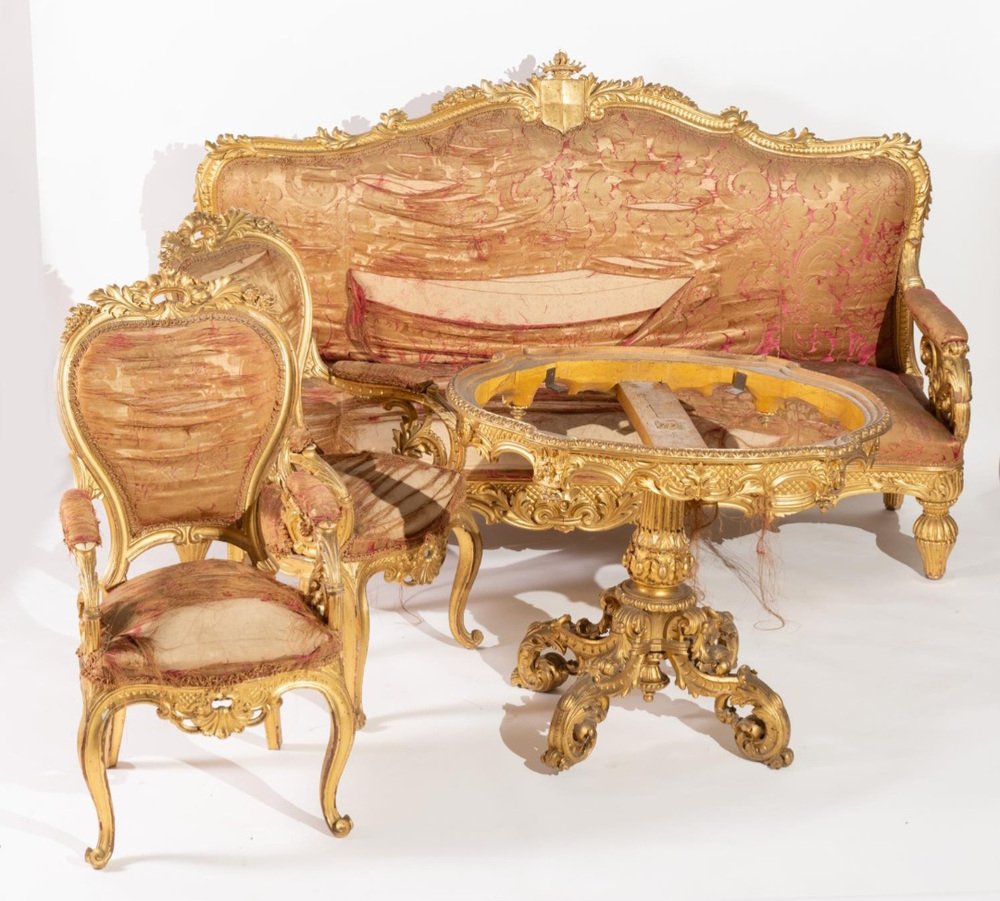 Charles X Golden Emiliano Noble Living Room Set, 1830s, Set of 4