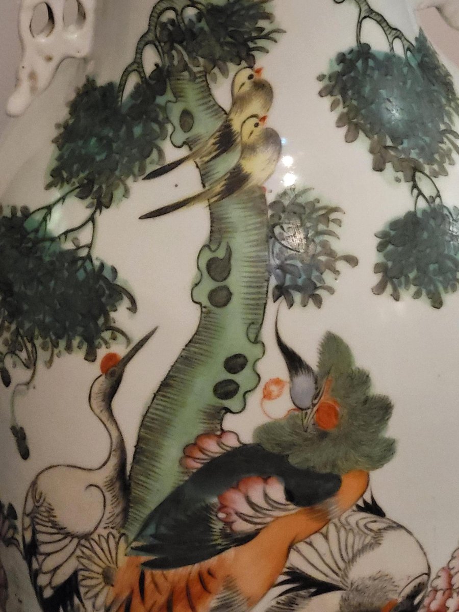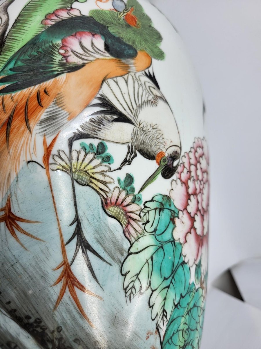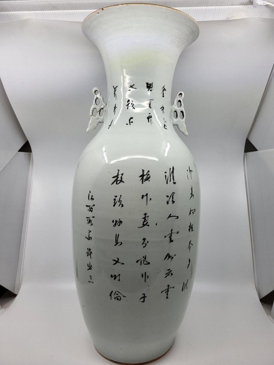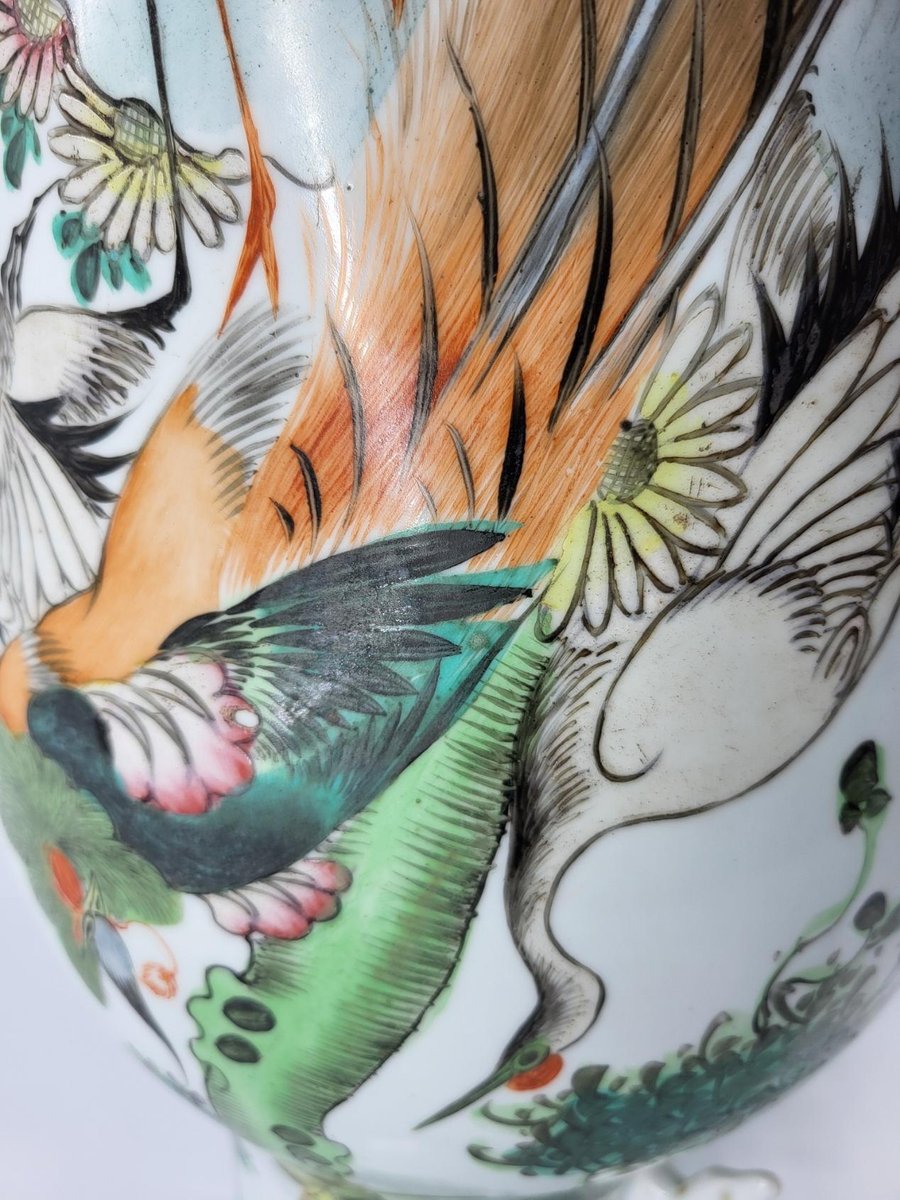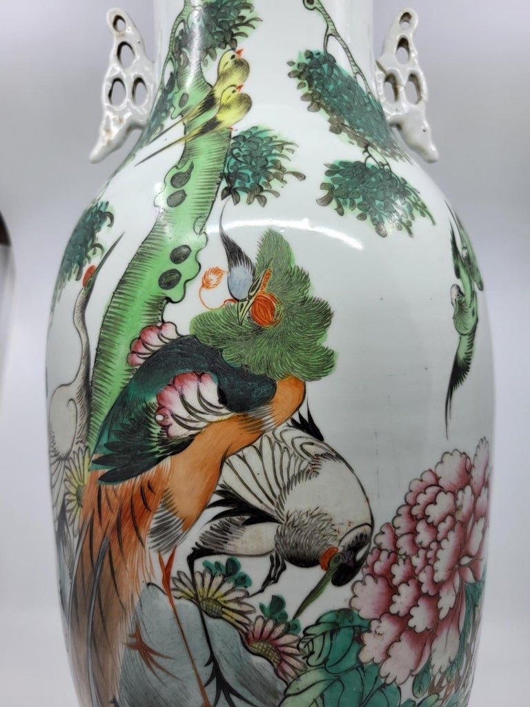 Chinese Celadon Porcelain Vase with Birds, Flowers and Vegetation Decor, 19th Century