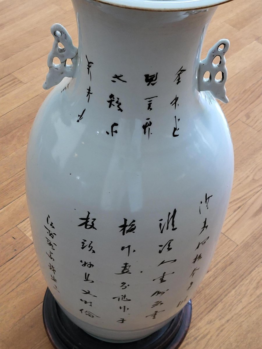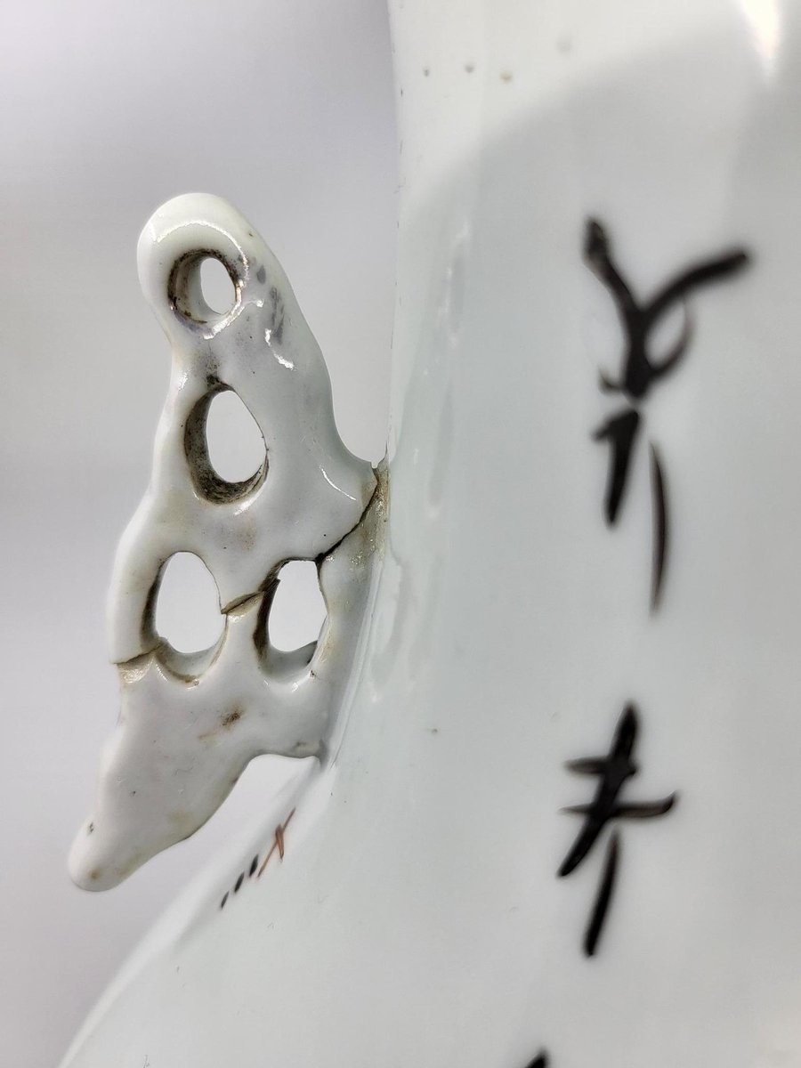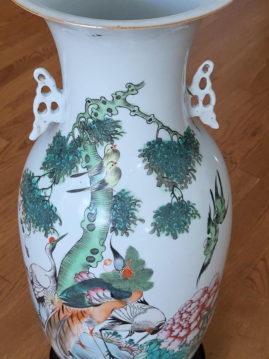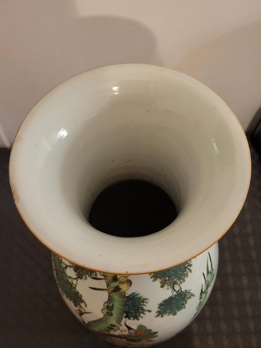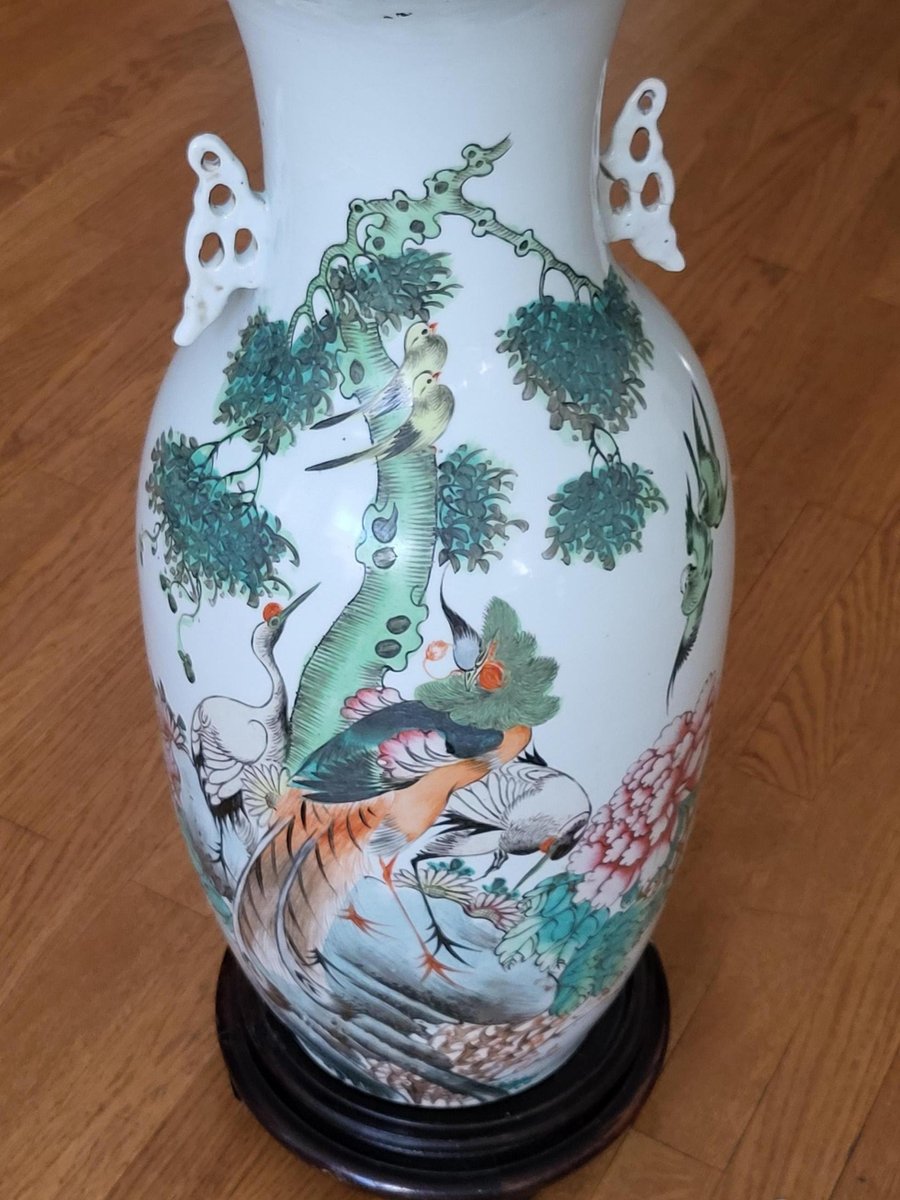 Chinese Celadon Porcelain Vase with Birds, Flowers and Vegetation Decor, 19th Century