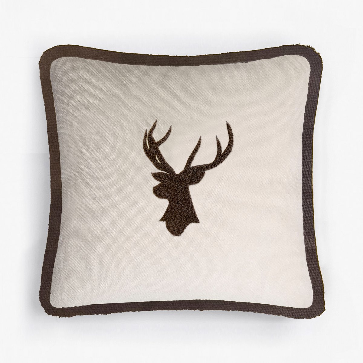 Christmas Happy Pillow with Elk in Beige and Brown from Lo Decor