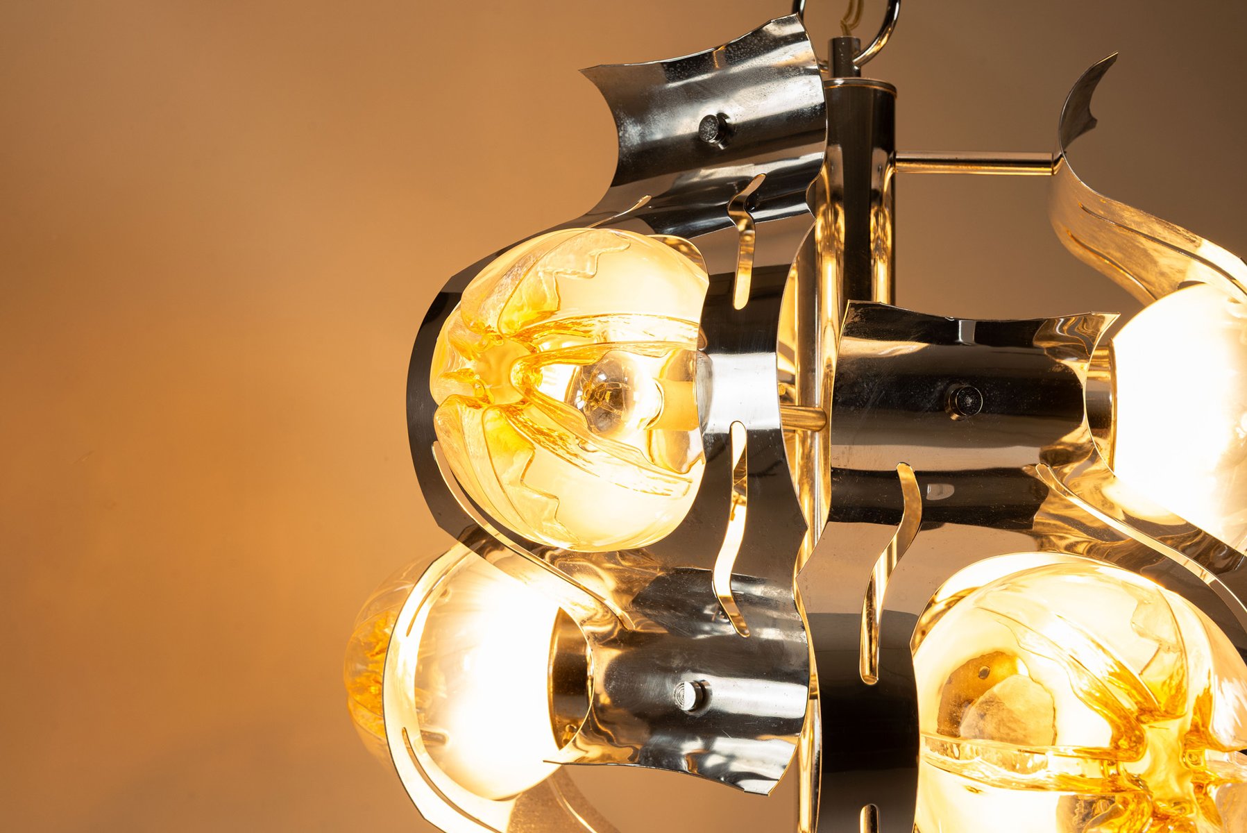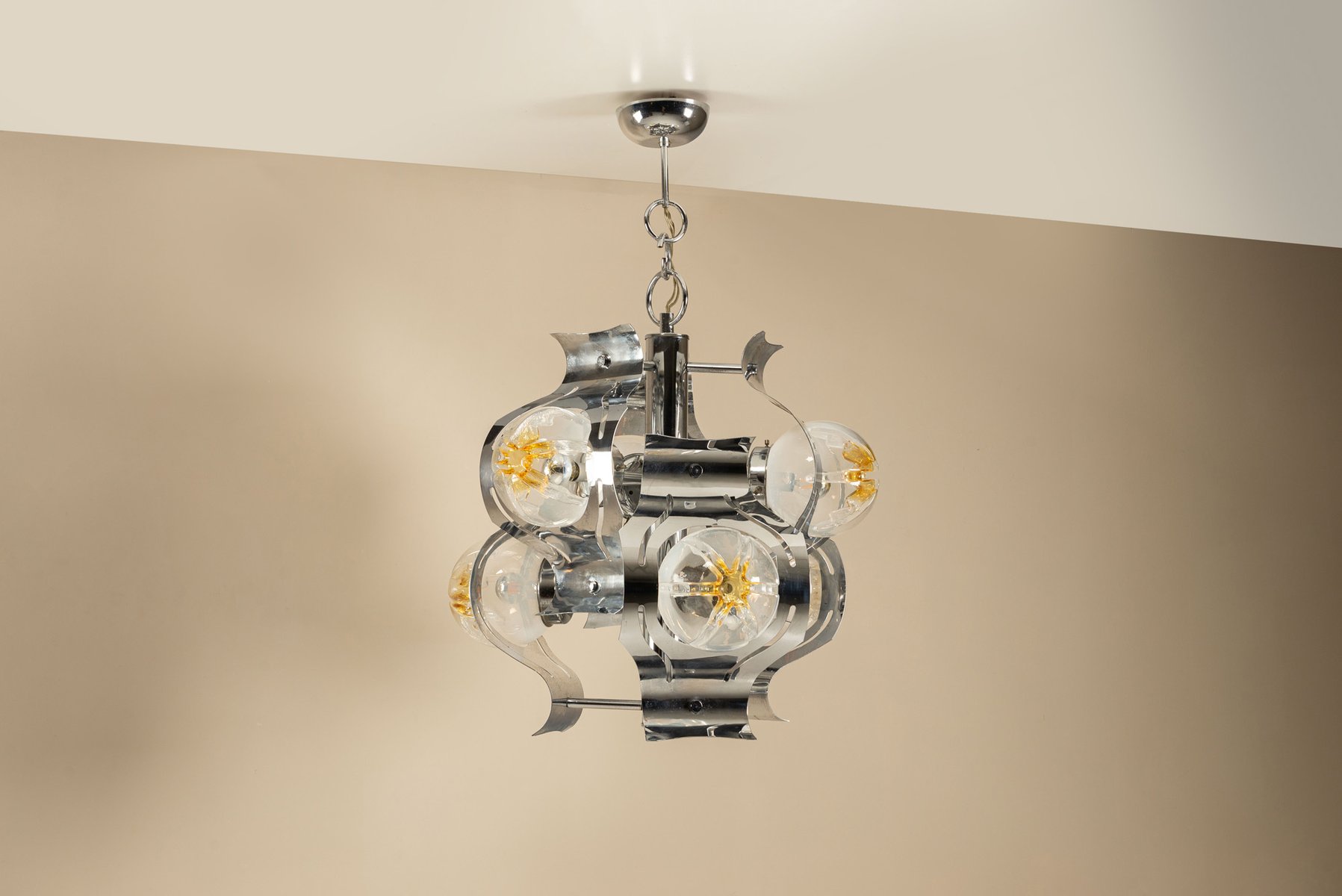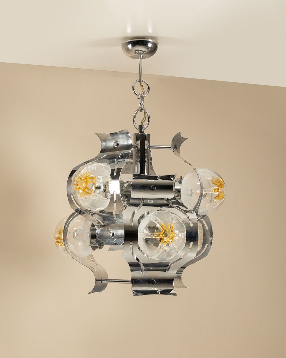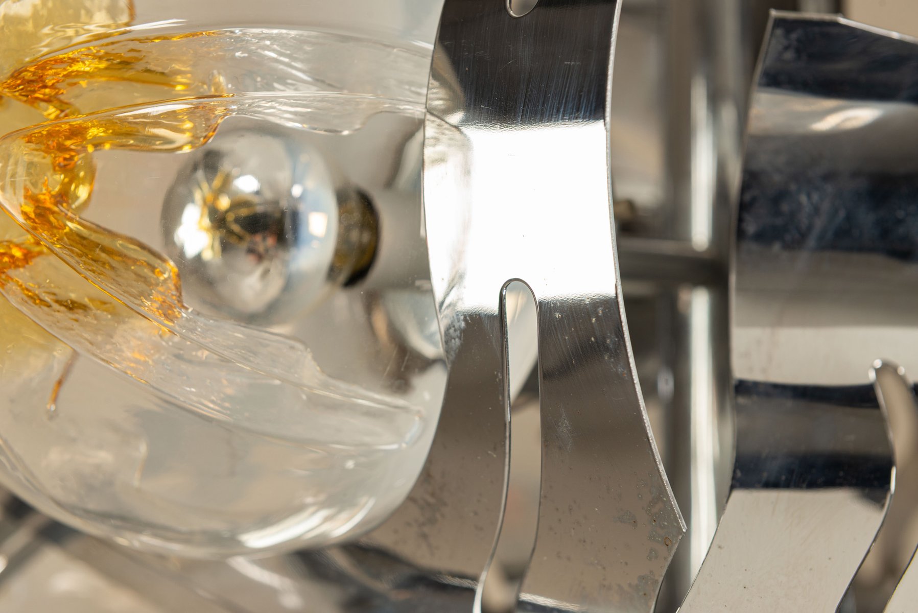 Chrome and Glass Ceiling Lamp attributed to Mazzega, Italy 1970s