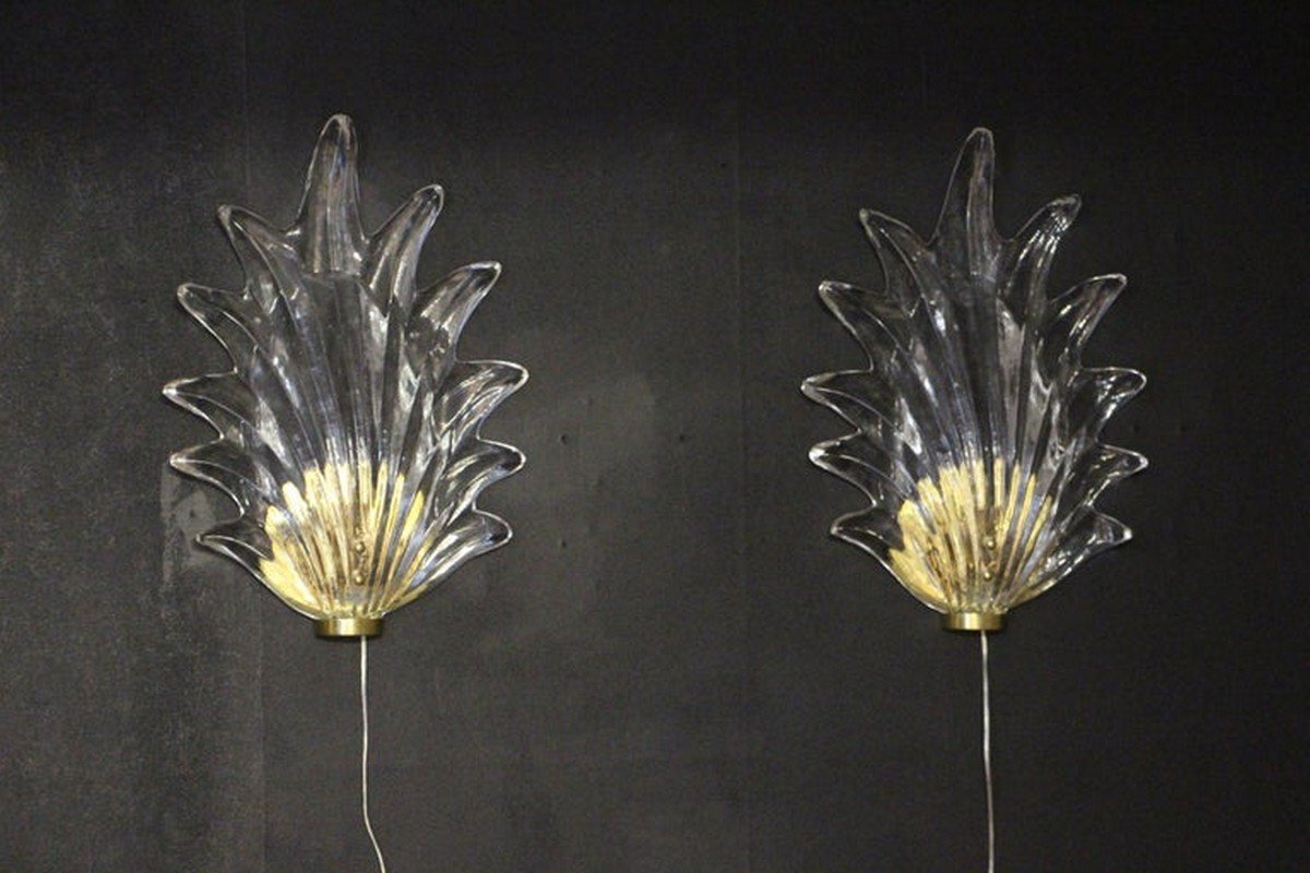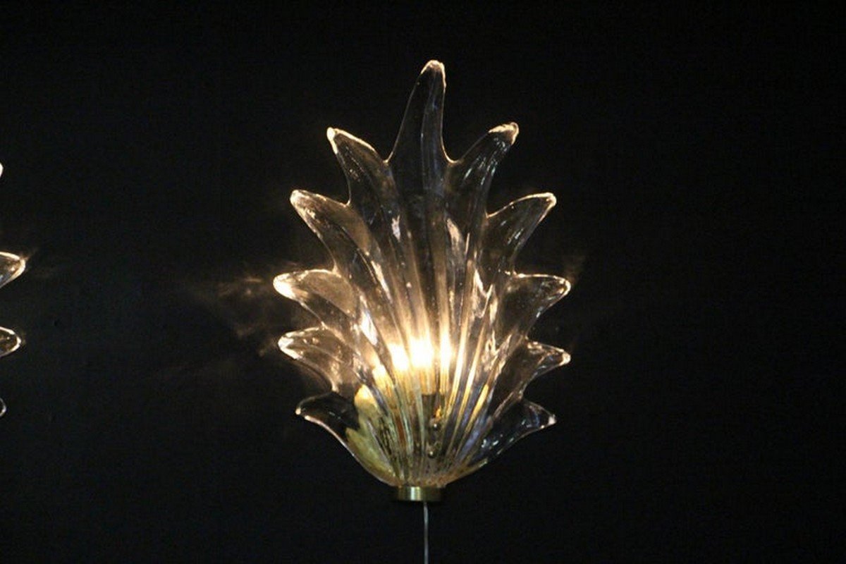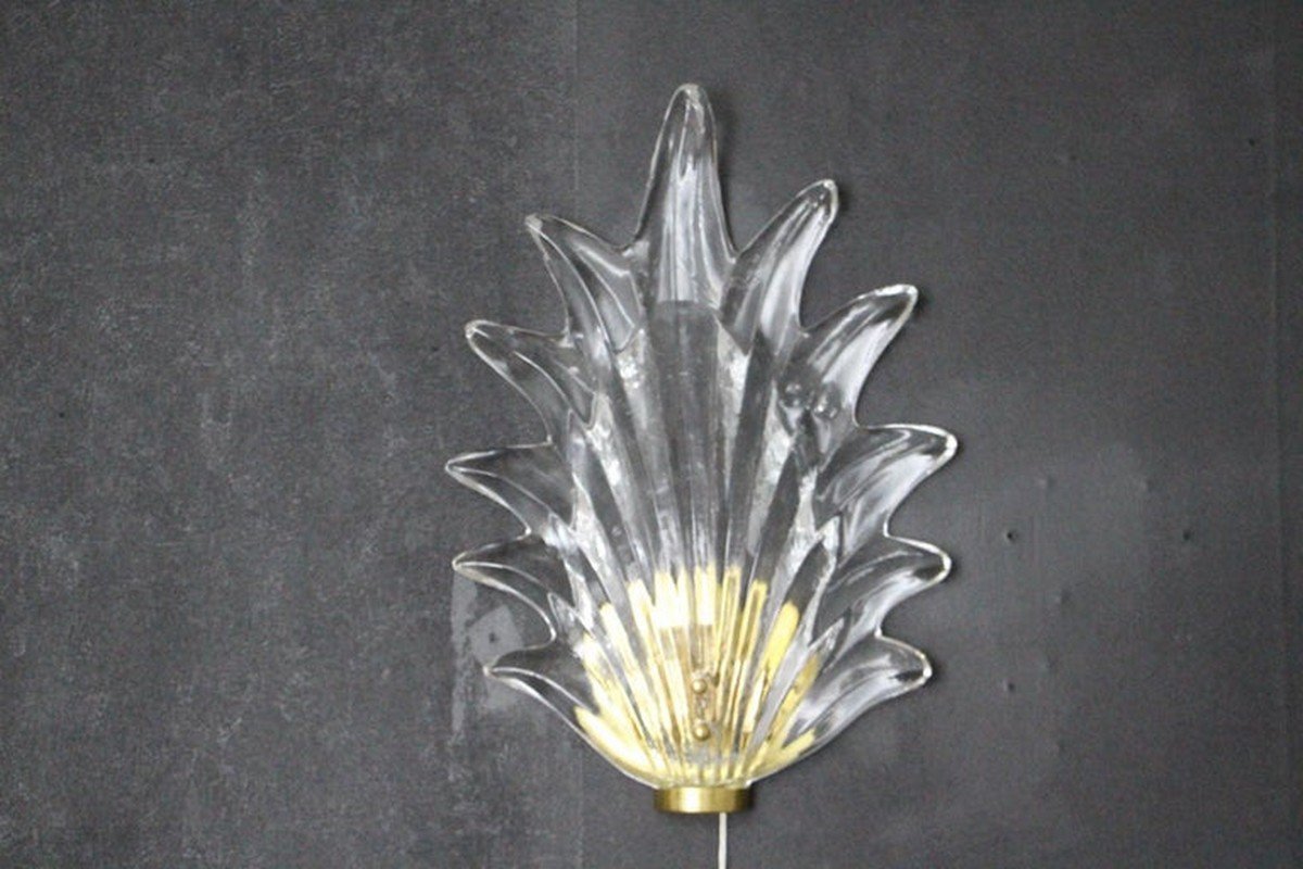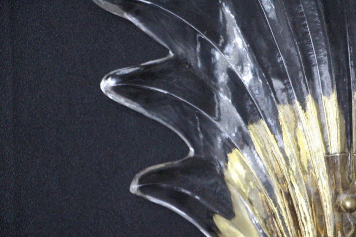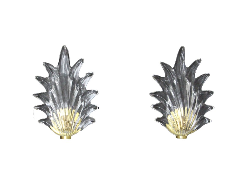 Clear Murano Glass Leaf and Brass Sconces by Barovier, 1980s, Set of 2