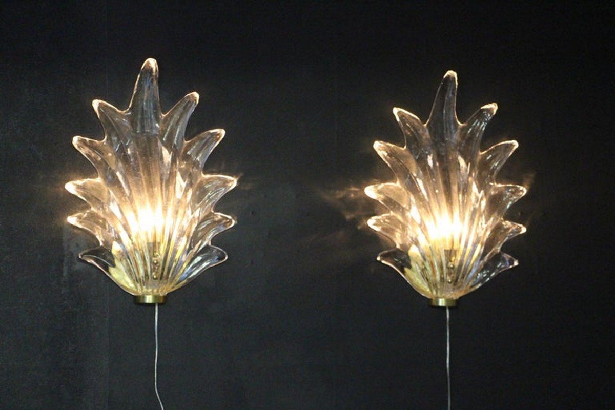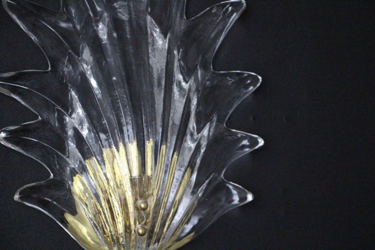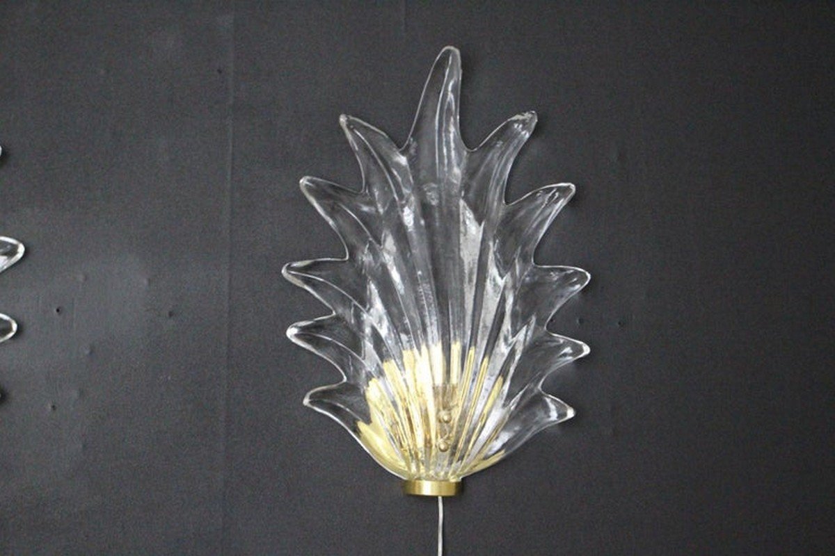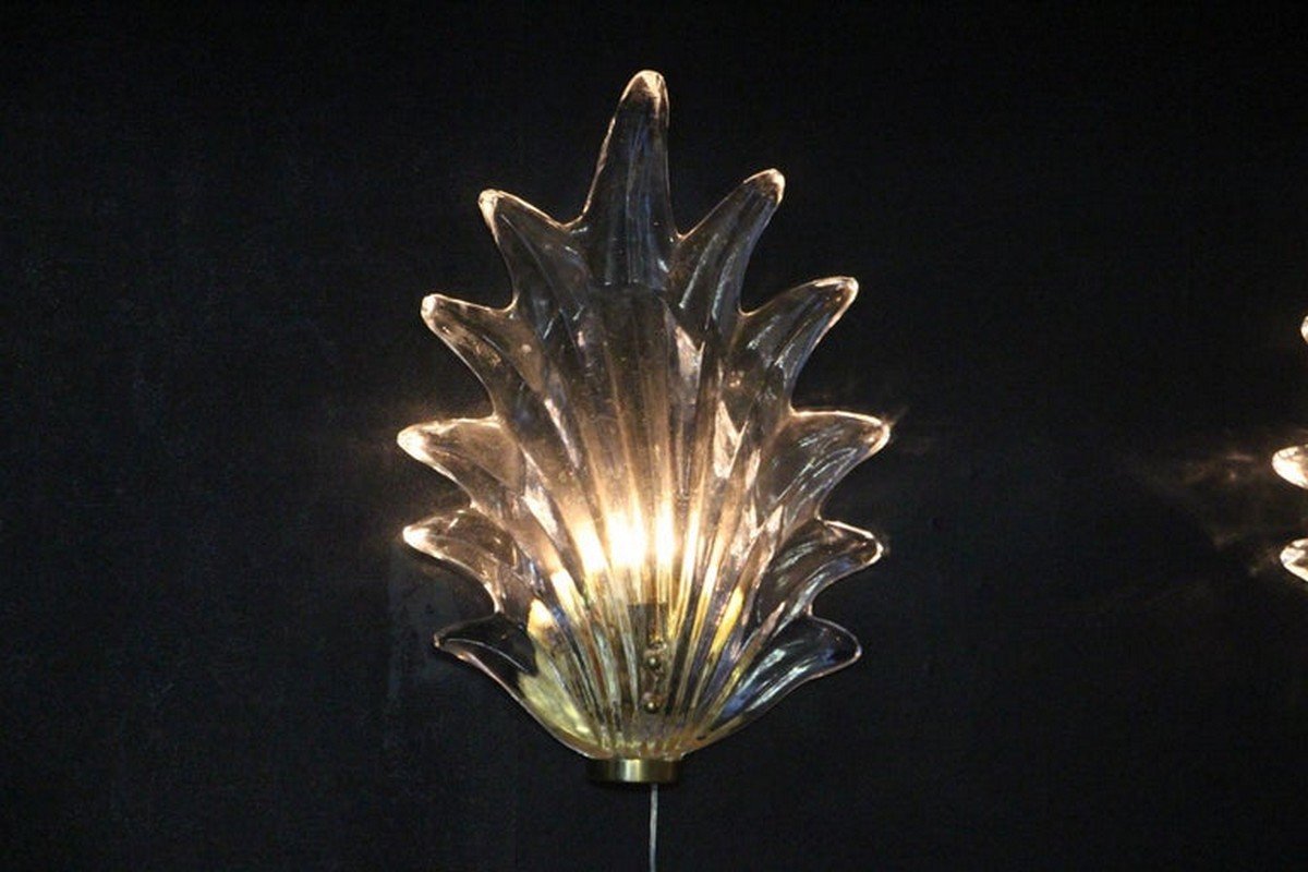 Clear Murano Glass Leaf and Brass Sconces by Barovier, 1980s, Set of 2