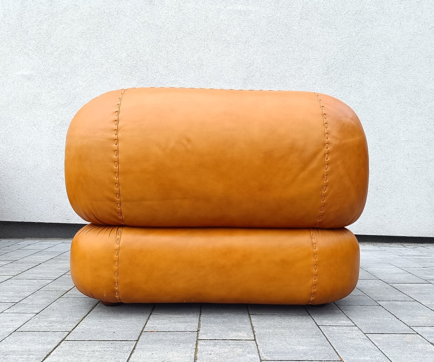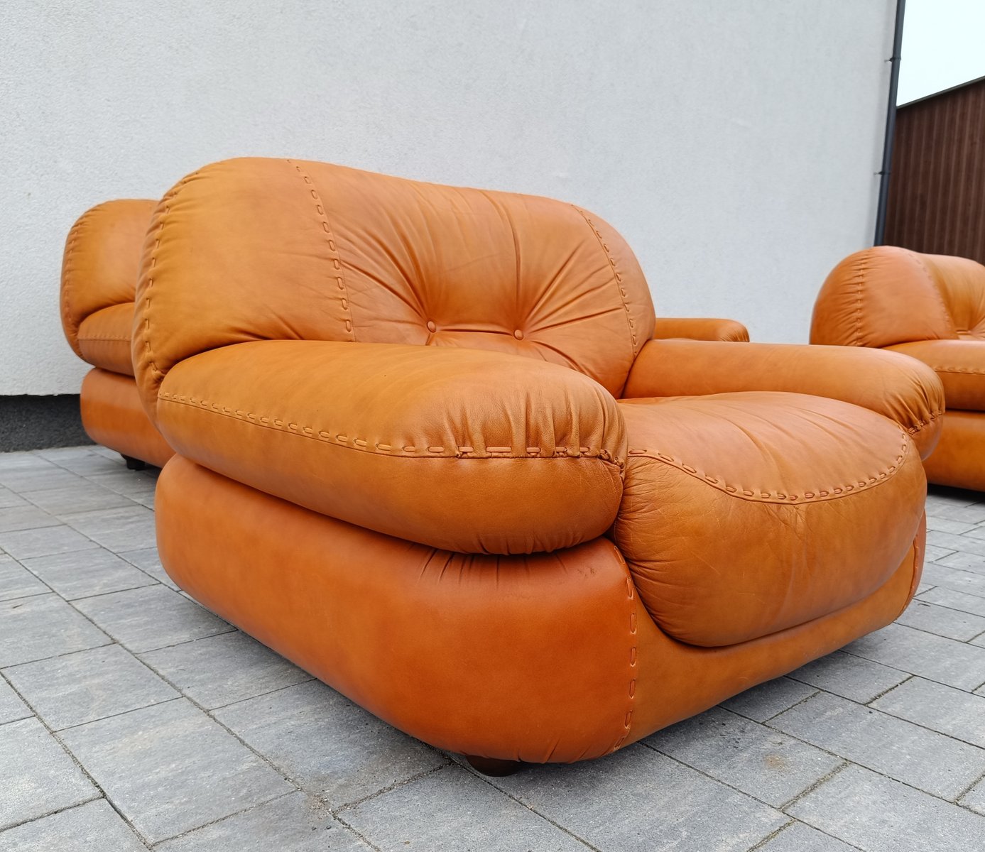 Cognac Leather Armchairs attributed to Sapporo for Mobil Girgi, Italy, 1970s, Set of 2