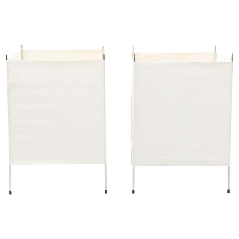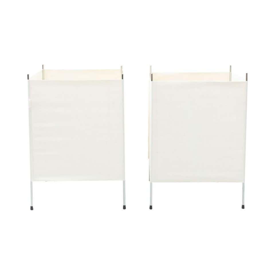 Collapsible Steel and White Fabric Table Lamps, 1970s, Set of 2