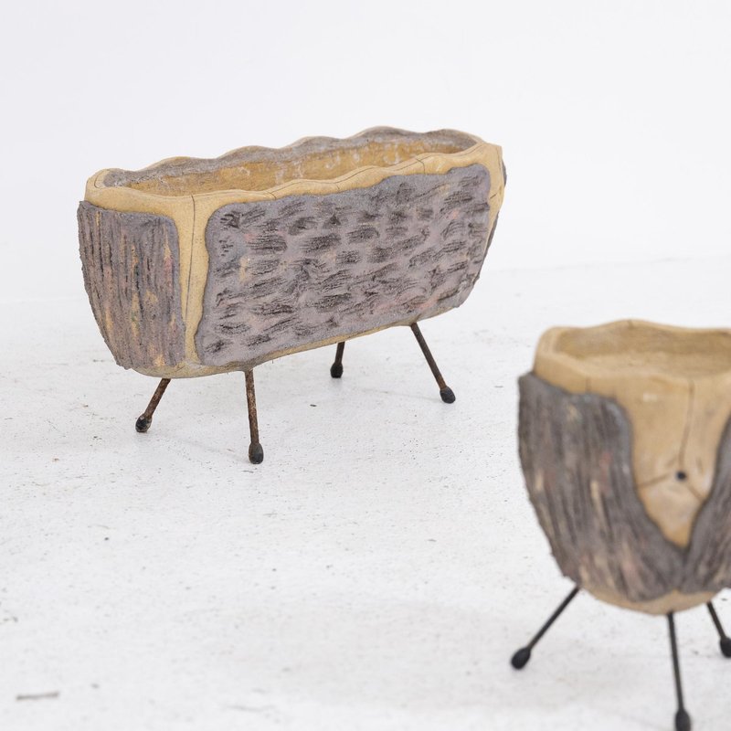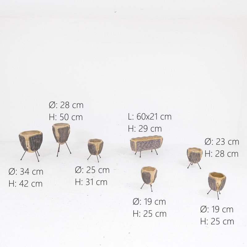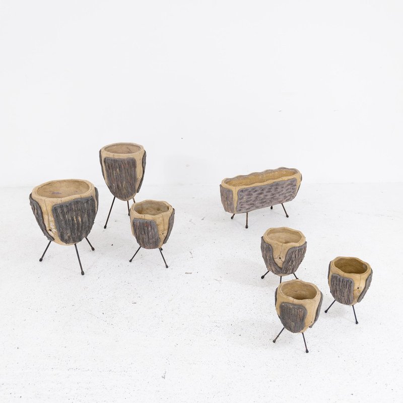 Concrete and Iron Garden Pots, 1980s, Set of 7