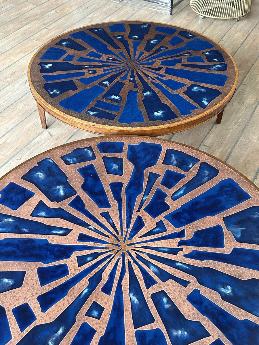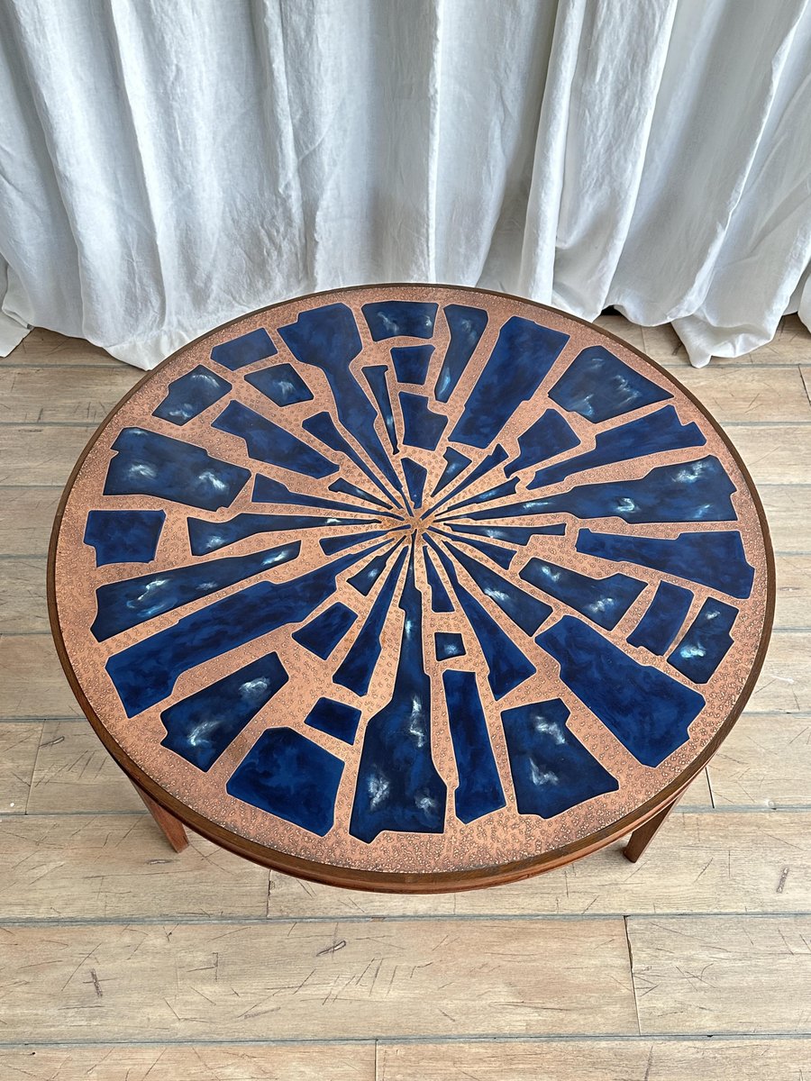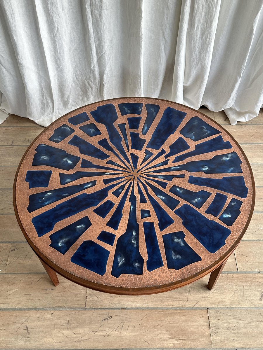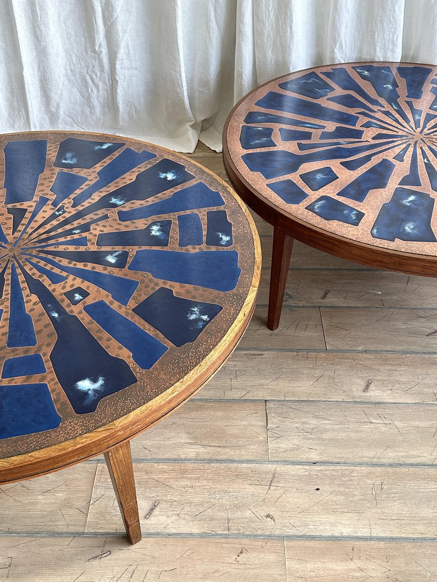 Copper and Enamel Coffee Tables, 1970s, Set of 2