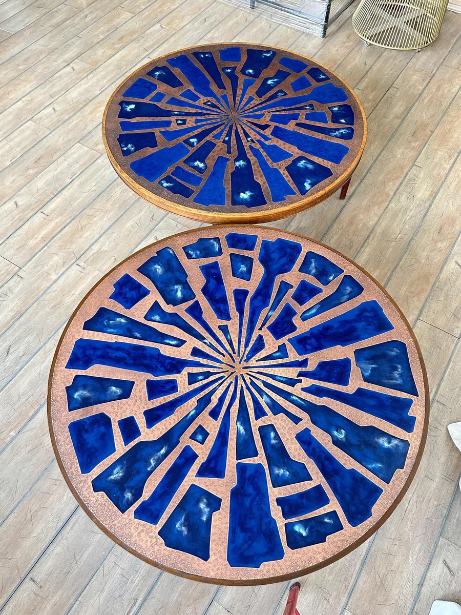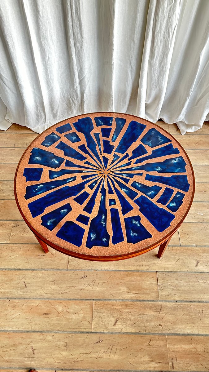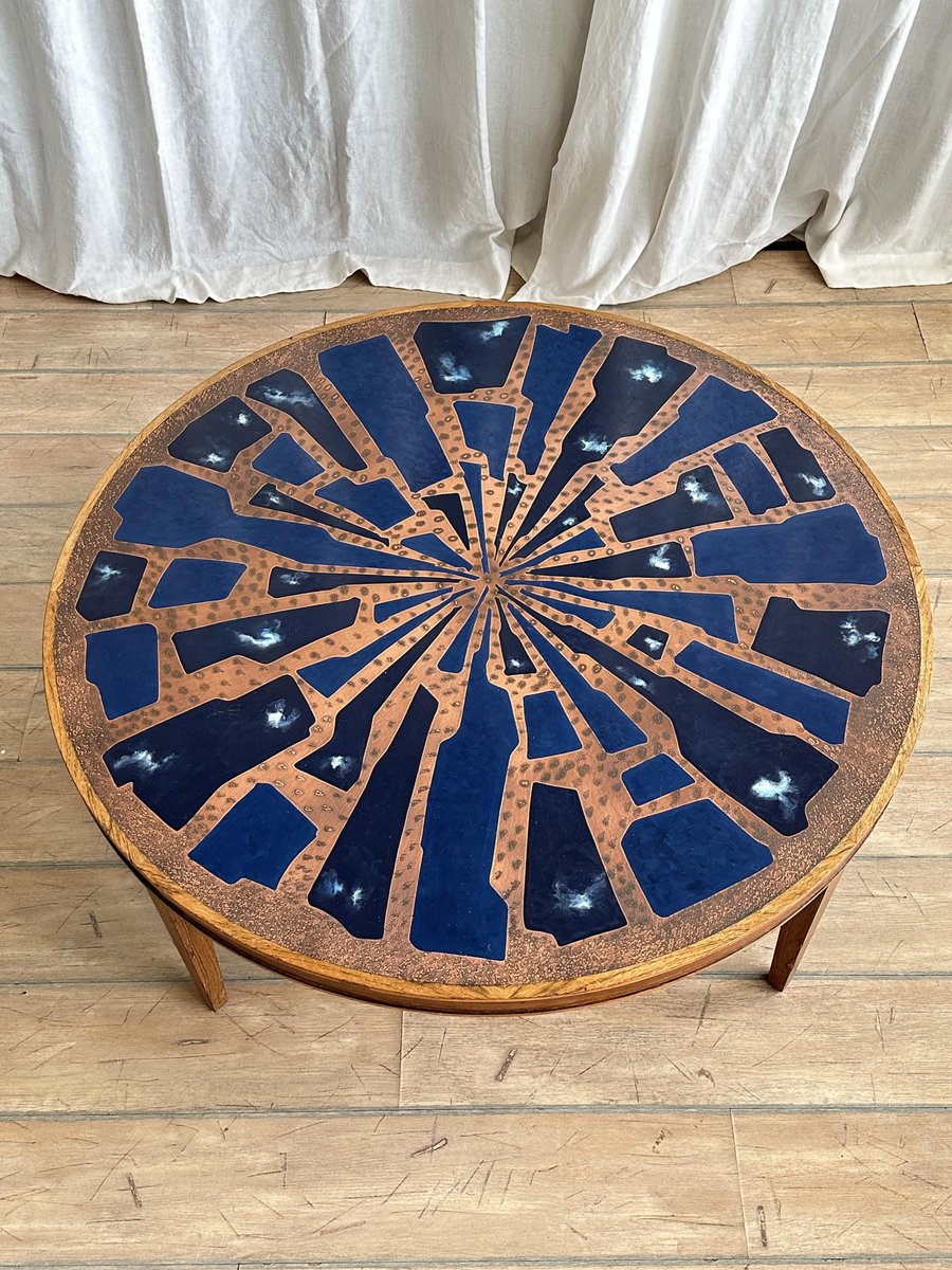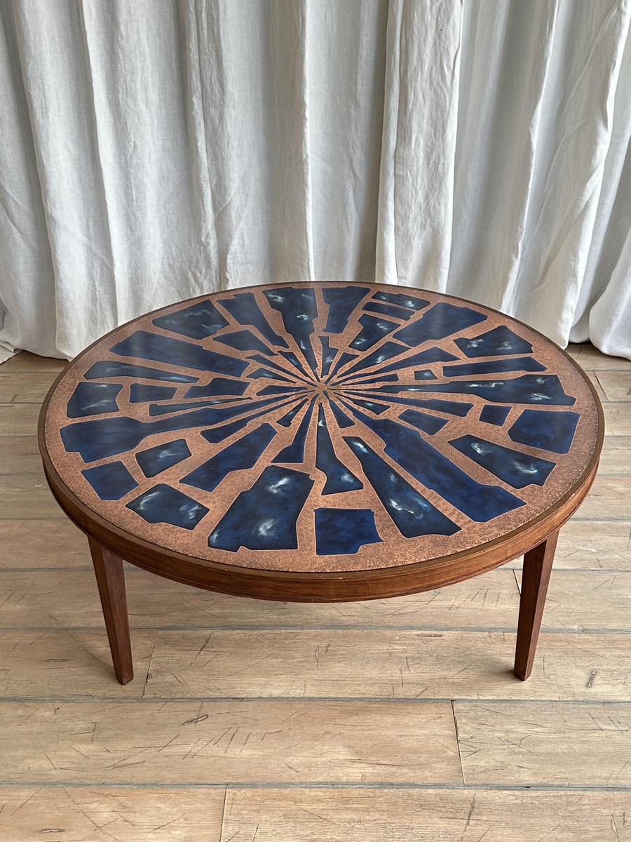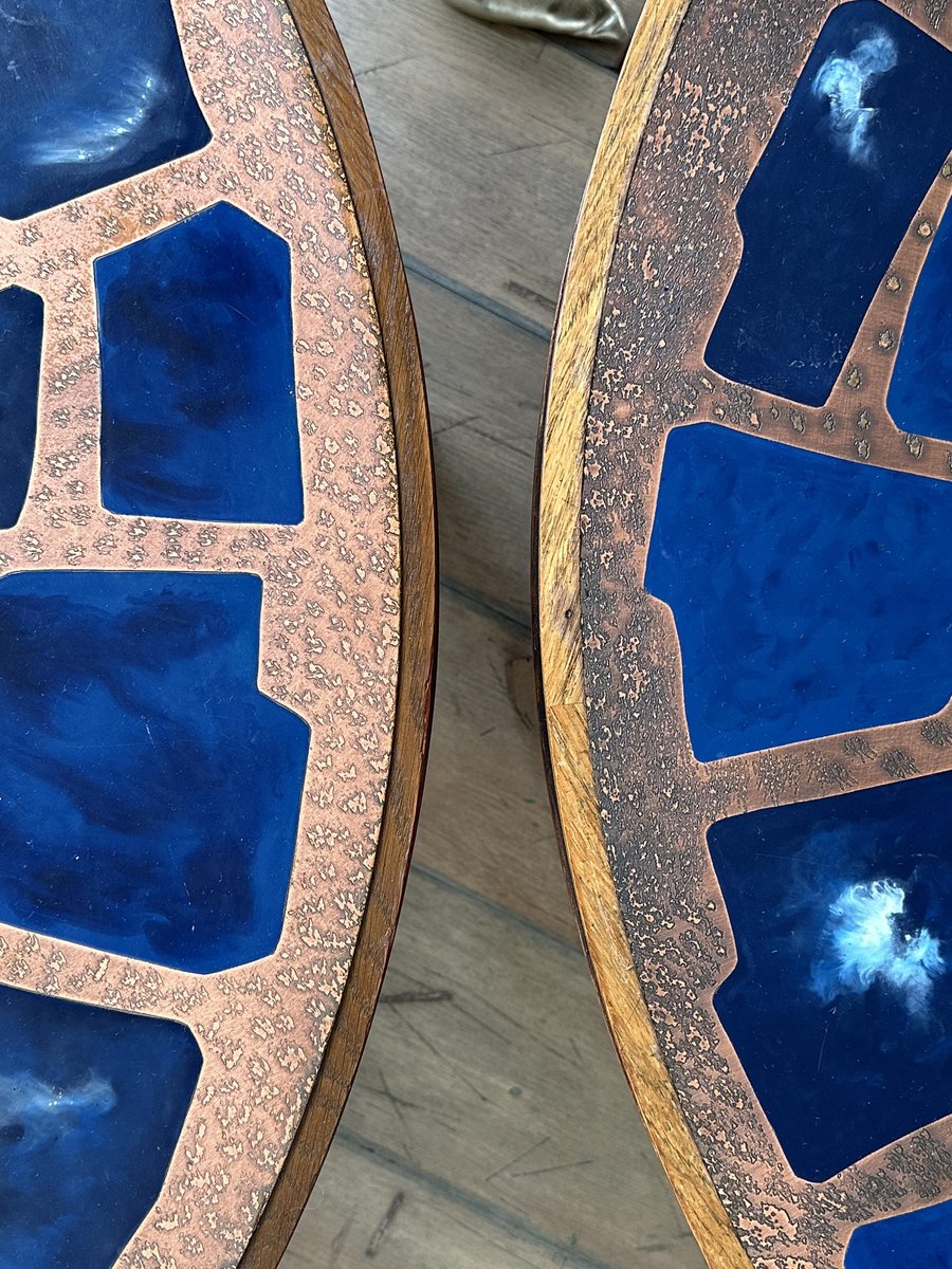 Copper and Enamel Coffee Tables, 1970s, Set of 2