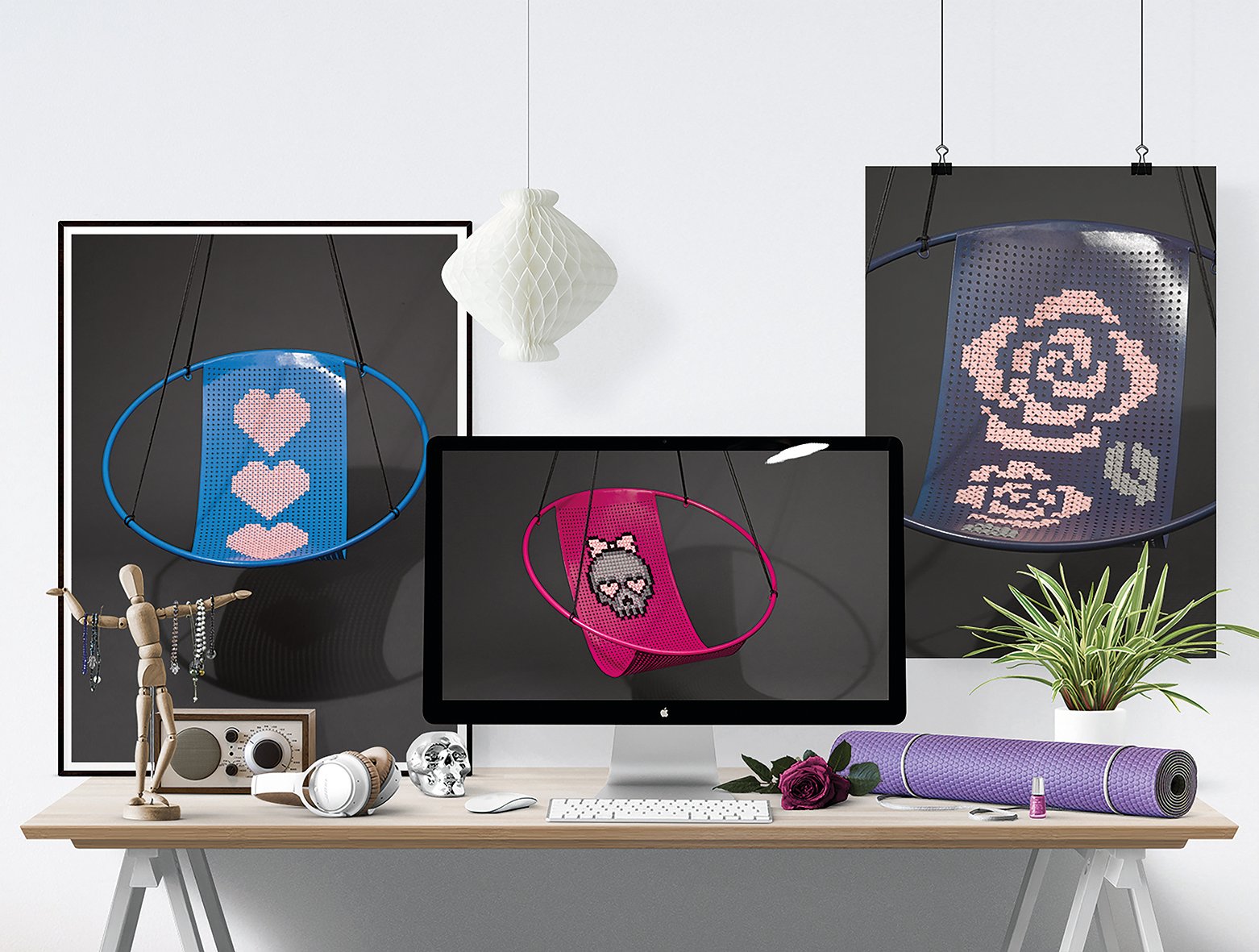 Cross Stitch Hanging Swing Chair from Studio Stirling