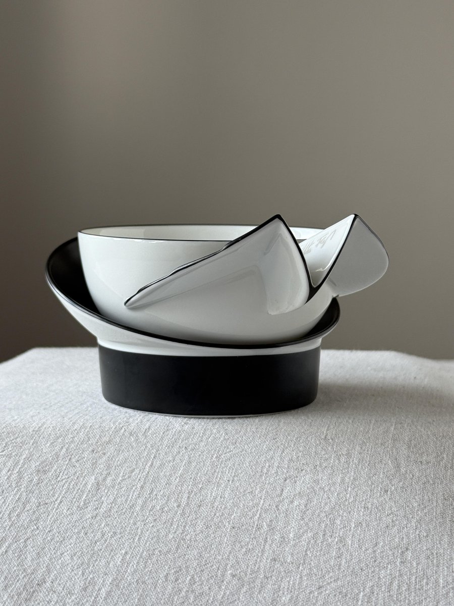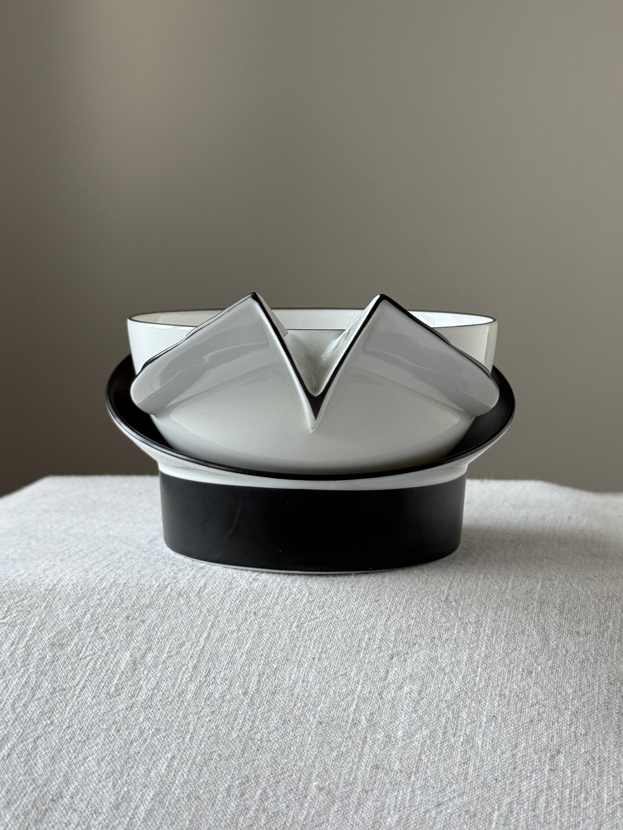 In the postwar era, Rosenthal’s most famous tableware lines have included 2000 by Raymond Loewy and Richard Latham (1954), Magic Flute by Bjørn Wiinblad (1959), Suomi by Timo Sarpaneva (1976), and Moon by Jasper Morrison (1997). The company has enjoyed many popular and critically acclaimed collaborations with designers and brands, like Salvador Dalì, Tapio Wirkkala, Walter Gropius, Andy Warhol, Ron Arad, Enzo Mari, Konstantin Grcic, and Versace.