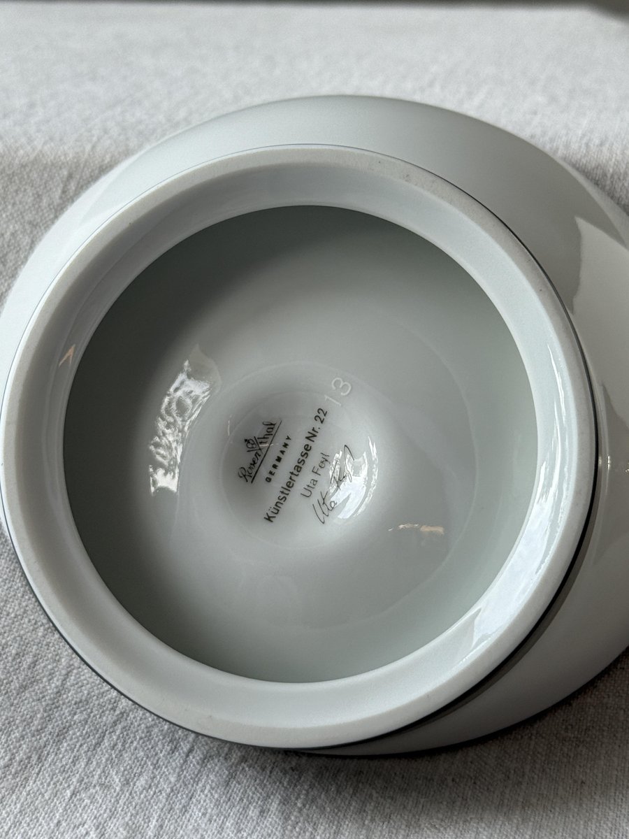 German porcelain manufactory Rosenthal was originally founded as a ceramics-painting studio by Philipp Rosenthal Sr. (1855-1937) in 1879 at Schloss Erkersreuth in Bavaria, near the Czech border. Its first highly popular product was an ashtray inscribed with the words “Resting place for lit cigars.” In 1890, the company moved to the neighboring hamlet of Selb and, a year later, began to manufacture its own porcelain, since white porcelain was, at that time, in short supply. Rosenthal’s first complete table service was called Empire; it was exhibited along with other lines at Paris’s Exposition Universelle in 1900.